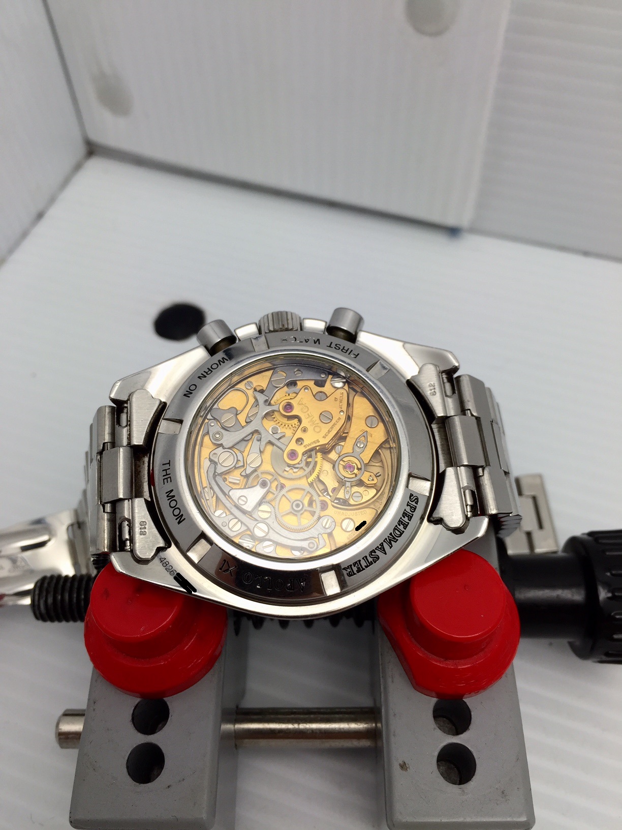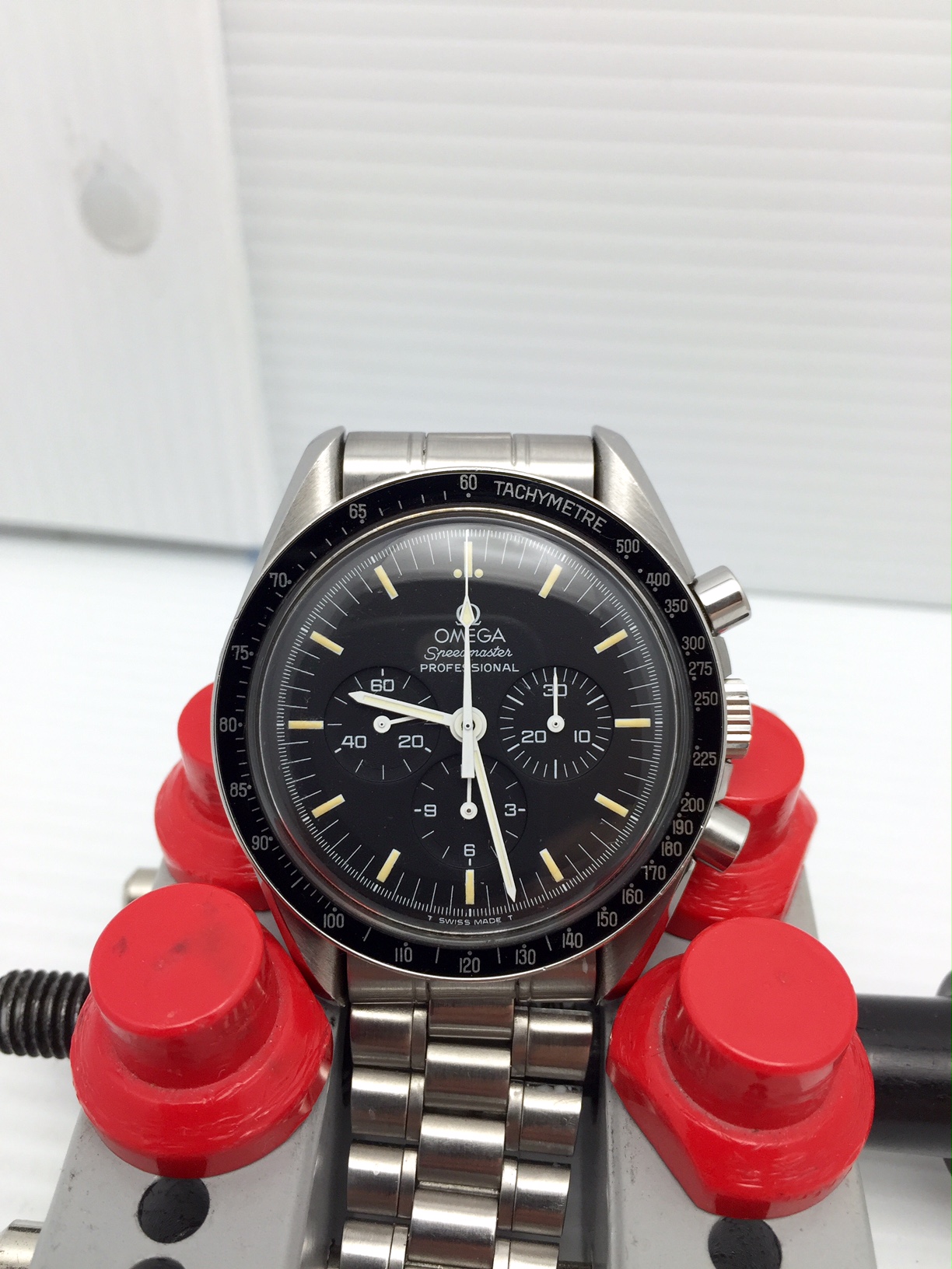 I have an Omega Speedmaster Professional 3592.50 for sale. The Hesalite look with viewing of the beautiful movement! Please take a look at photos for condition. Case is sharp and with only minor wear - didn't want to polish to retain the original lines.