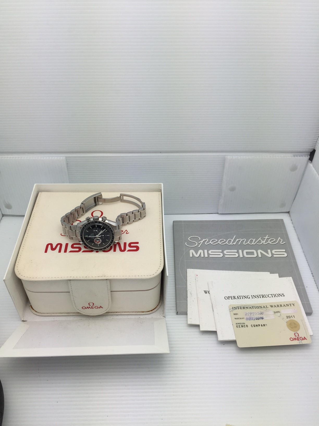 I have an Omega Speedmaster Professional 3597.22 Skylab II Missions for sale. One of the harder to find Mission patches. The little blue marks on the case are the protective coating from when it was NOS and the owner removed some of it and tried it out but never really bonded and put it back in box. Never polished and sharp case.