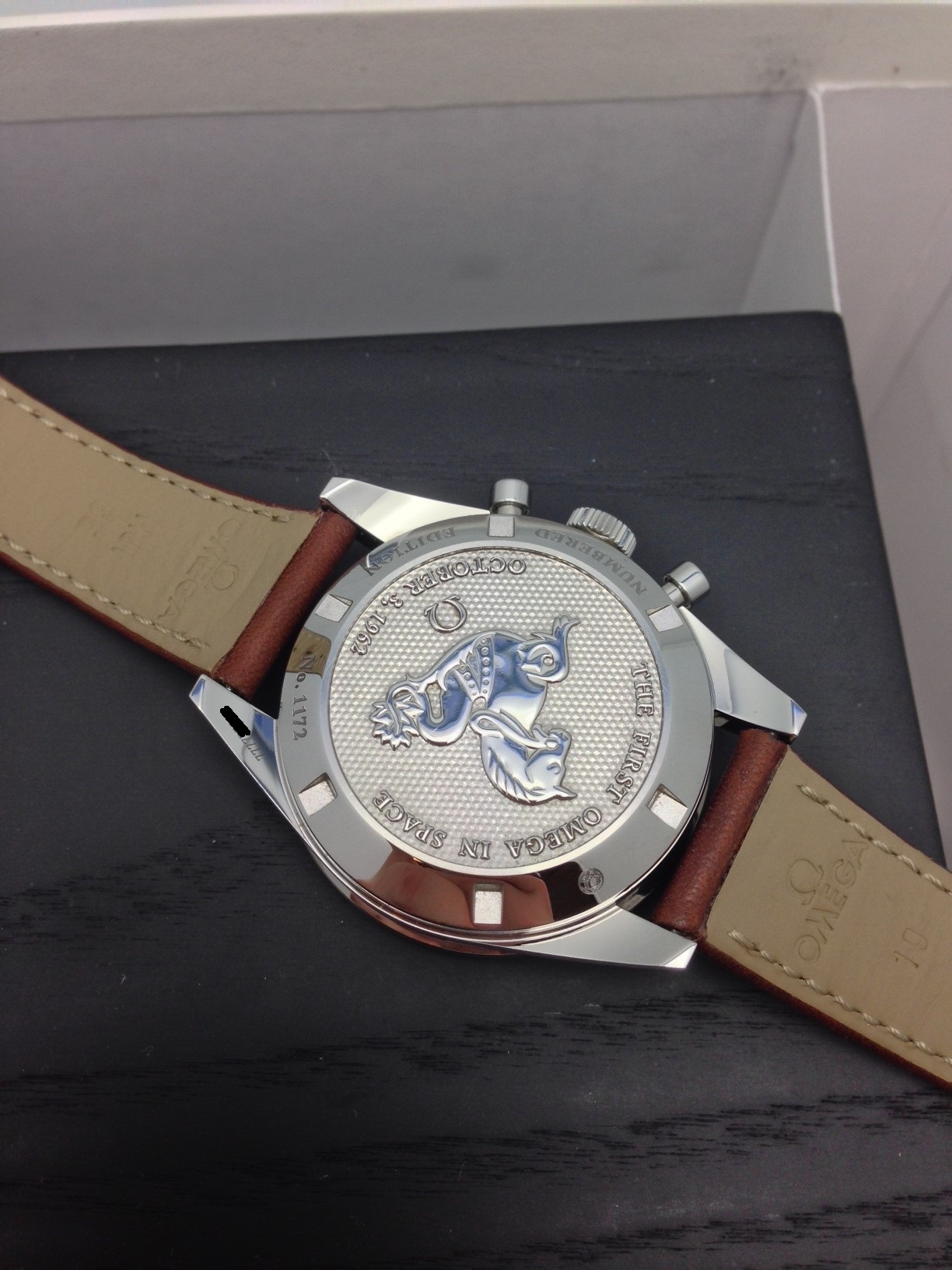 I have an Omega Speedmaster Professional "First Omega in Space" 311.32.40.30.01.001 for sale. It comes with only what is stated or shown in photos. This is the modern equivalent to the 2998 with a 39.7mm case and no crown guards. A beautiful watch that celebrates a time of past class and elegance.