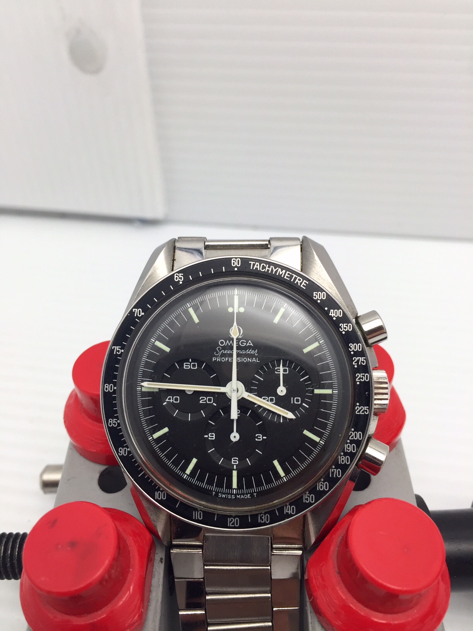 I have an Omega Speedmaster Professional from 1971 which was a barn find. Still has the red dot marking on the back side case and looks like it was worn sparingly and then put in a drawer. Please take a look at the photos for condition. Unpolished - super sharp with no big marks or such - and all parts original. Original seal has melted as is common for the older seals. Bracelet is firm and all springs work. Starts up and runs great although being a barn find I would recommend a service sometime in the future for longevity.