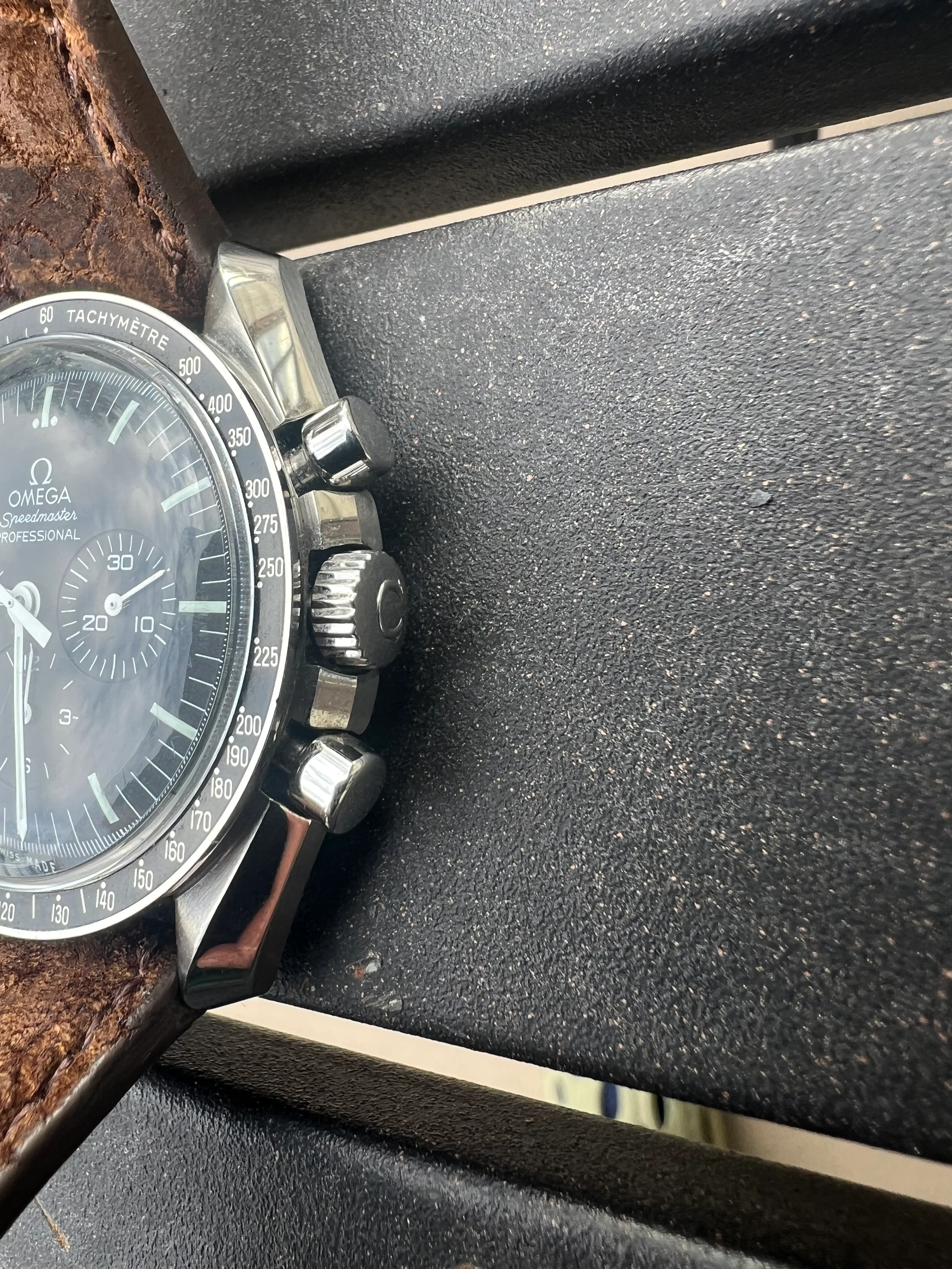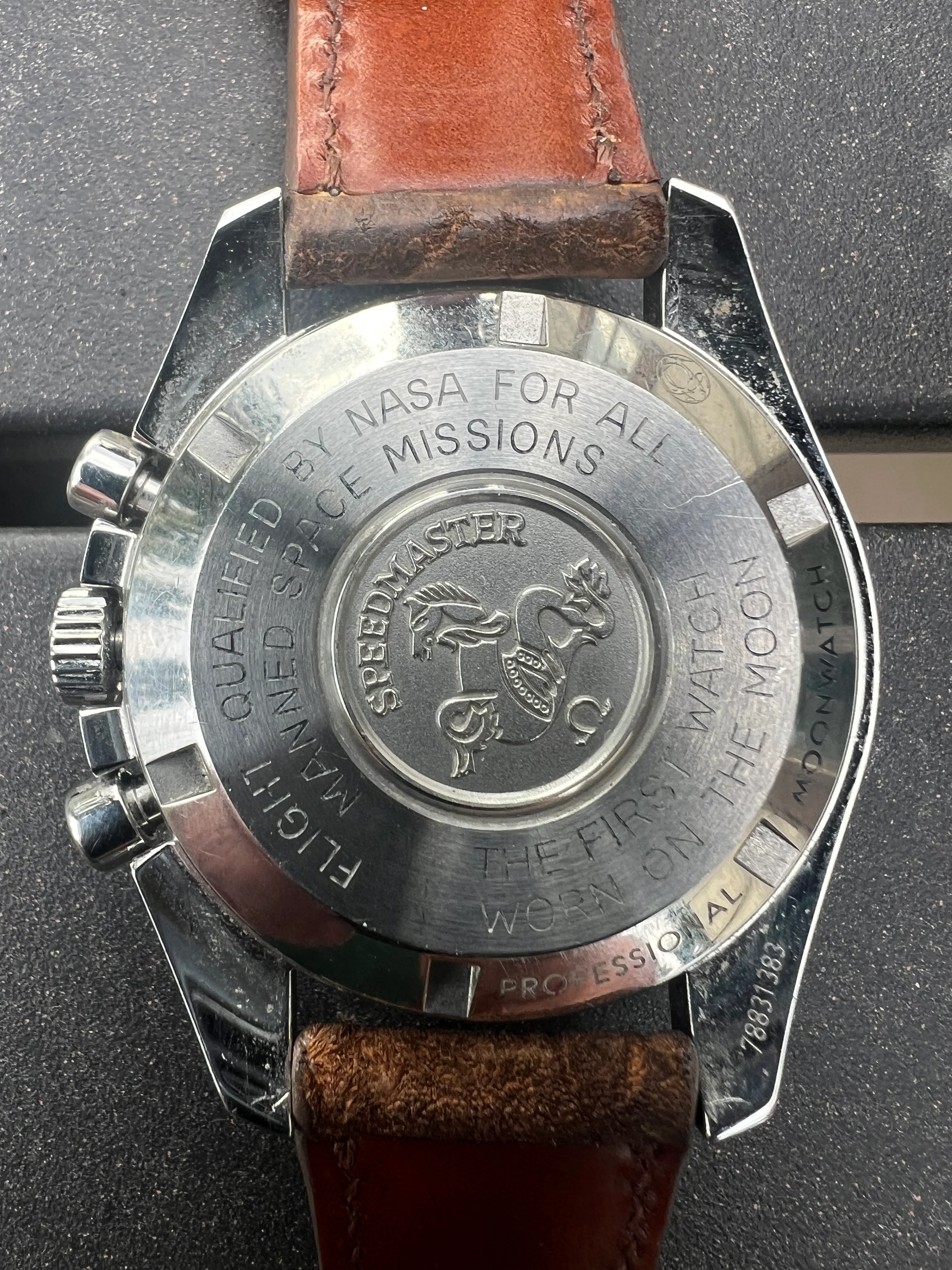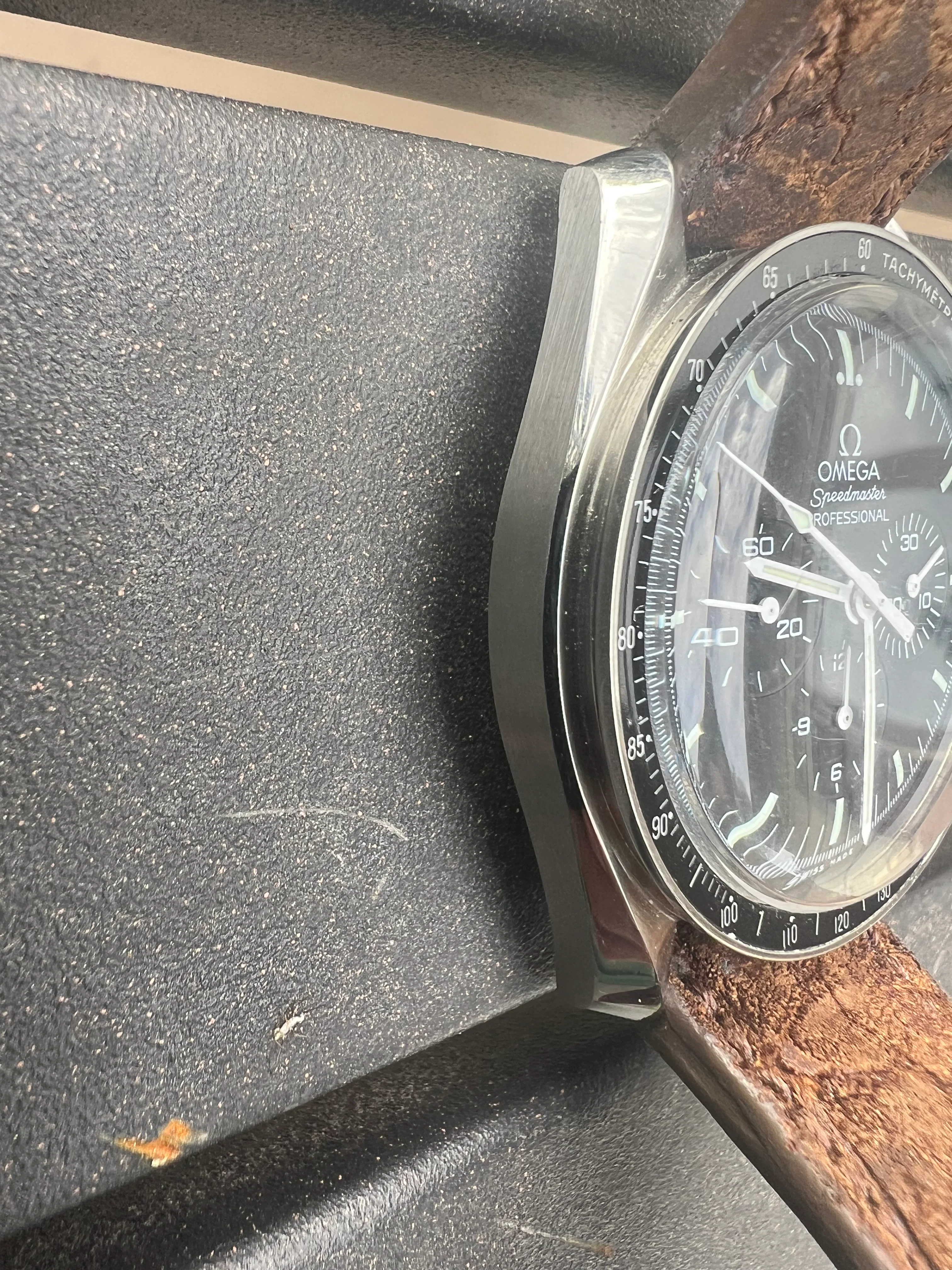 I am keeping the Rhino strap in the photos, but it comes with the original unworn Omega bracelet and extra links. Prior owner states the bracelet was resized, but never worn. It also comes with the big box set and papers. I have worn it sparingly and it is a long ways off before this watch will need a service. Feel free to ask any questions you may have.
