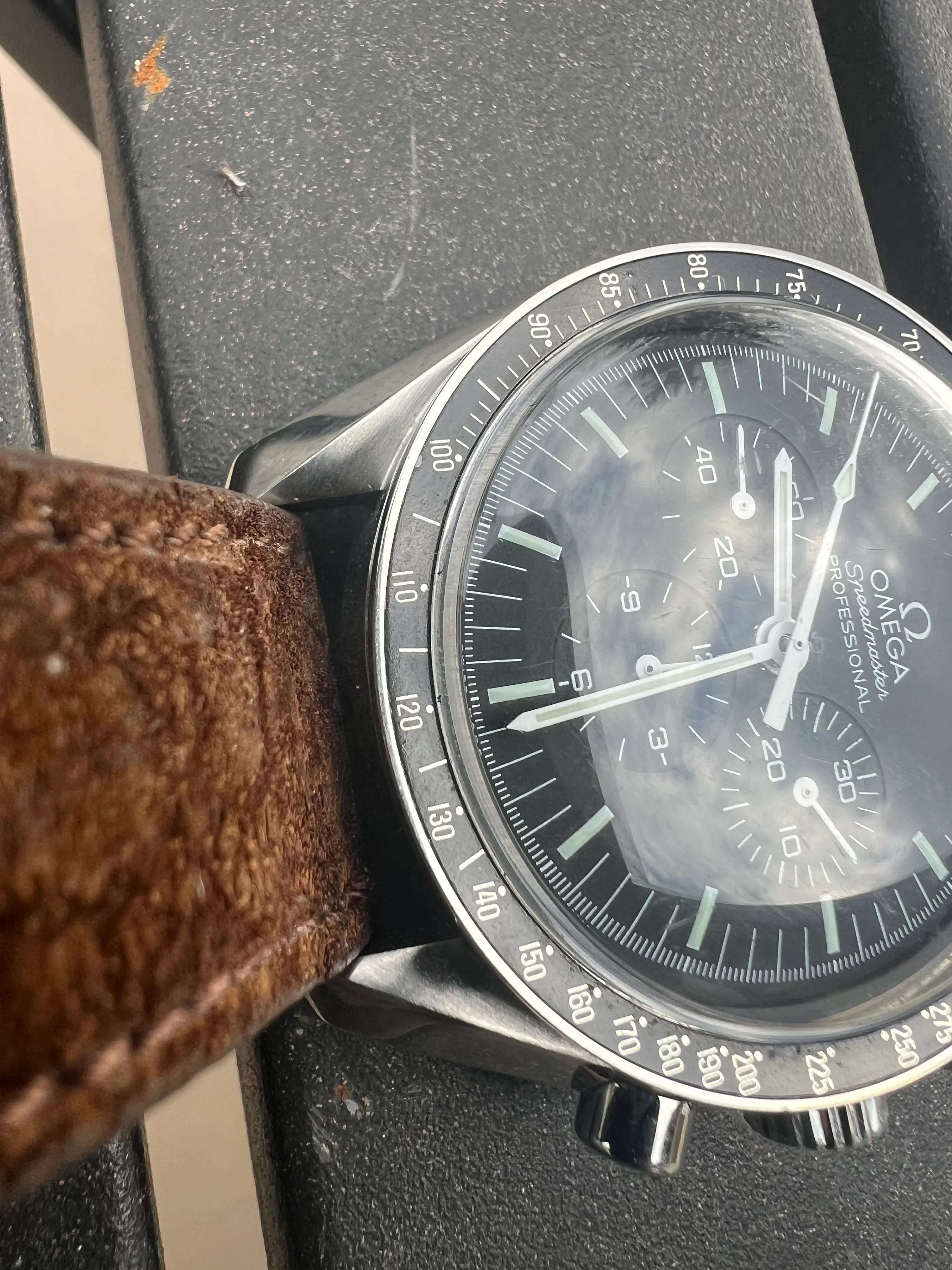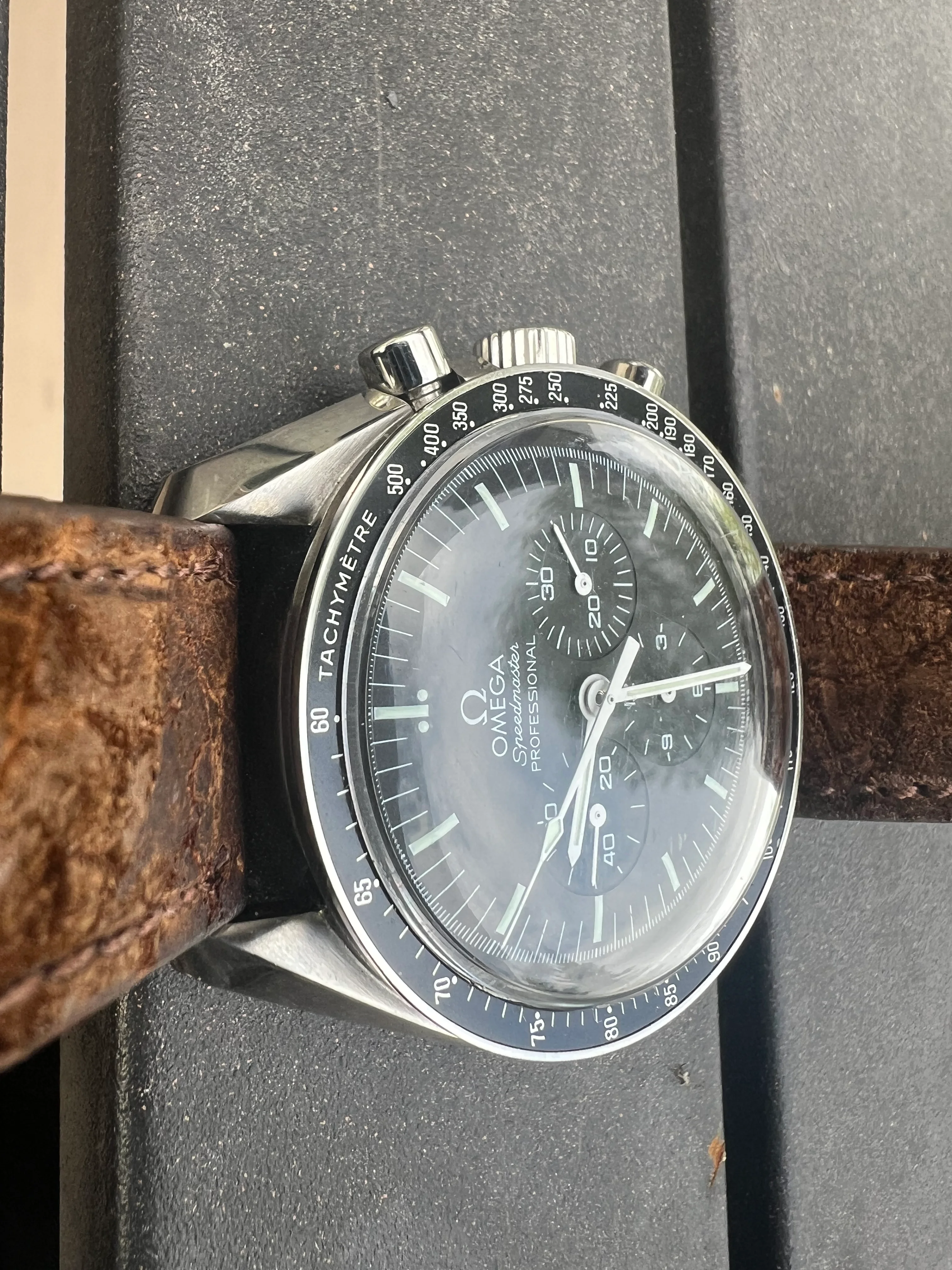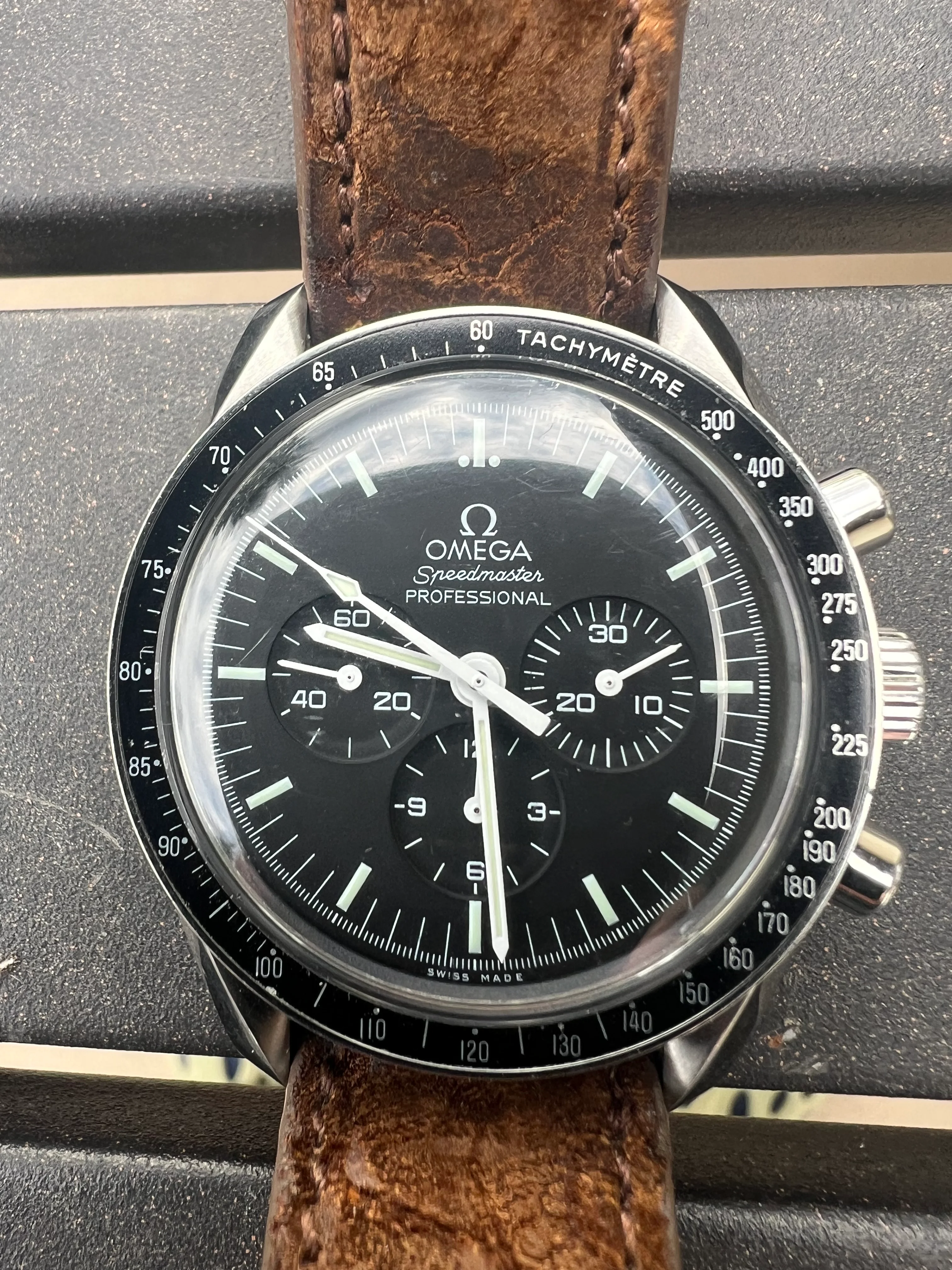 I am keeping the Rhino strap in the photos, but it comes with the original unworn Omega bracelet and extra links. Prior owner states the bracelet was resized, but never worn. It also comes with the big box set and papers. I have worn it sparingly and it is a long ways off before this watch will need a service. Feel free to ask any questions you may have.