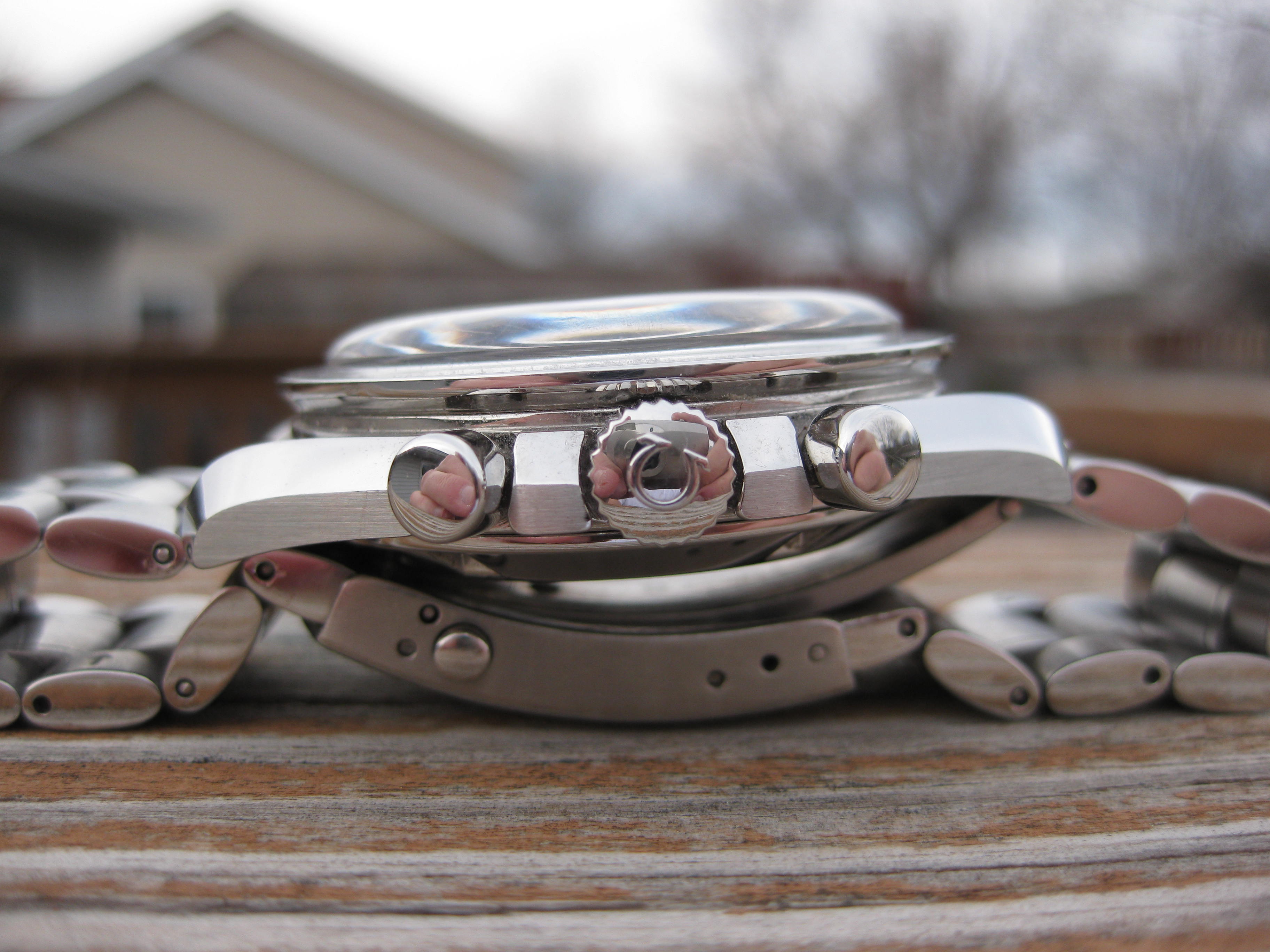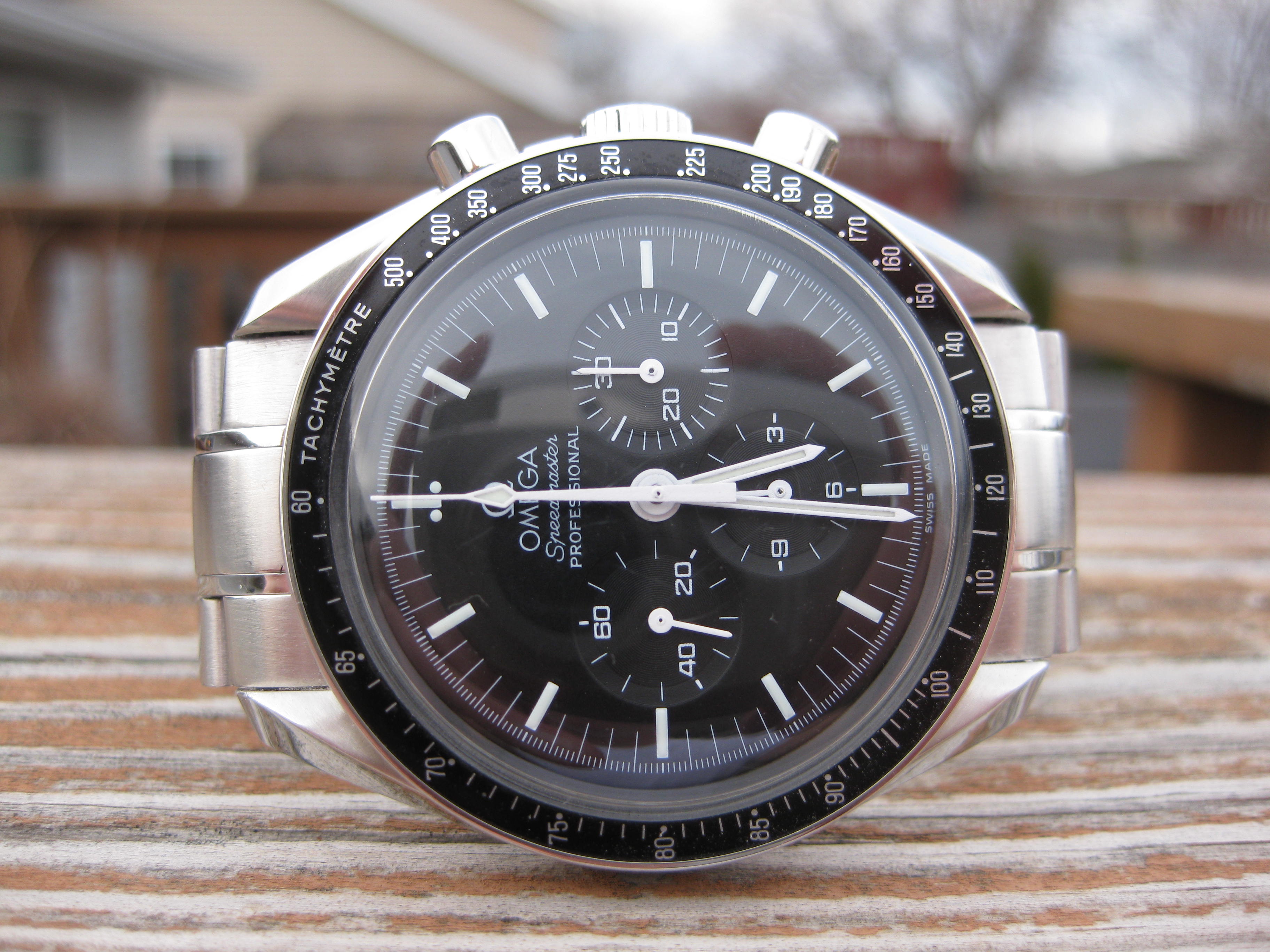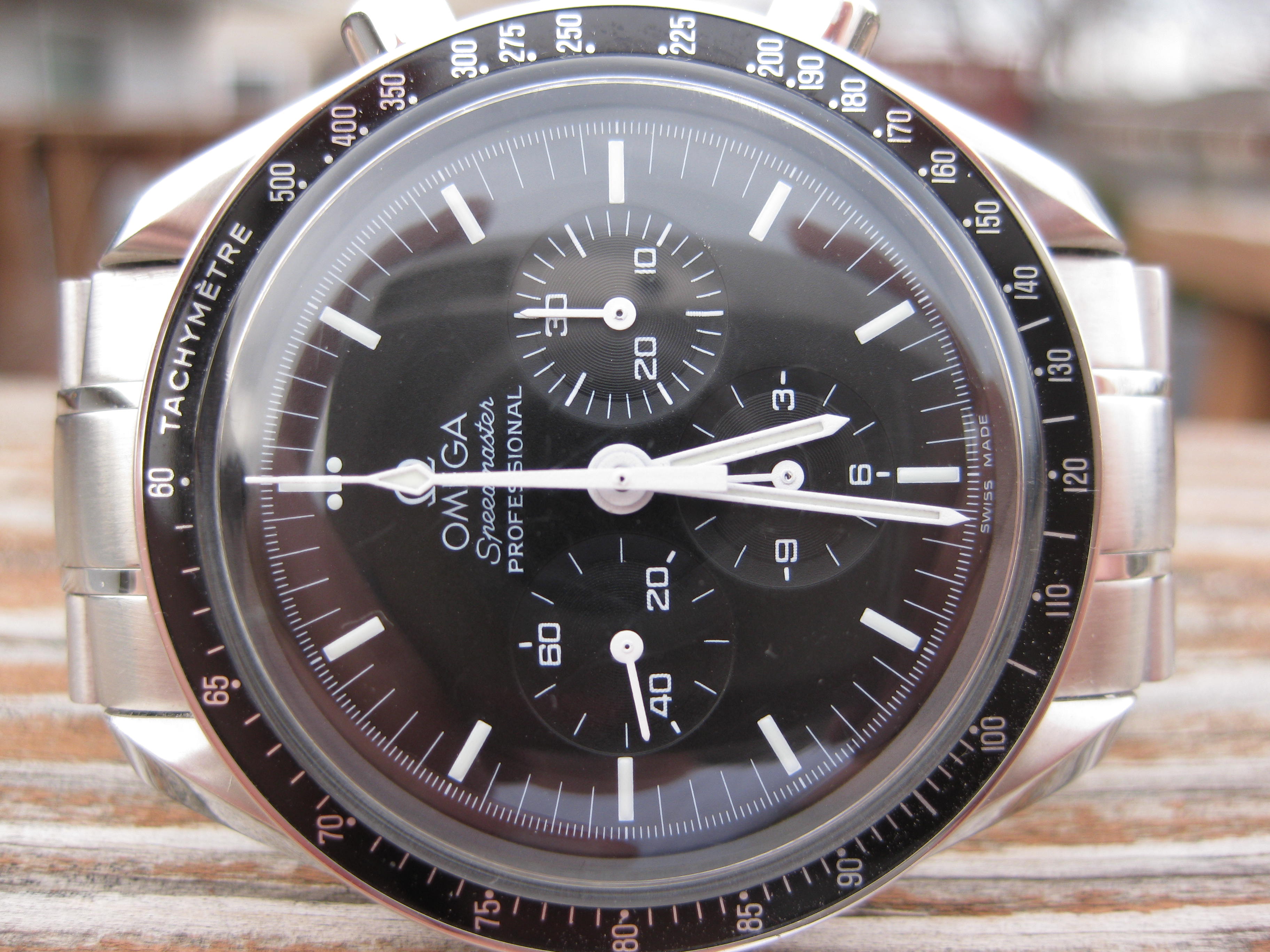 ·For sale is my Omega Speedmaster Professional Moon Watch. It's powered by a 861 calibre movement, and has been running great. Comes with a newer dial, hands, and case. Hesalite crystal is in good condition, has normal wear and the Omega symbol is present. SS bracelet is currently sized for a 7 1/4 wrist, does come with a extra link. Clasp has some wear marks, and has some light marks on a few links. Overall the watch is in really good running condition and cosmetic condition. Please ask any questions, I will be happy to answer them.