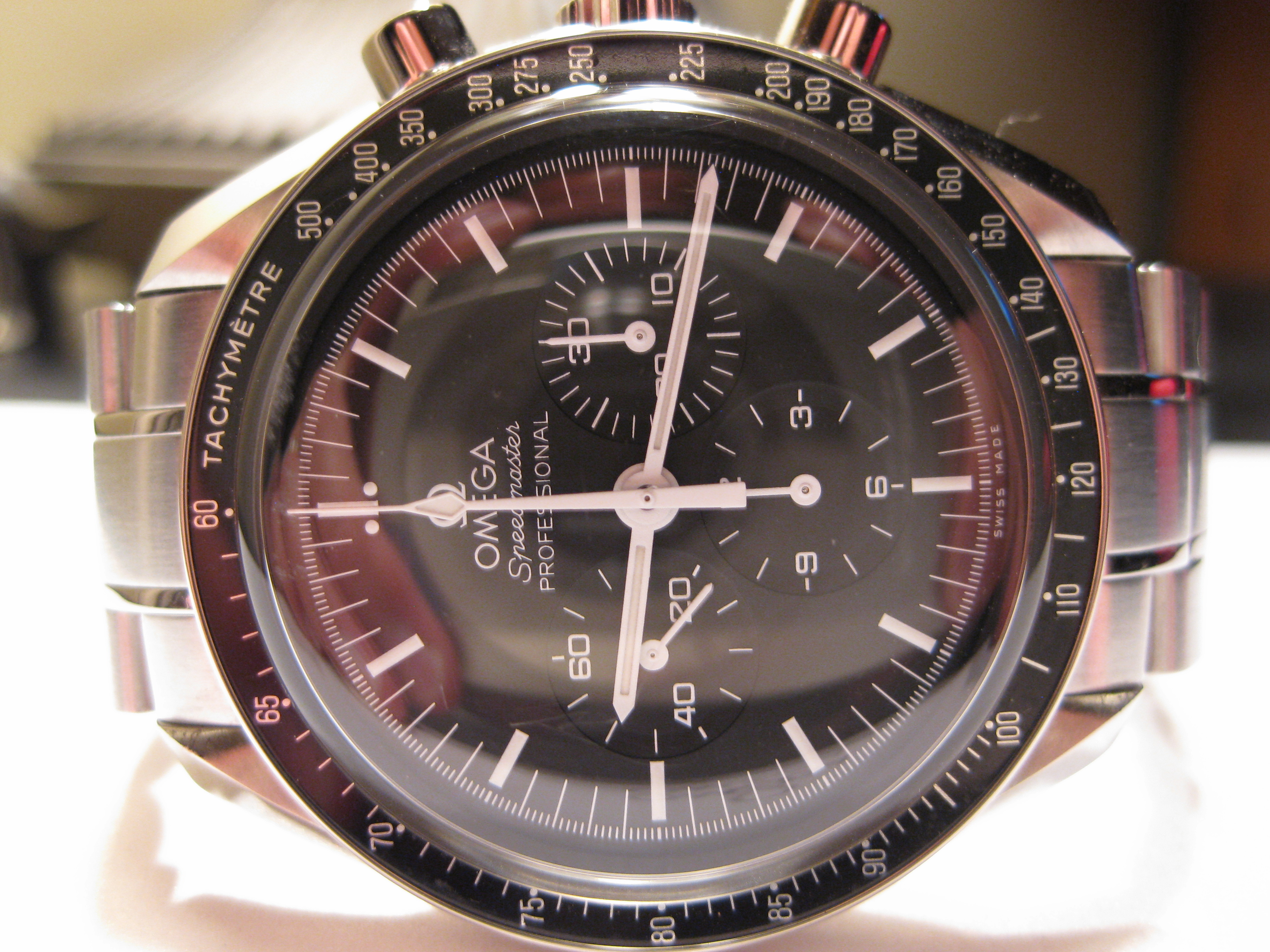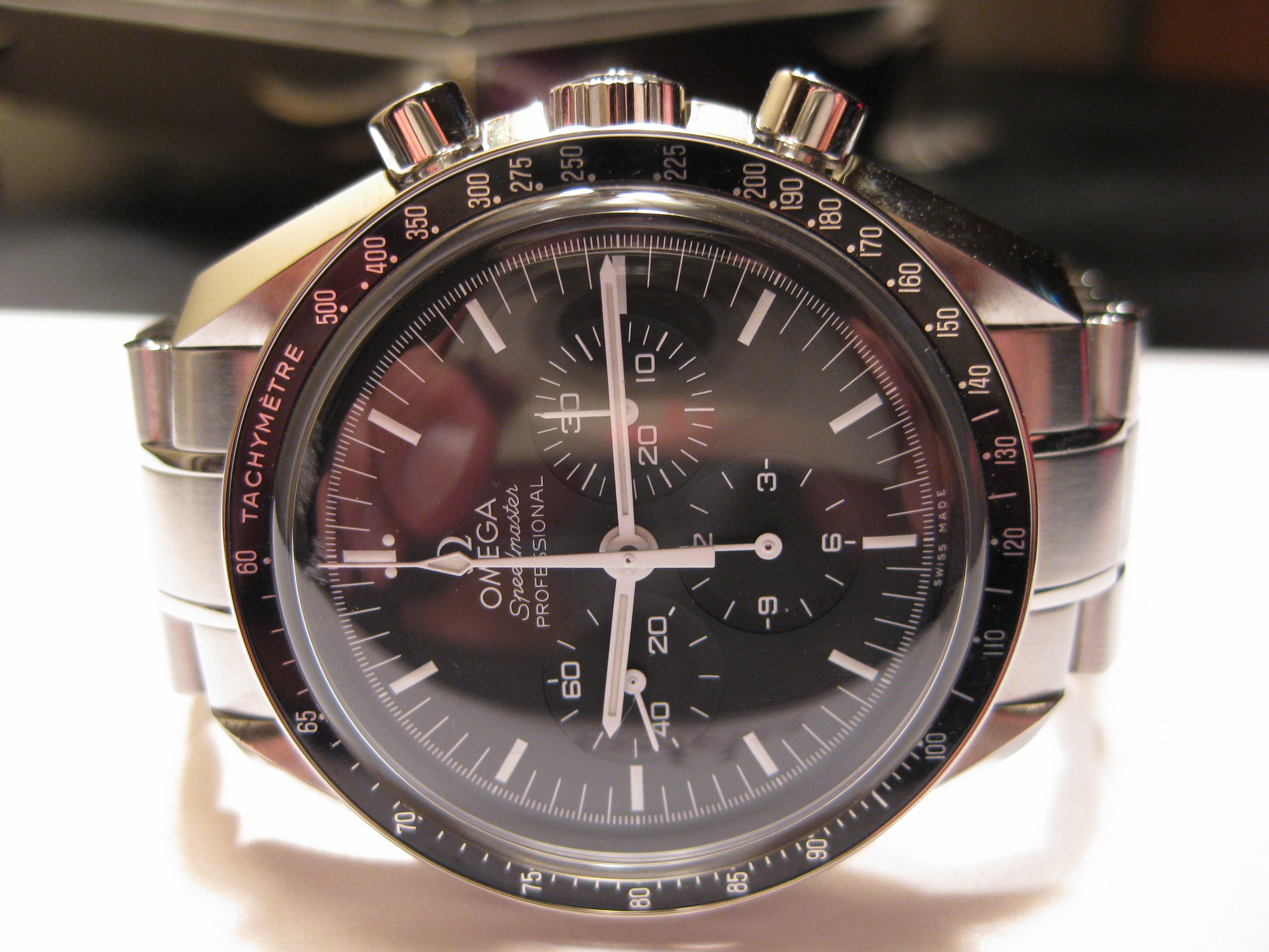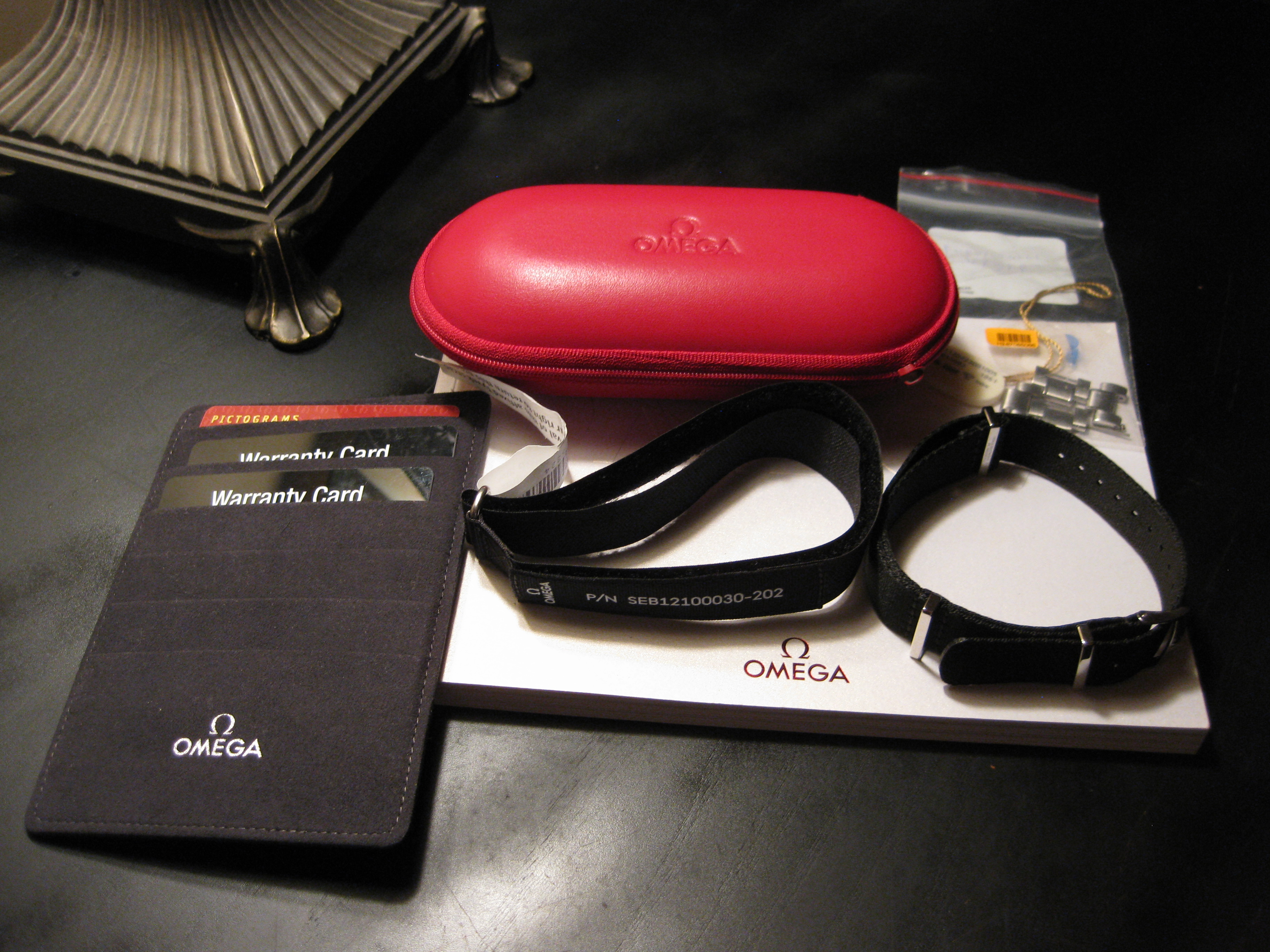 ·This is the latest model of the Omega Speedmaster Professional Moonwatch, and is under a 2 year warranty with Jomashop. Absolutely in perfect working order, sets, winds, and runs flawlessly. Has a few very light, insignificant swirls on the band and clasp. Comes with: Omega padded coffin, Omega Pictogram card, Omega card wallet, Jomashop warranty cards, Omega Hang tag, Omega nato strap, Omega Velcro strap. Has a full bracelet, with 4 links removed but included. No boxes. Retail is $5200.