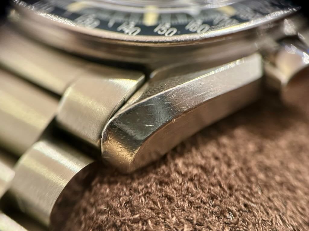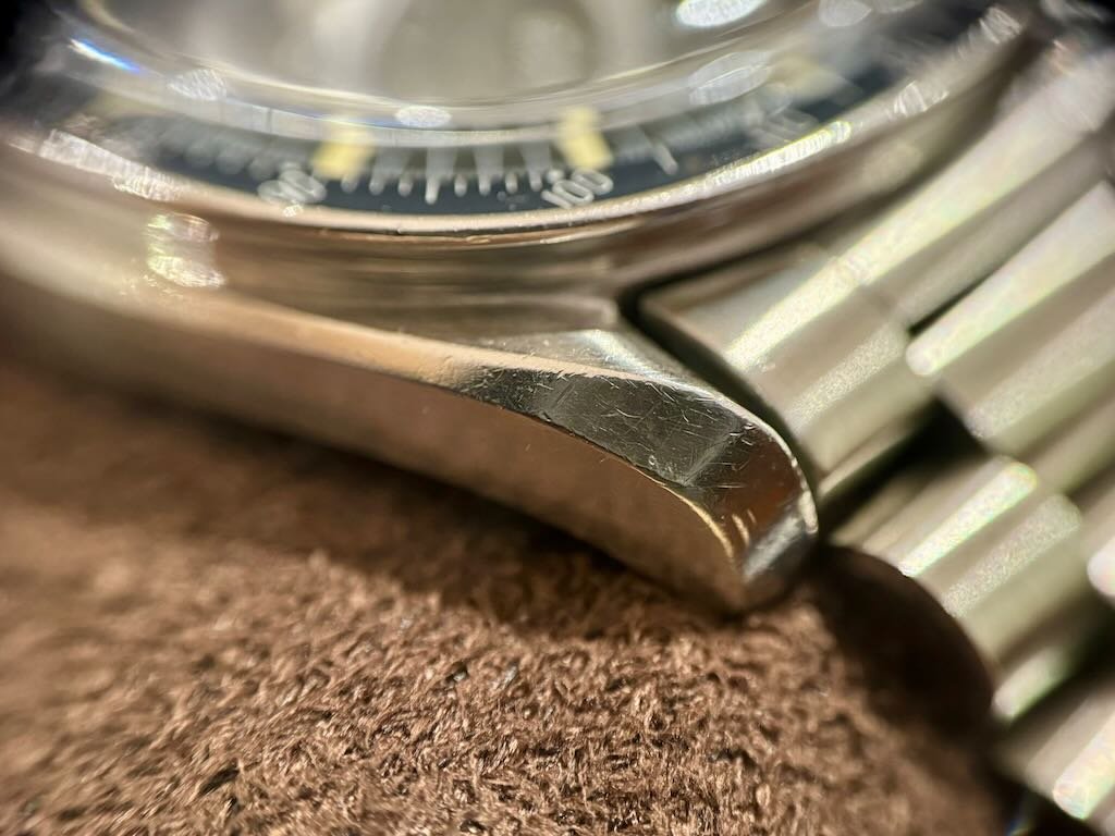 Bezel (DON/DO90/DD70, type B1): in very good condition, no major metal showing. The only imperfections are a few small marks, for example near the 500 marker. No text significantly degraded/obscured. It also appears to be developing a slight blueish hue!