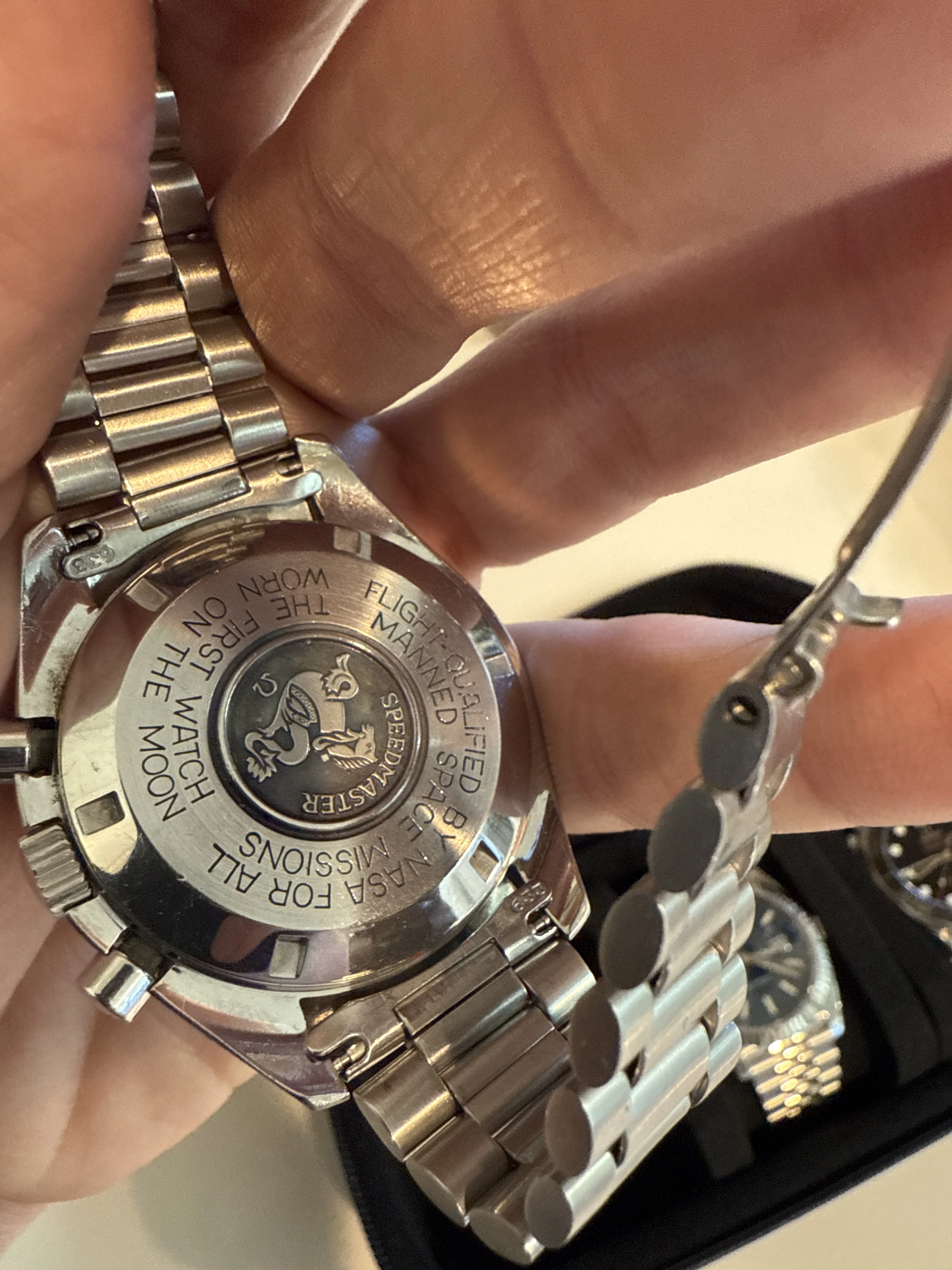 From what I can tell, it most closely resembles the Japan-market variant of the Apollo XI 20th Anniversary Speedmaster, likely reference ST 345.0022, but this version has no Apollo-specific engraving - just the standard NASA caseback. I’ve seen mentions of a small batch of Japan-exclusive models released in 1989 with these exact features.
