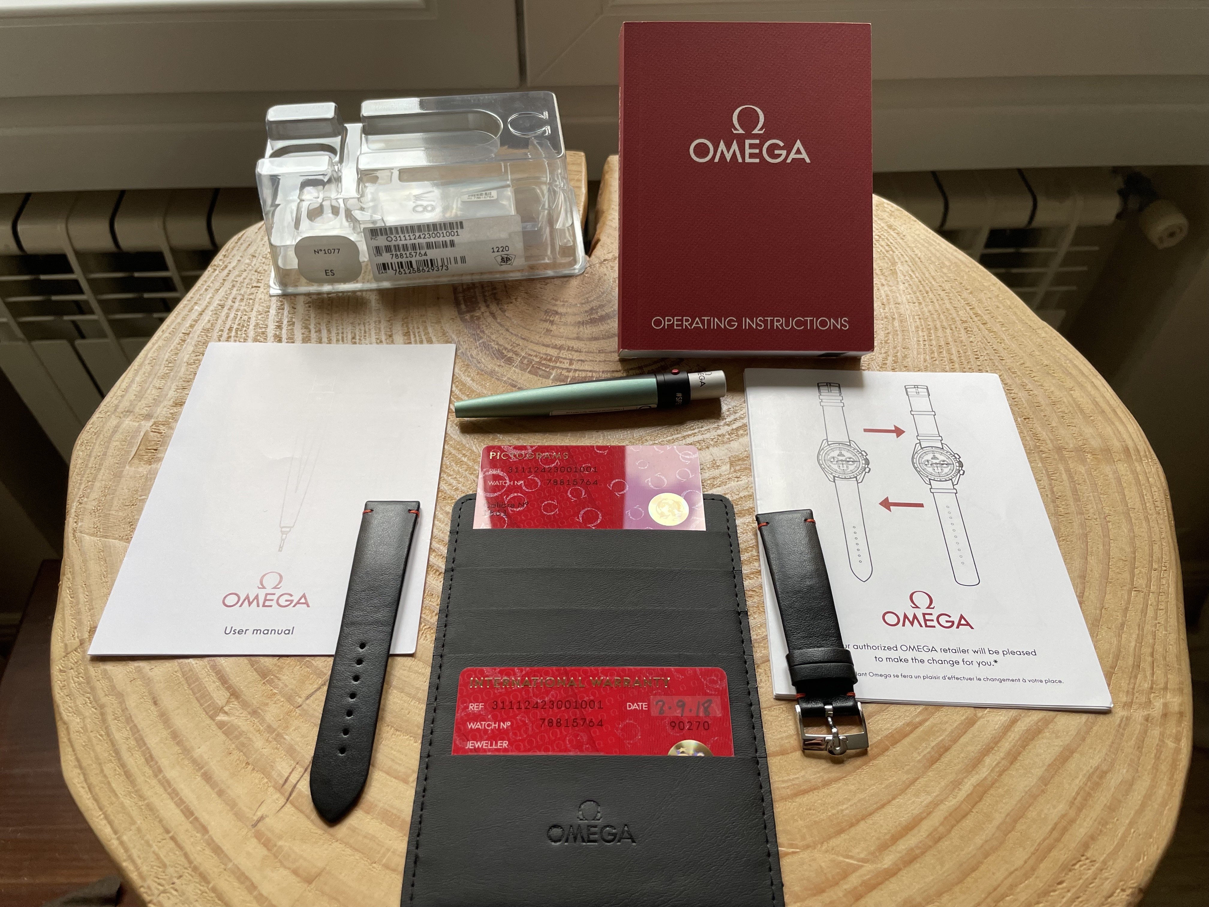 The sale includes the watch with all boxes, papers, cards, stickers, straps, and UV led, as shown on the pictures.