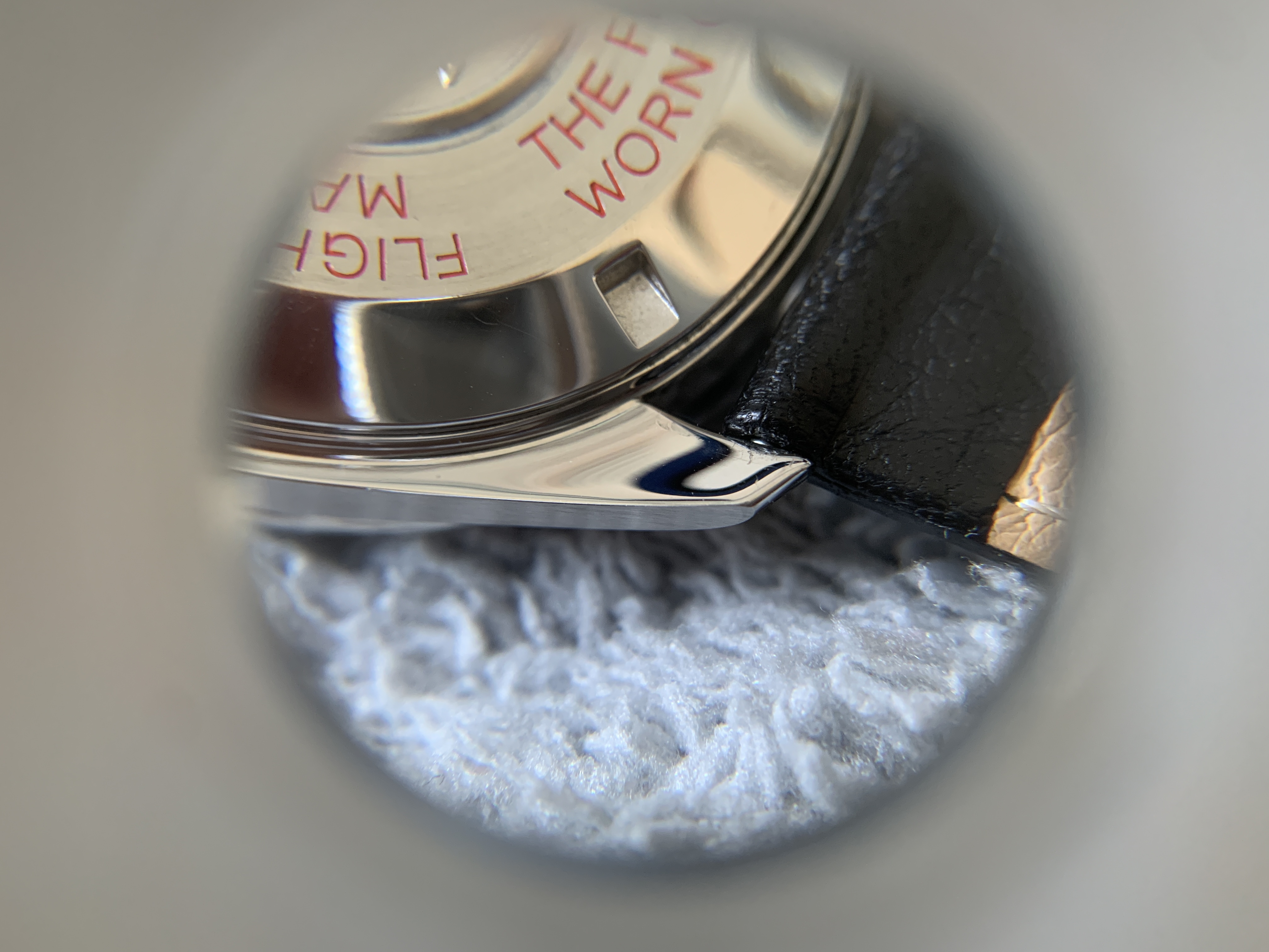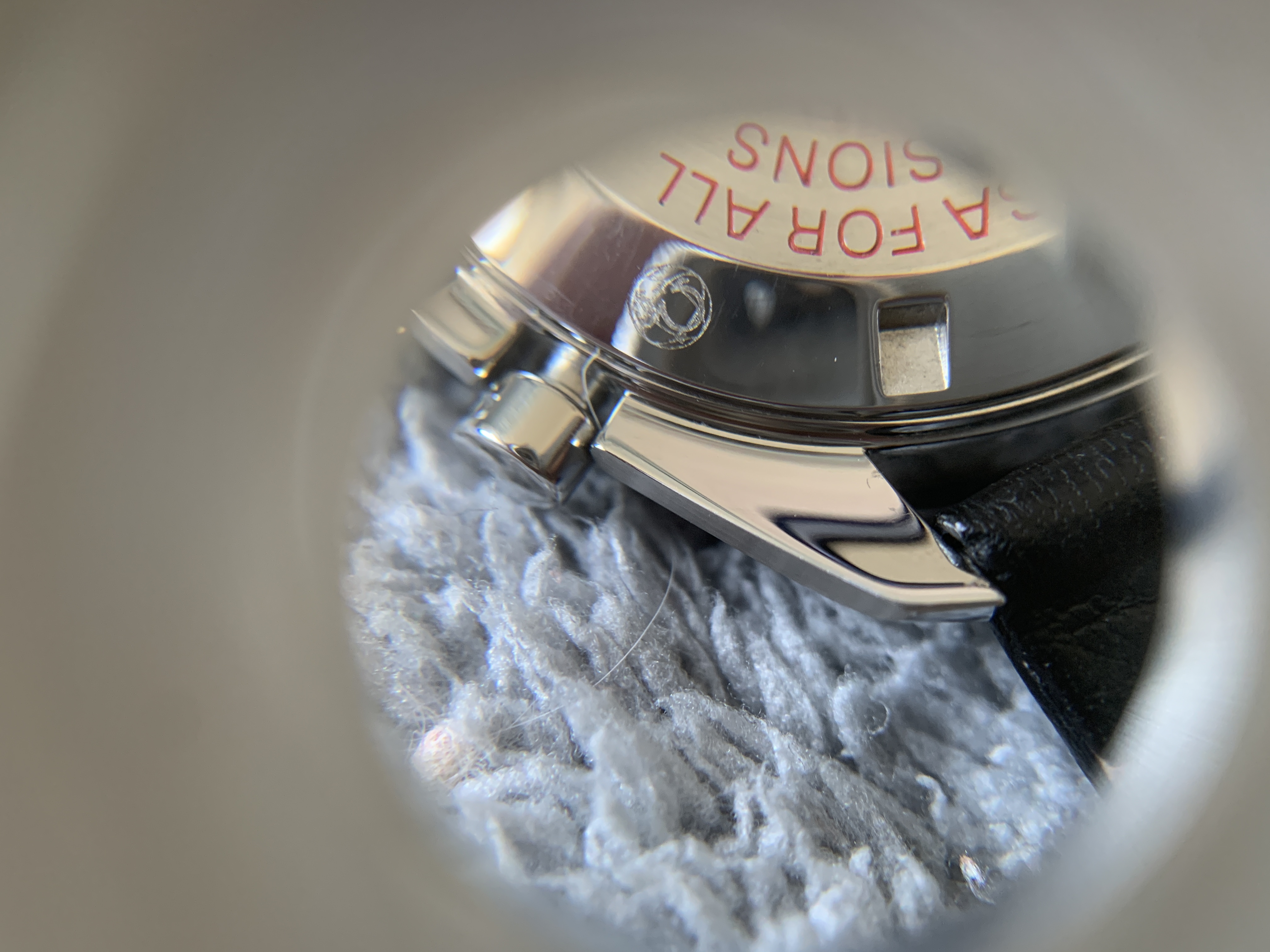 Condition: Very good, lightly used, not brand new - there are some swirl marks on the underside of the lugs from strap changes, and couple of tiny hairlines on the case back and the tops of the lugs from daily wear.