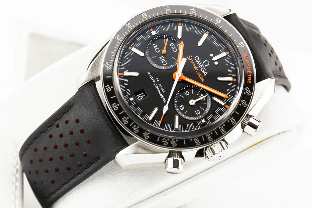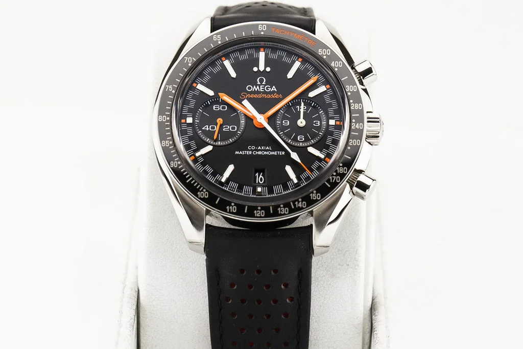·Up for sale is an excellent condition Omega Speedmaster Racing Master Co-Axial Black & Orange Dial, reference # 329.32.44.51.01.001. It comes complete with all boxes, papers, booklets, hang tag and Omega Warranty Card dated December 2020.