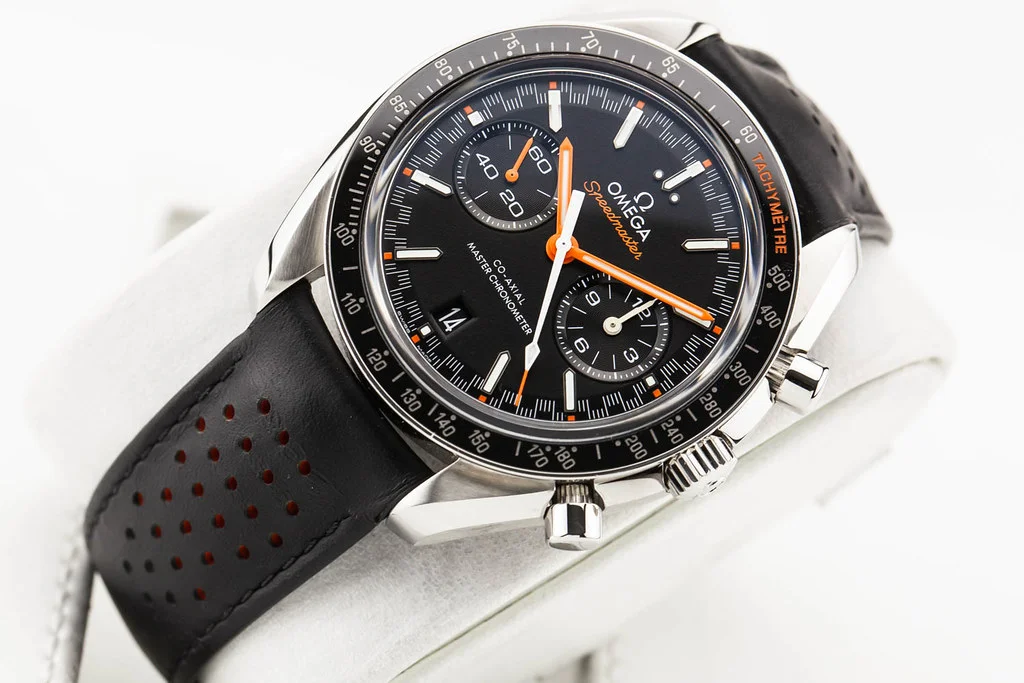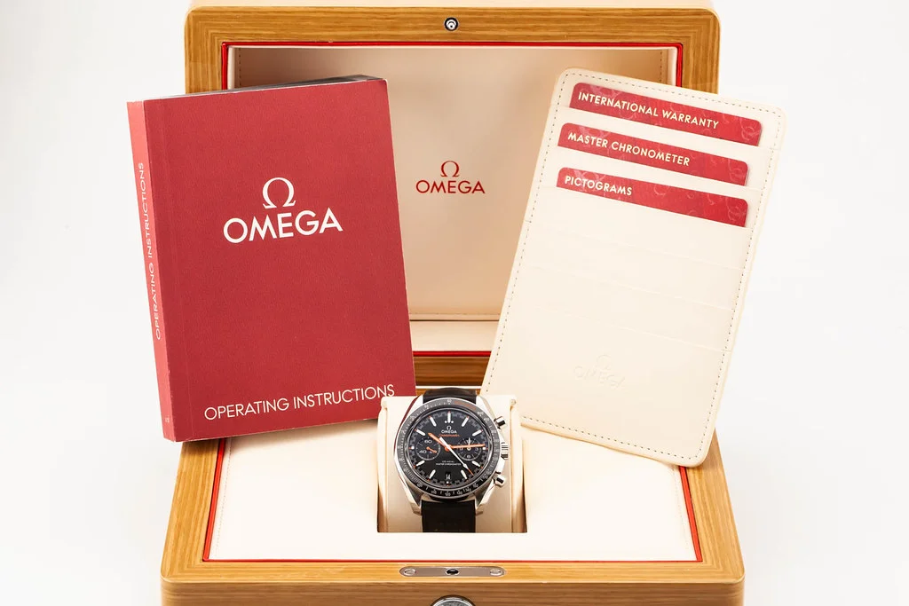 ·Up for sale is an excellent condition Omega Speedmaster Racing Master Co-Axial Black & Orange Dial, reference # 329.32.44.51.01.001. It comes with all boxes, papers, booklets, and Omega Warranty Card dated November 2024.