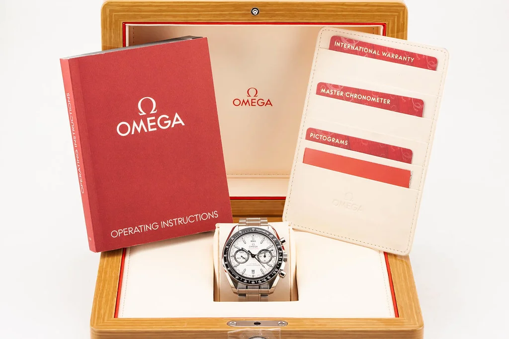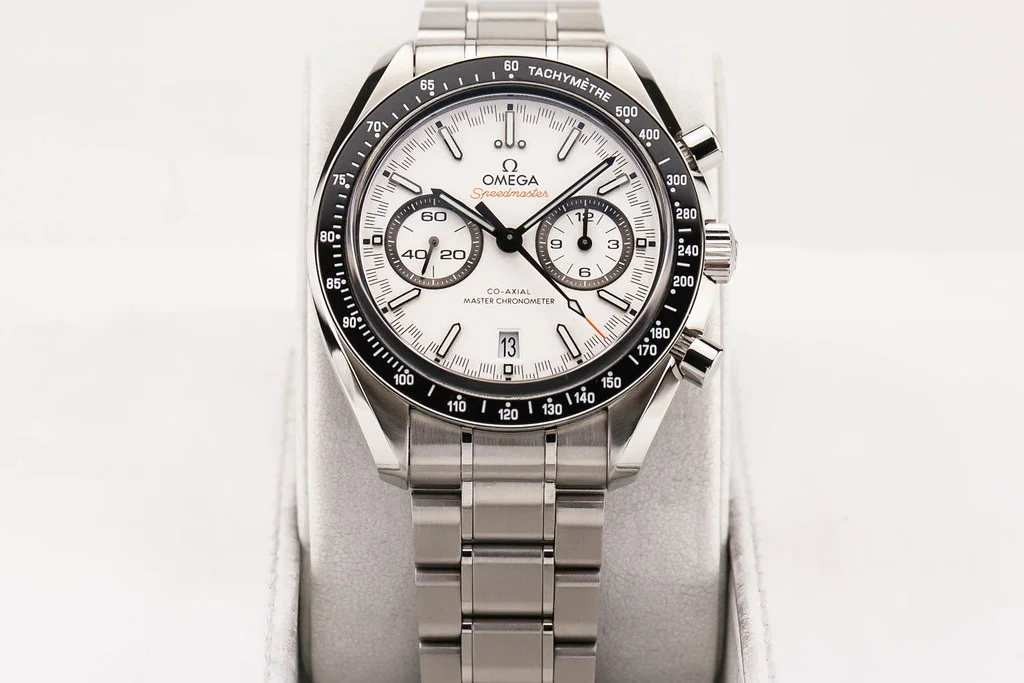 ·Up for sale is an excellent condition Omega Speedmaster Racing Master Co-Axial in White Dial, reference # 329.30.44.51.04.001. It comes with all boxes, papers, booklets, and Omega Warranty Card dated November 2024.