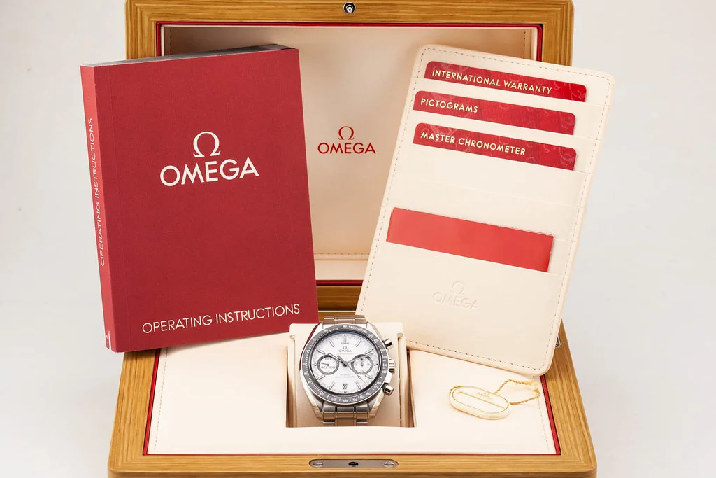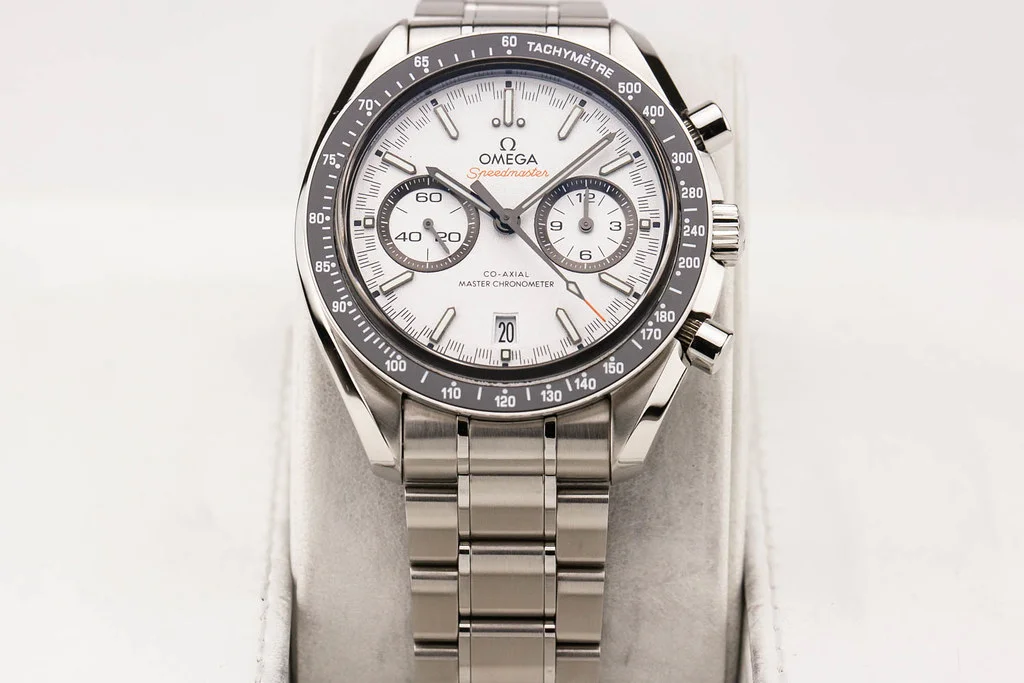 ·Up for sale is an excellent condition Omega Speedmaster Racing Master Co-Axial in White Dial, reference # 329.30.44.51.04.001. It comes complete with all boxes, papers, booklets, hang tag and Omega Warranty Card dated February 2023.