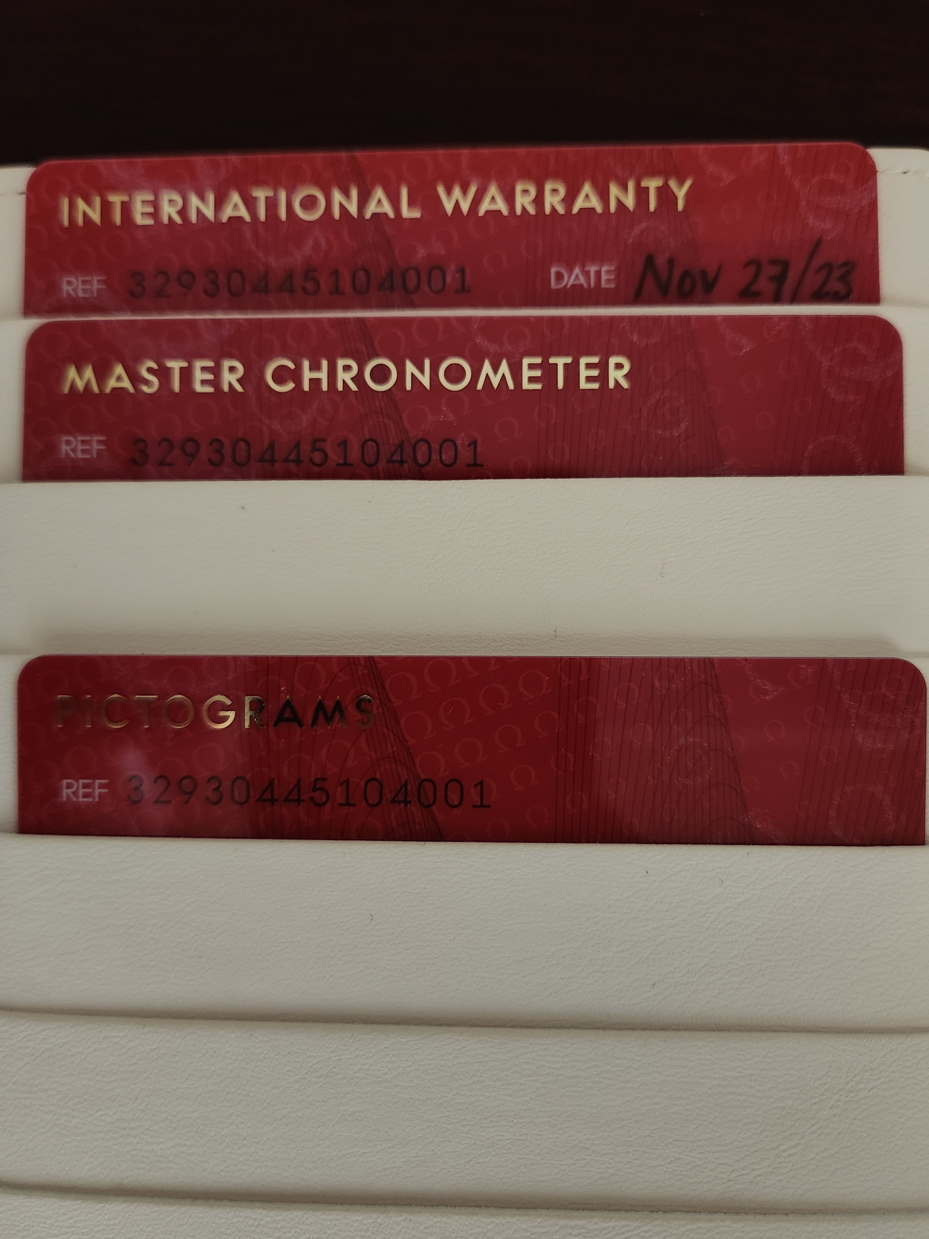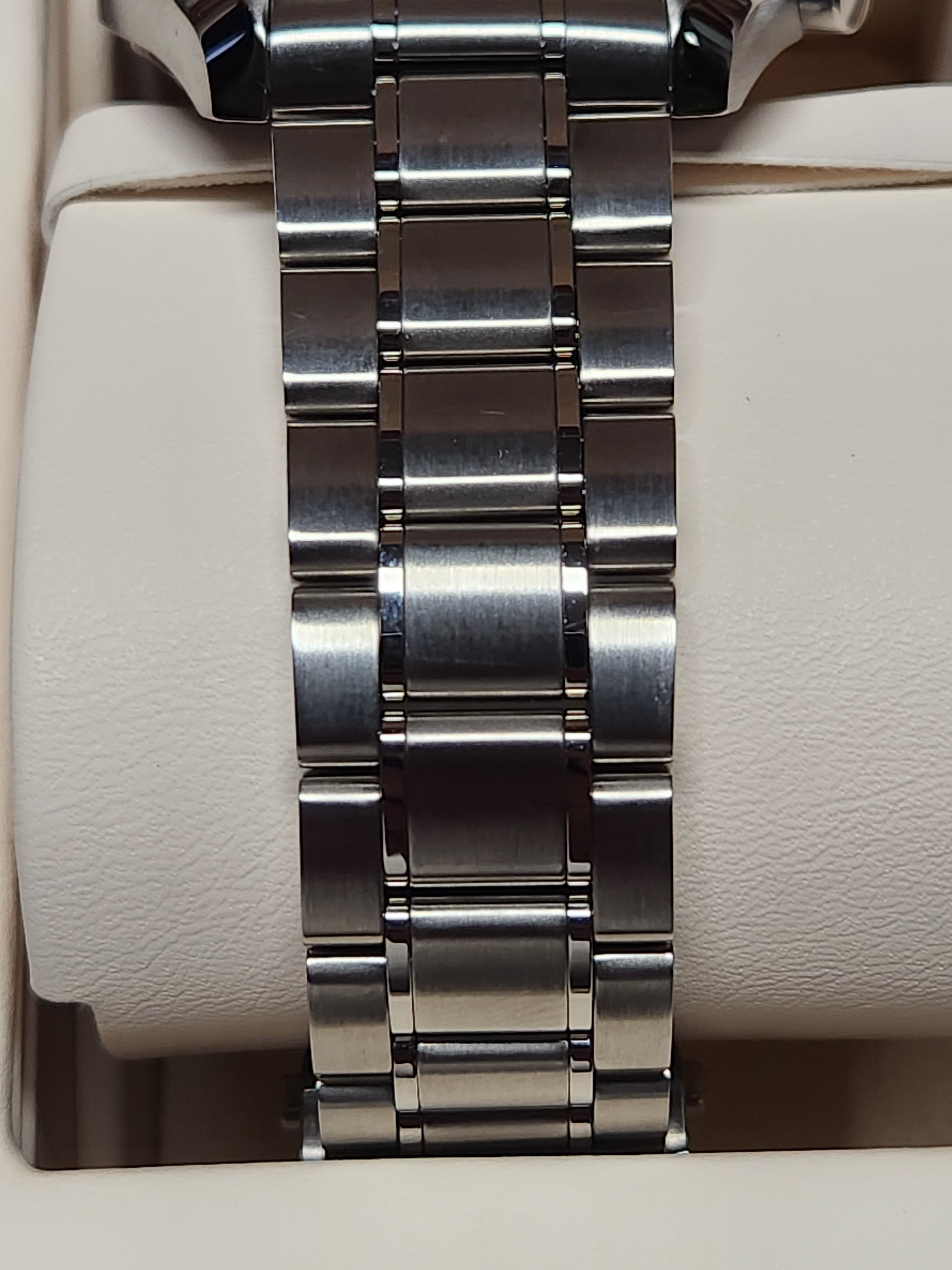 Watch comes with all boxes, all cards, hang tag, full link set on bracelet and a new, never worn 21mm Aqua Terra strap - strap was only installed for demonstration pictures and removed. As you can see, the clasp is still sealed in the package.