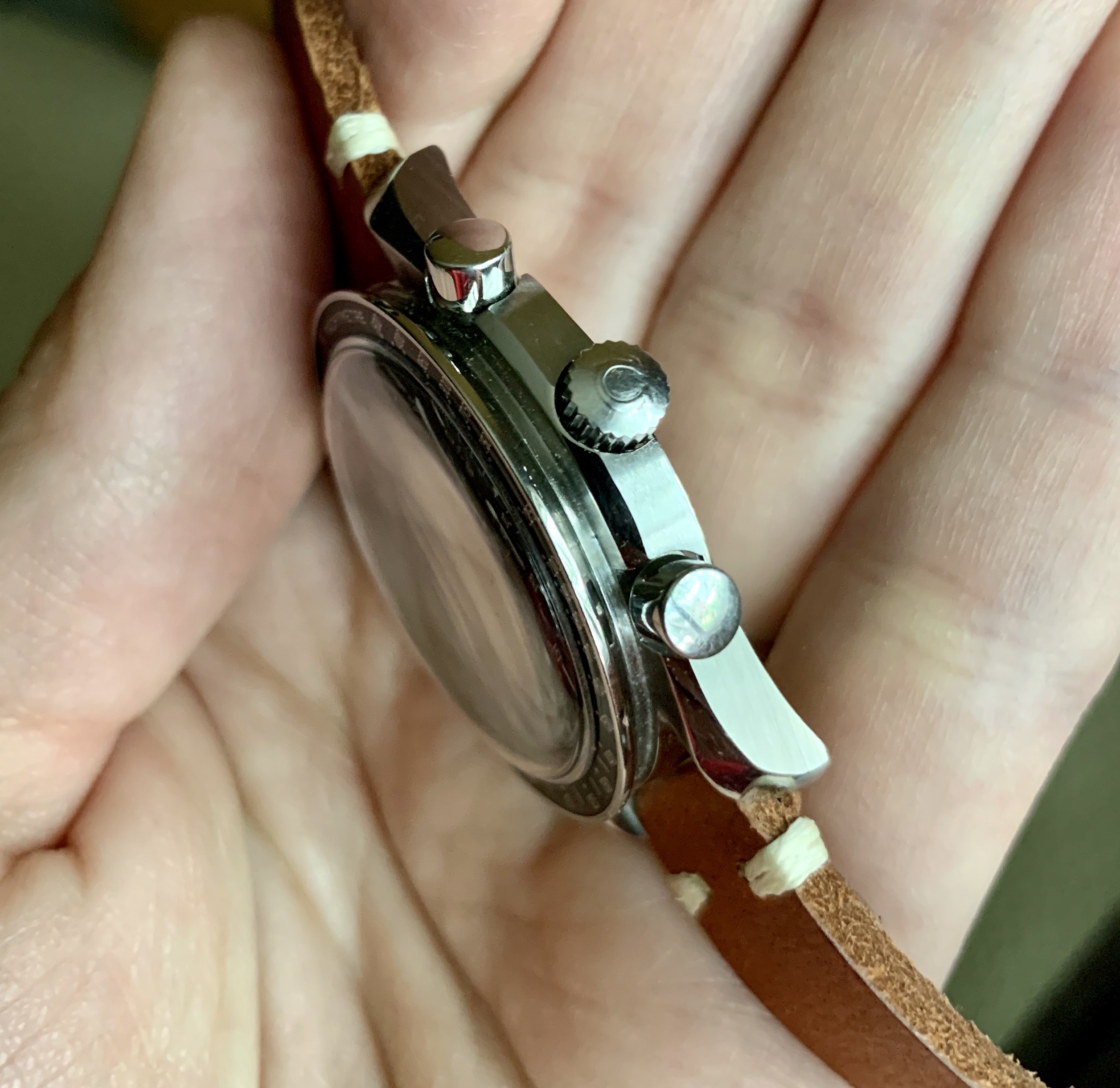 Previous owner advised that he had the watch serviced in 2015 but did not have a service receipt. I’ve owned the watch for about 2 years and it has kept good time. The watch winds smoothly and the chrono functions work properly. As with any vintage watch, a service is recommended if the watch is intended for daily use.