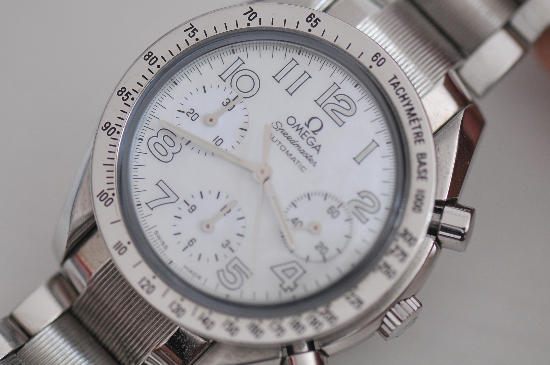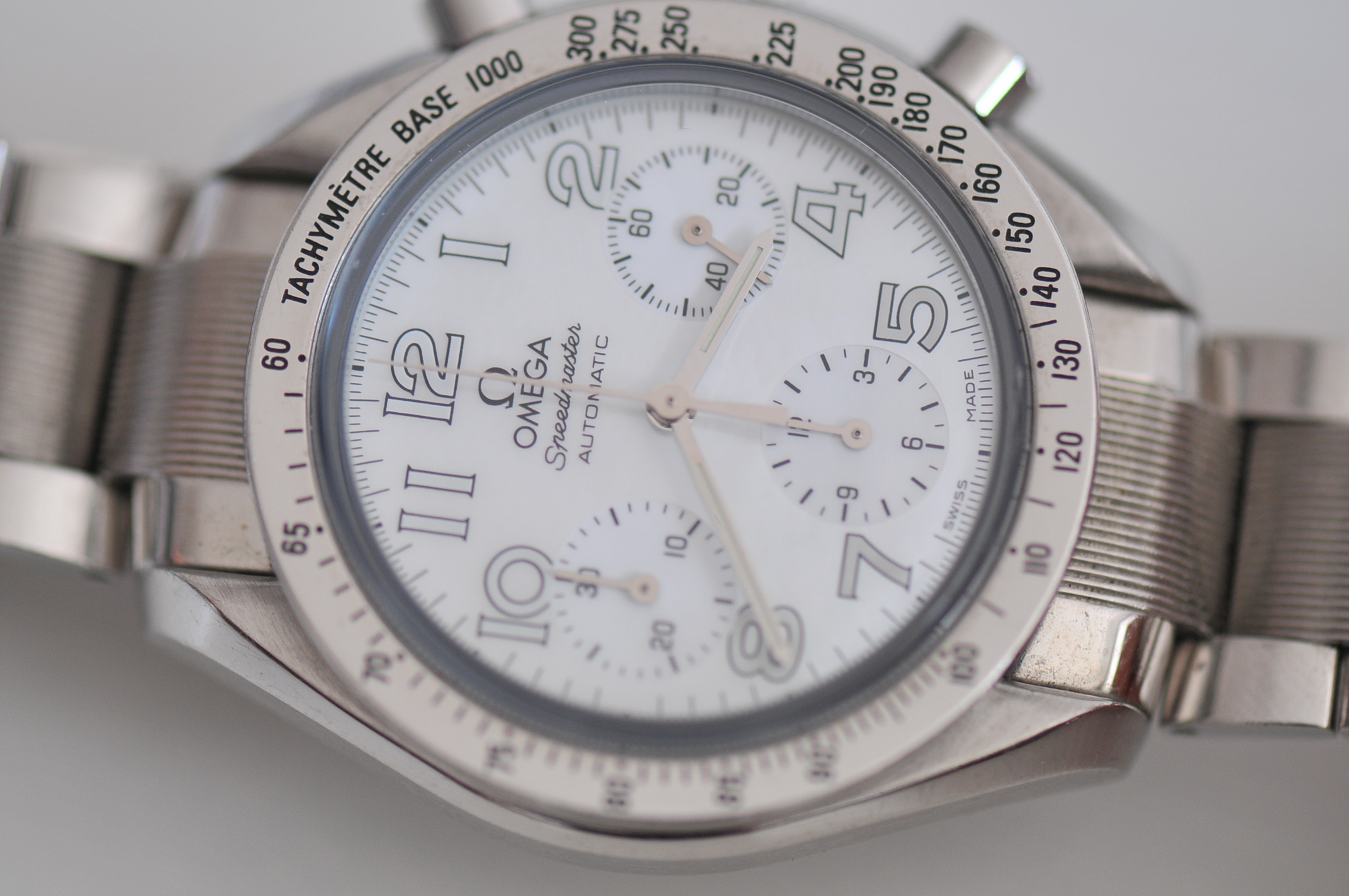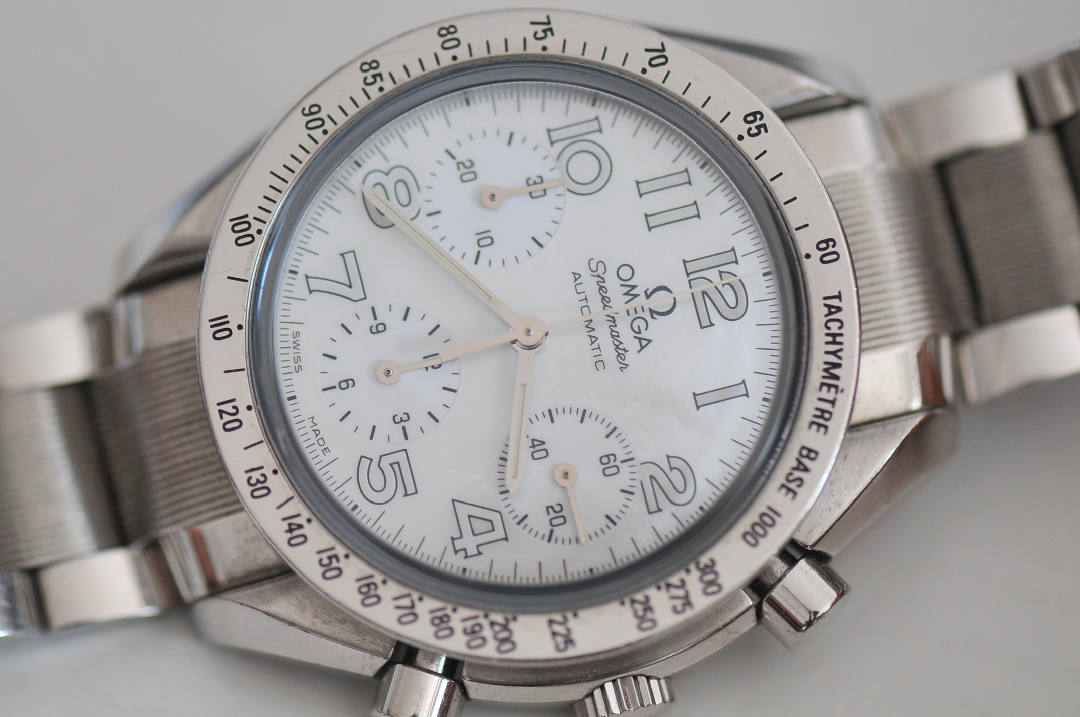 I have for sale a nice Omega Speedmaster chronograph 39mm case size with white dial