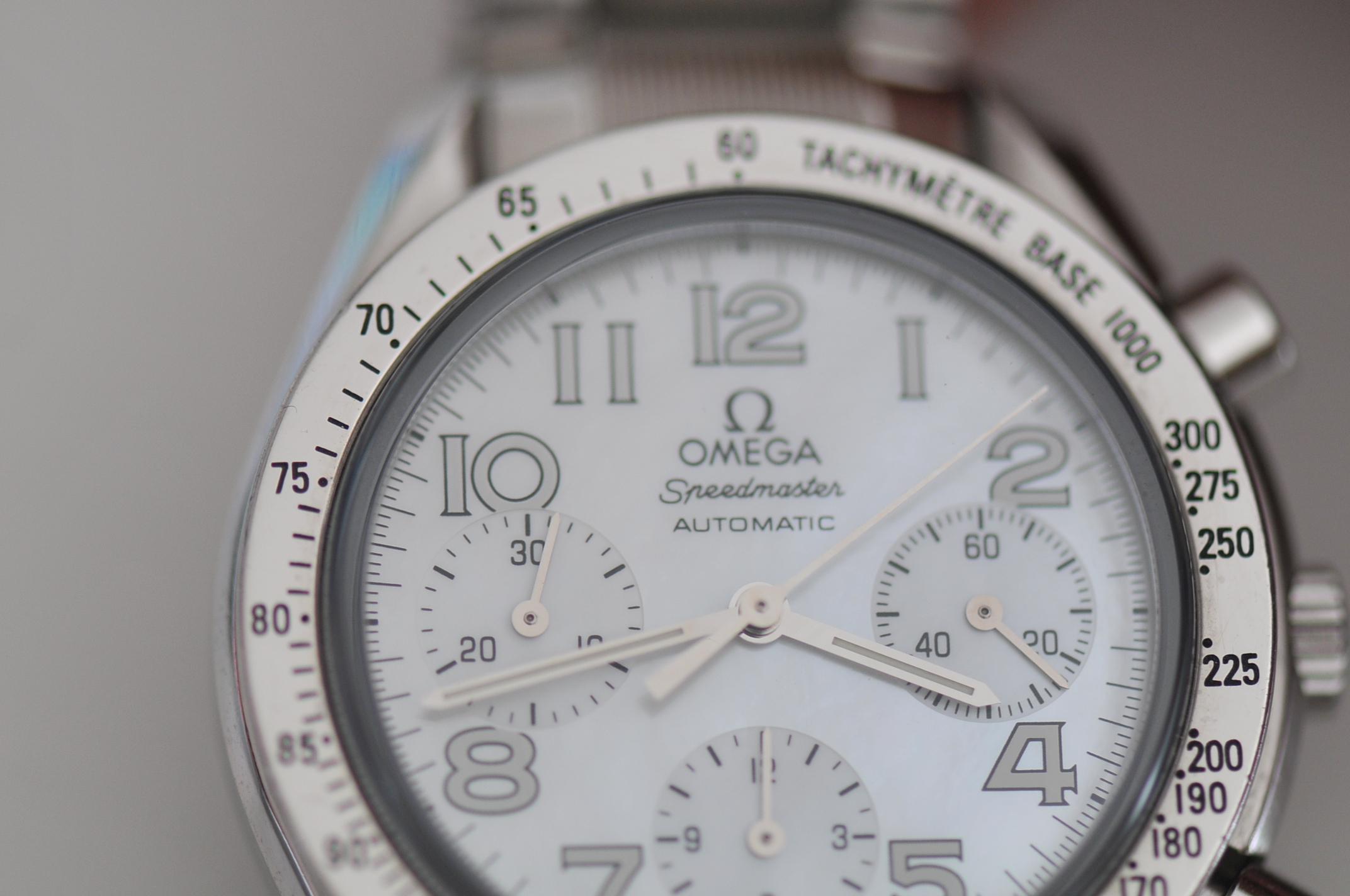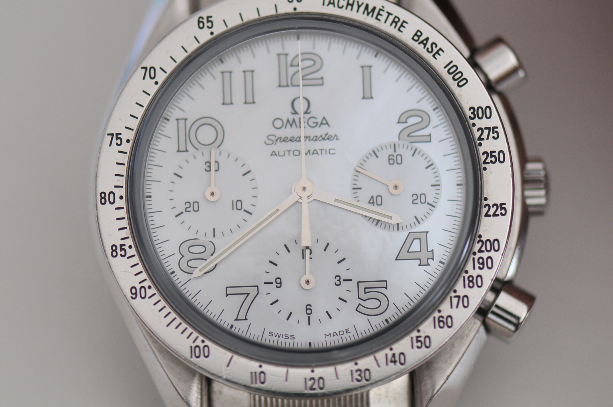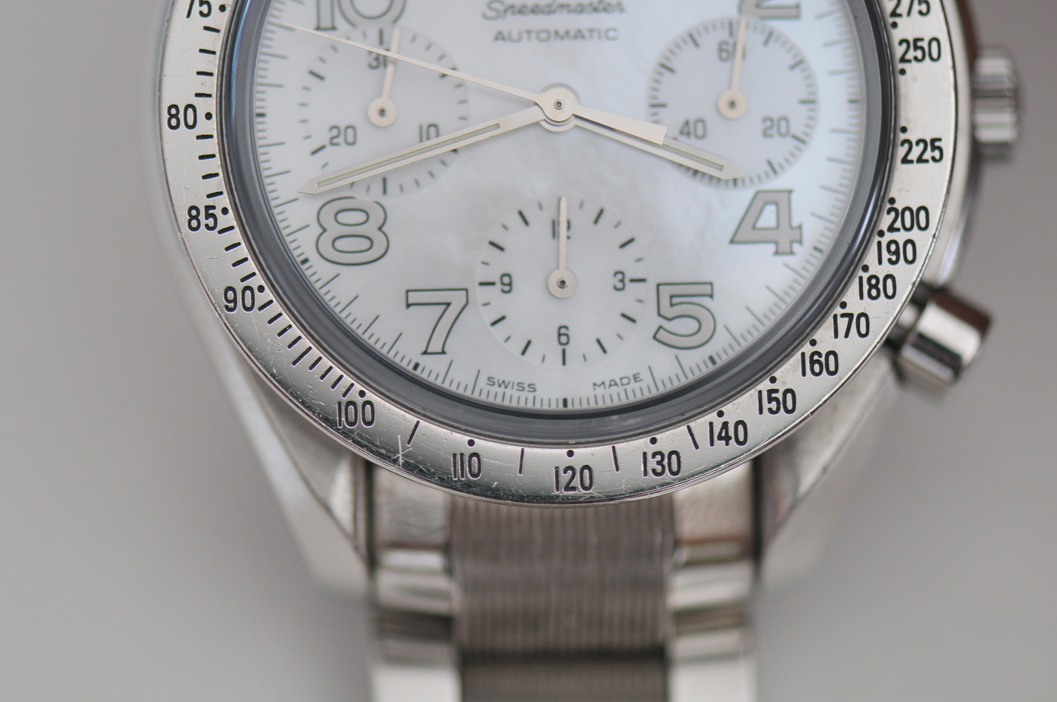 I have for sale a nice Omega Speedmaster chronograph 39mm case size with white dial