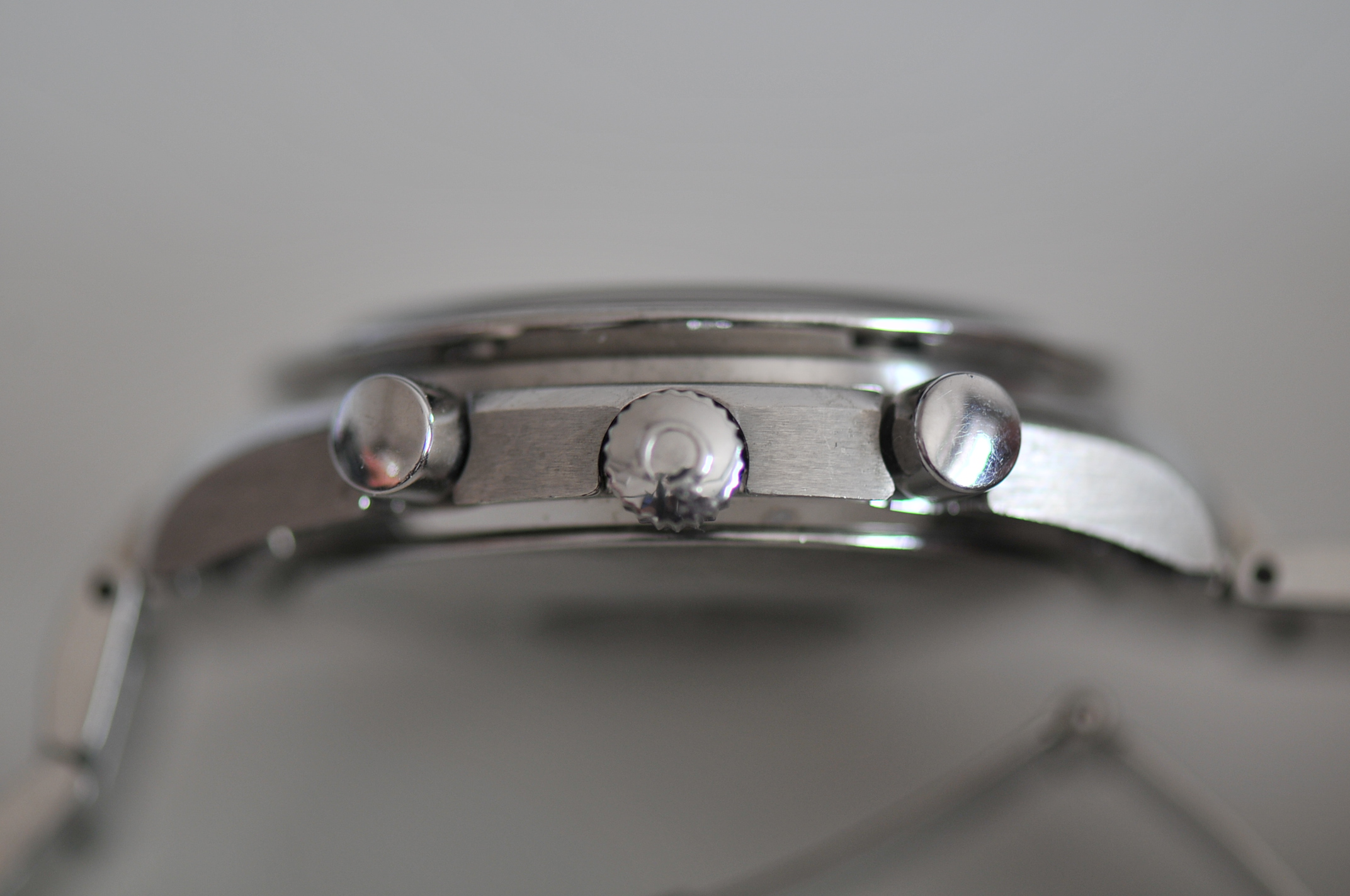 I do not know the service history of the watch but all the functions runs as it should and has an error of about 4 sec per day. The bracelet will now fit on 17cm wrist size but i have all the extra links which were removed from the watch. The chronograph start, stop, reset very well. No box or cards.