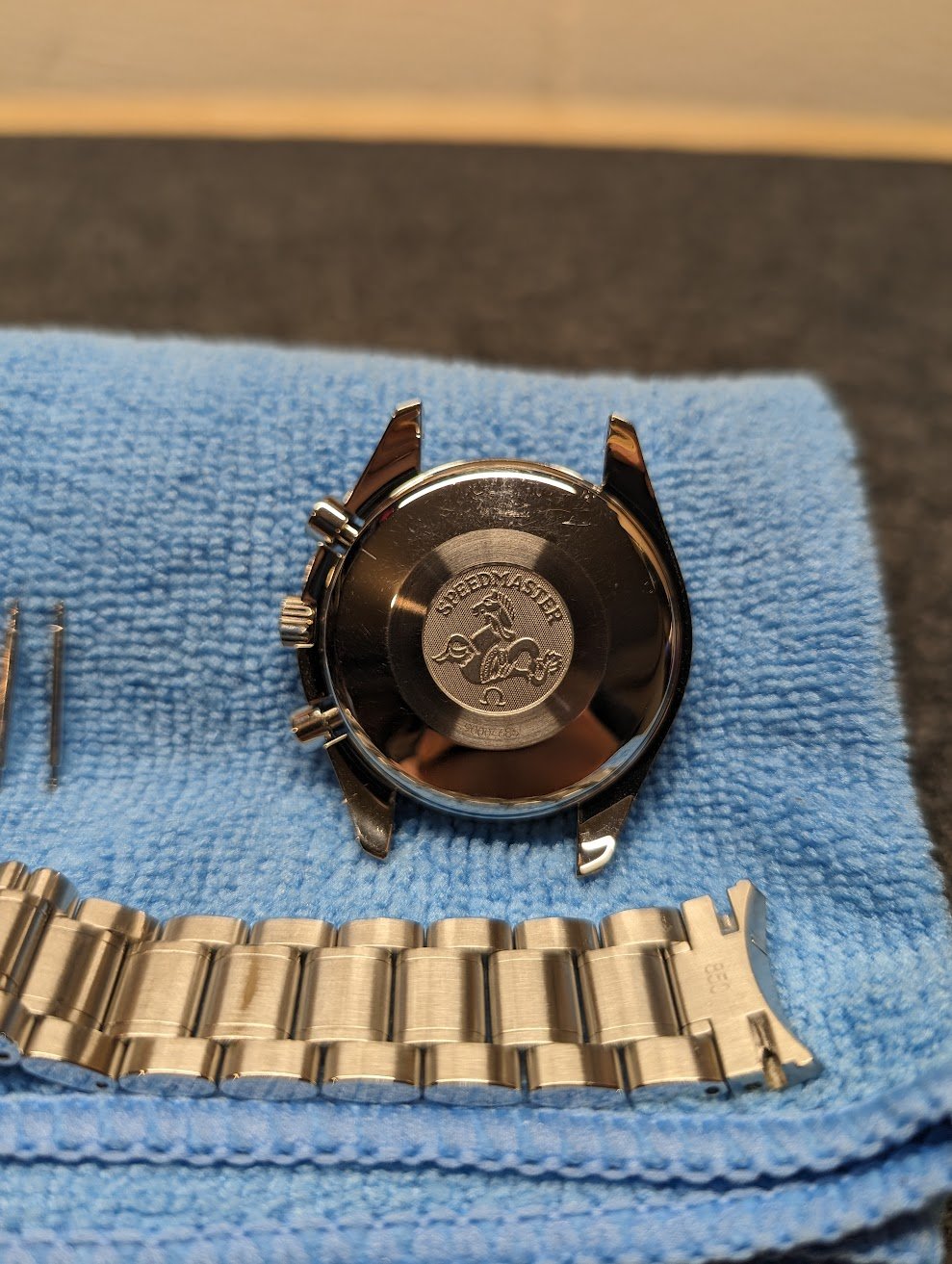 ·Hello OmegaForums! I just entered the world of Omega watches this week after purchasing a Triple Date reduced Speedmaster with beautiful black dial; Ref. 3523.50, off a US-based ebay seller with 100% rep on 650+ transactions. The watch appears to be identical in everything but dial color to the vastly more common silver and blue dial Ref. 3523.30 and 3523.80, respectively. My example has the same caseback design, same crown, same distinctive "machine-like" self-winding mechanism the other 3523s are known for, but with one distinct difference....