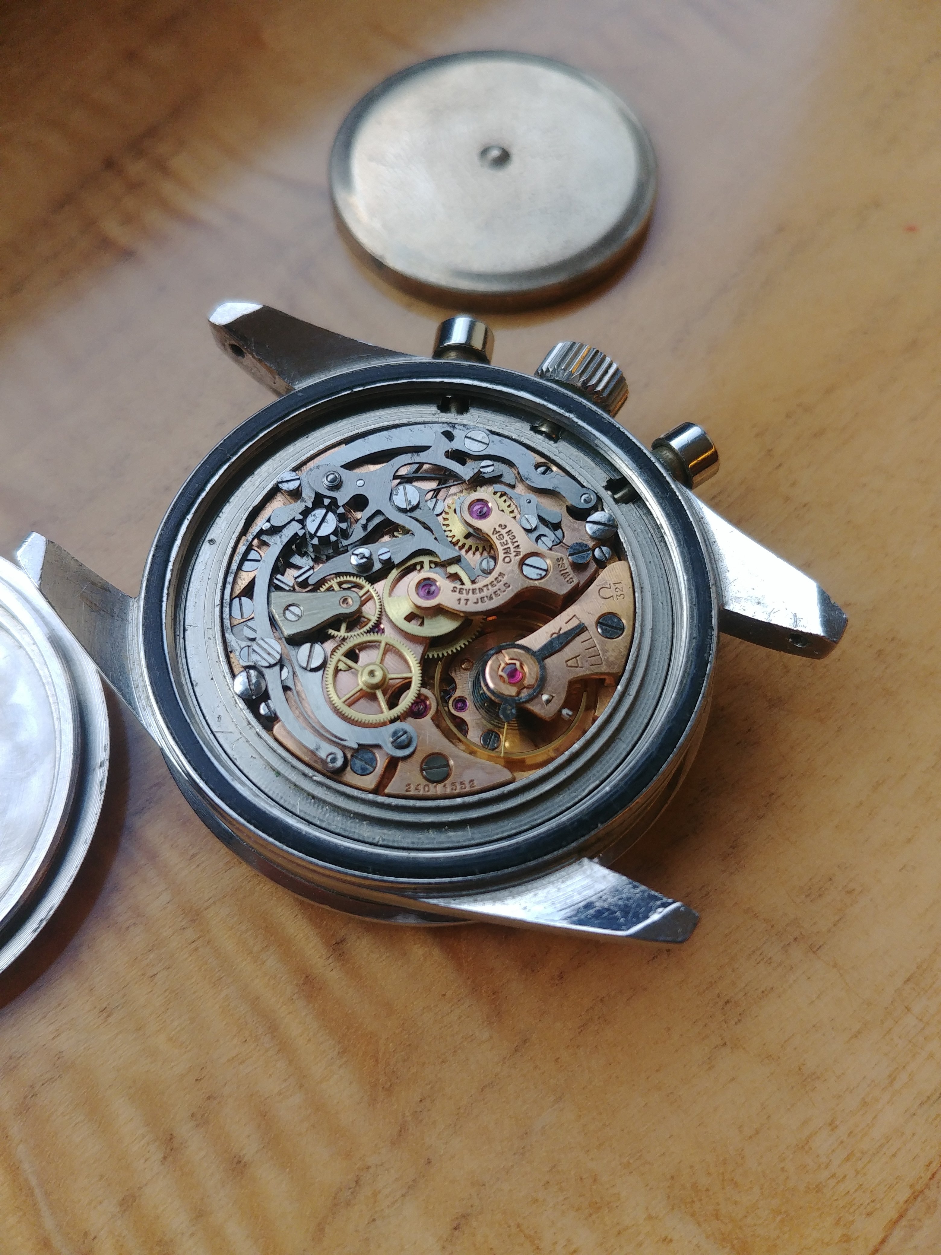 The movement is clean and in full working order with the chronograph functioning smoothly.
