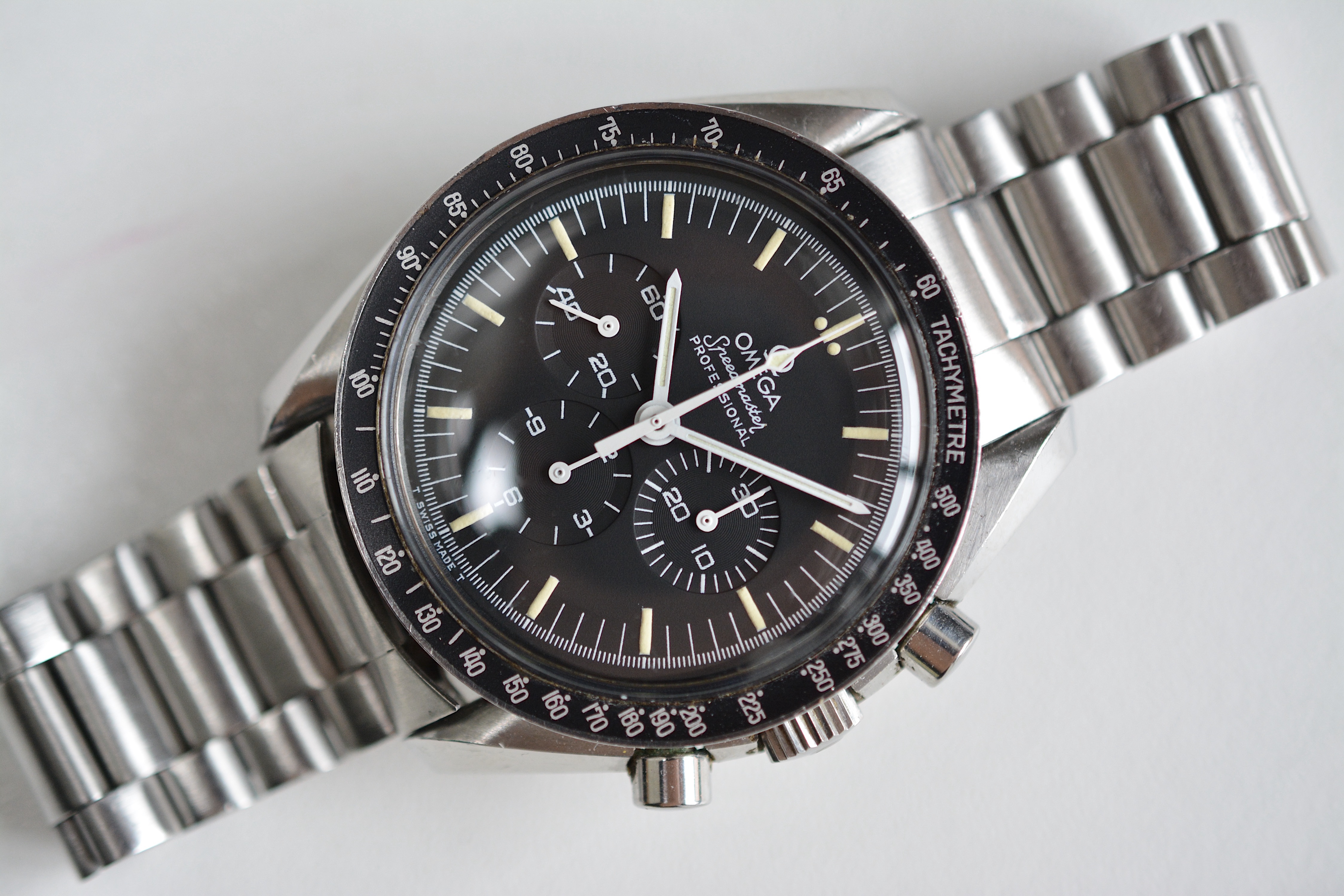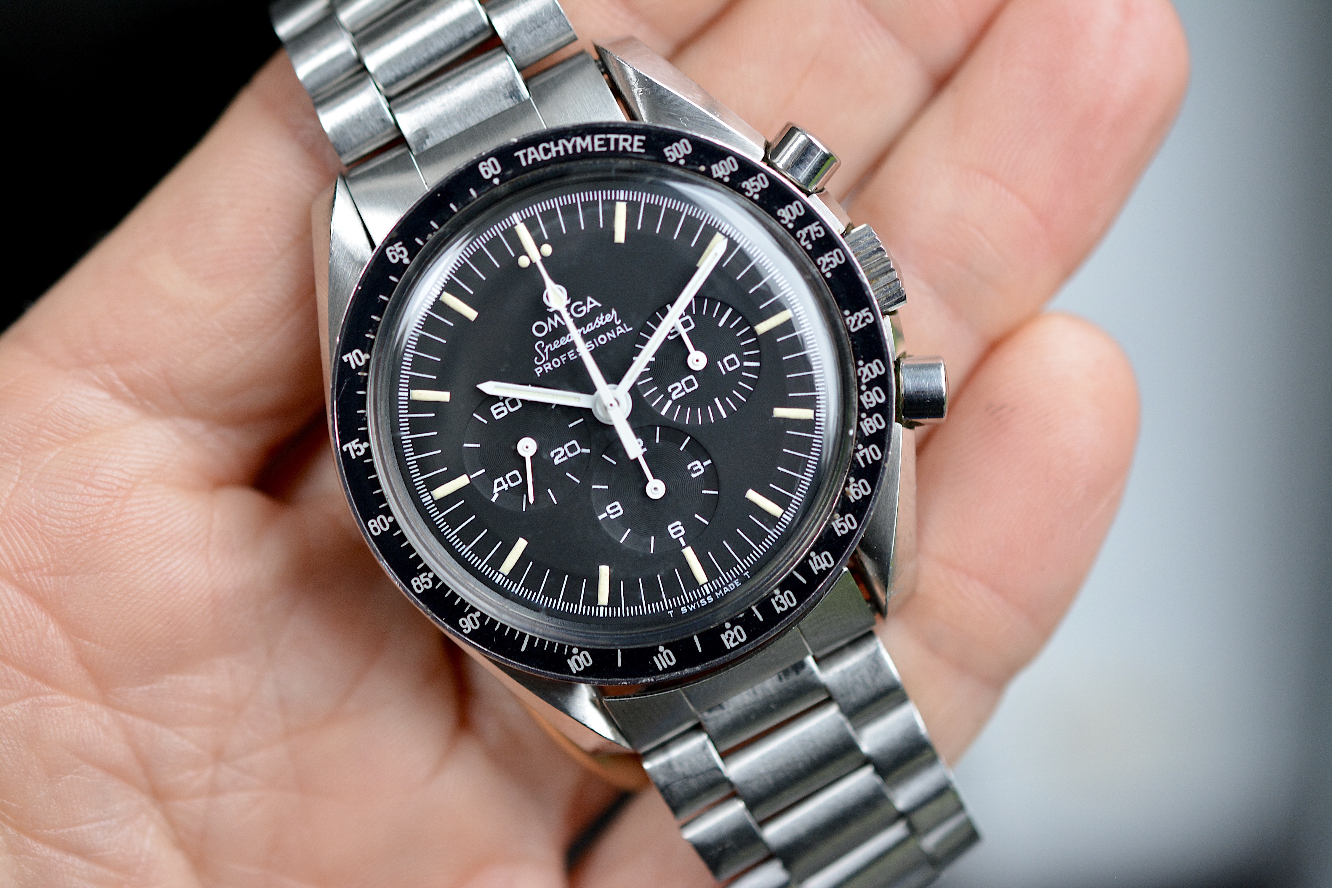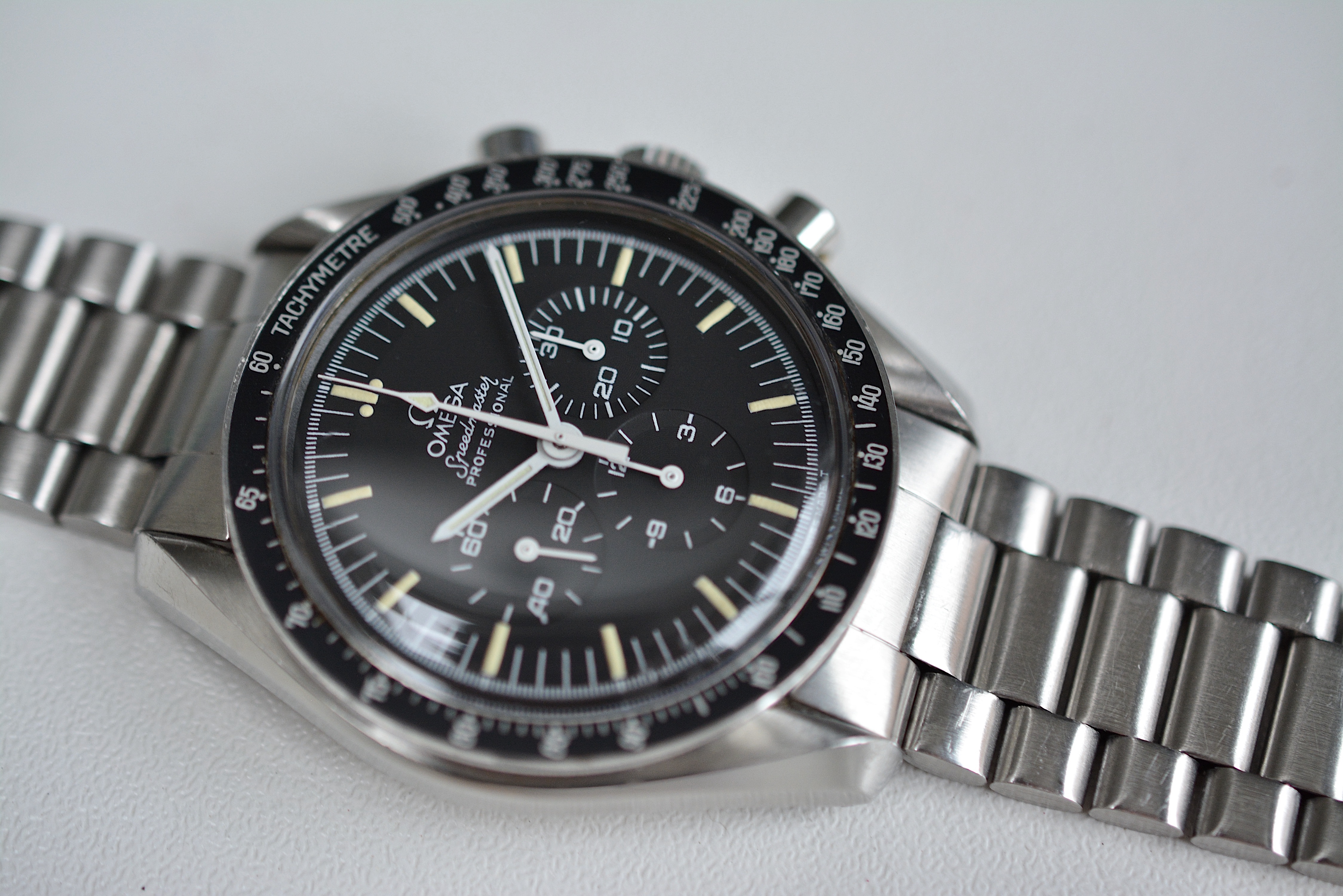 One thing, it's not cheap. But condition has a price. Compare it to other 80s 145.0022 on the market and you'll see the price is not that crazy. Speedmasters from the 90s, nice as they can be, are just much easier to find than an 80s Speedmaster with this type of bracelet.