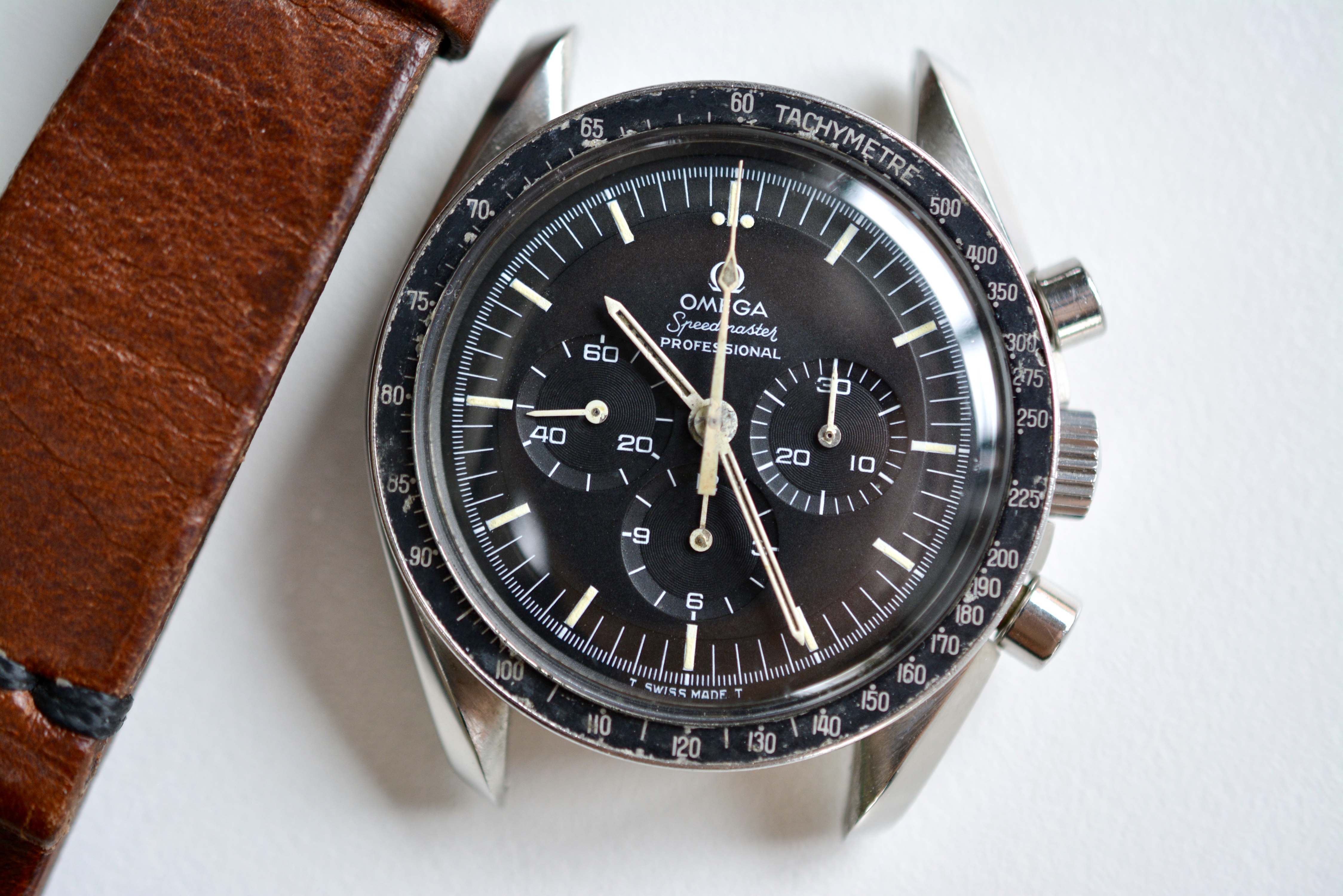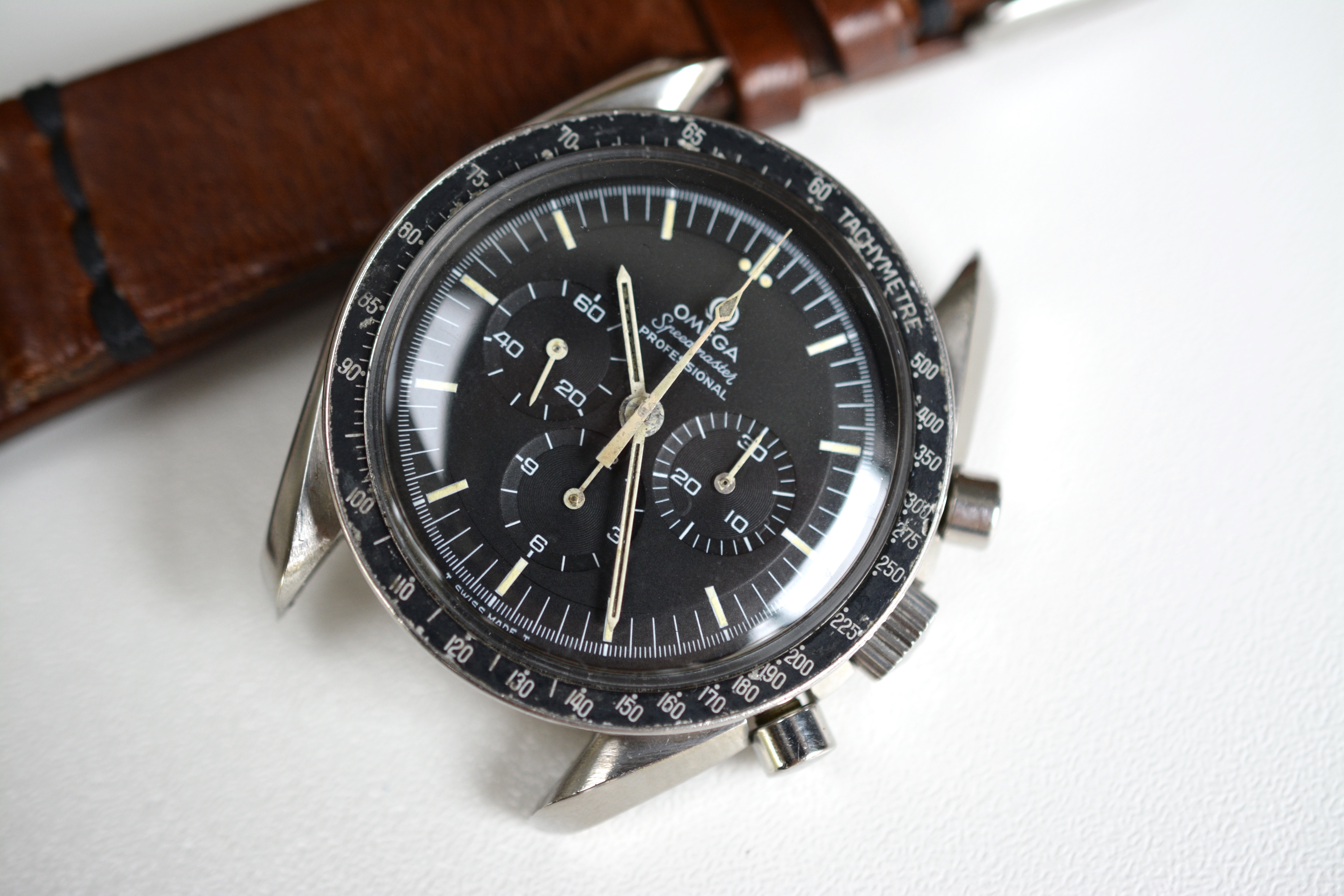 I am offering the watch with a very nice brown leather strap from Bulangandsons ( value €109,90 ). Pricing the watch accordingly to the condition and taken into account the recent service. I think my price is really very competitive. If you don't like it you can make me a fair offer. First to accept the asking price gets the watch.