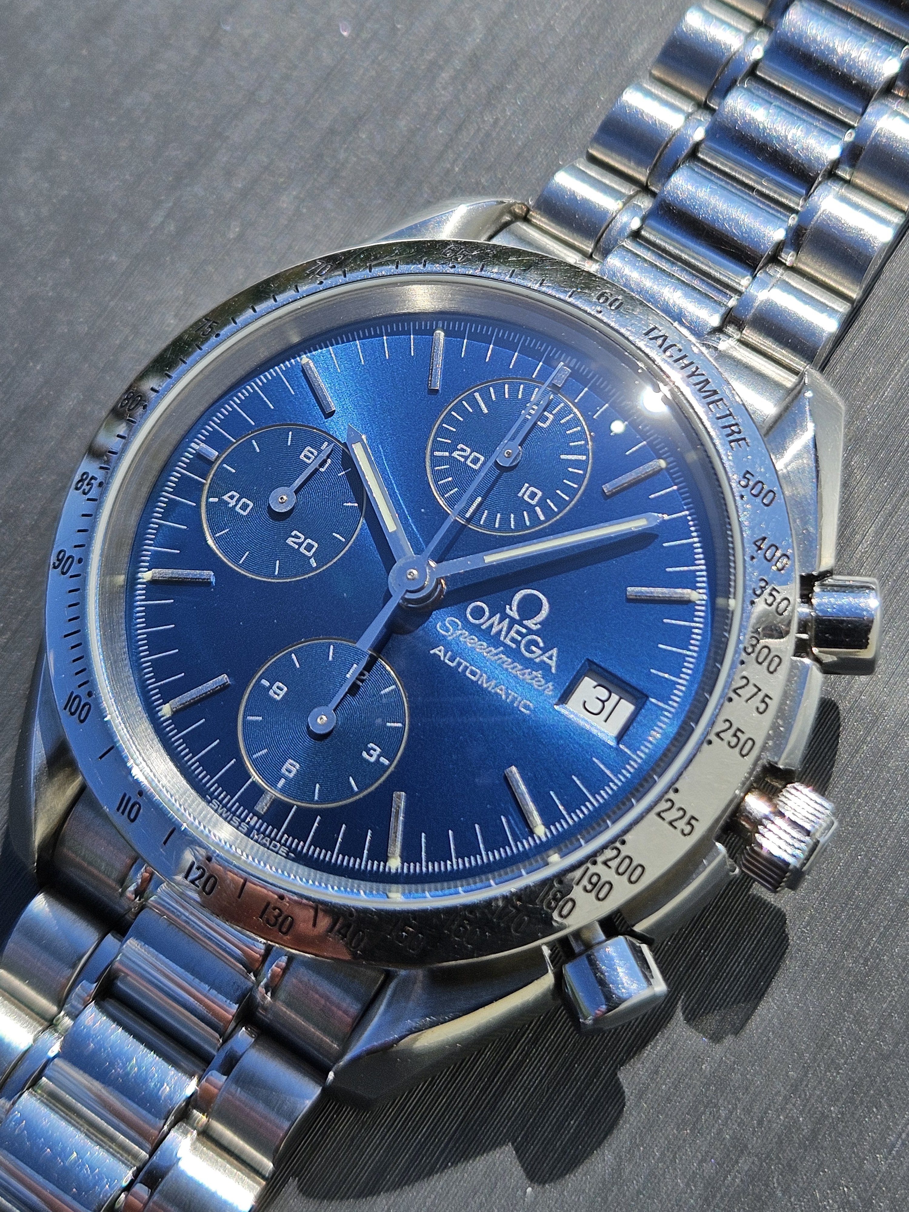 Aesthetic Condition: Blue sunburst dial transitions from a bright, vivid blue in natural light to a more subtle blue in artificial light. All photos are taken with my phone and are unedited. The sapphire crystal is clean with no nicks or scratches. The case, bezel and bracelet are in good condition, with minor signs of wear throughout. Please carefully review the pictures as they provide an accurate representation of the condition.