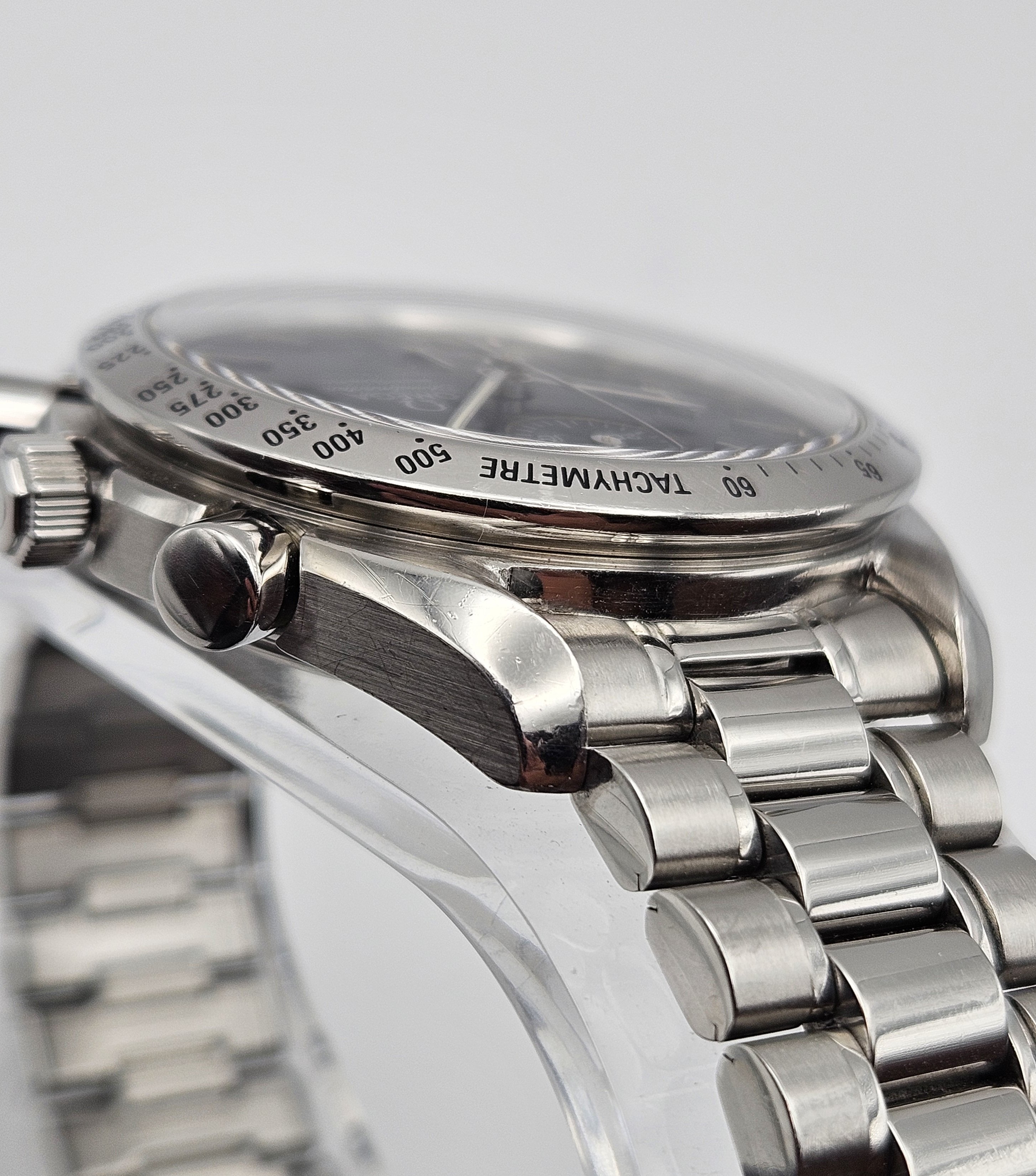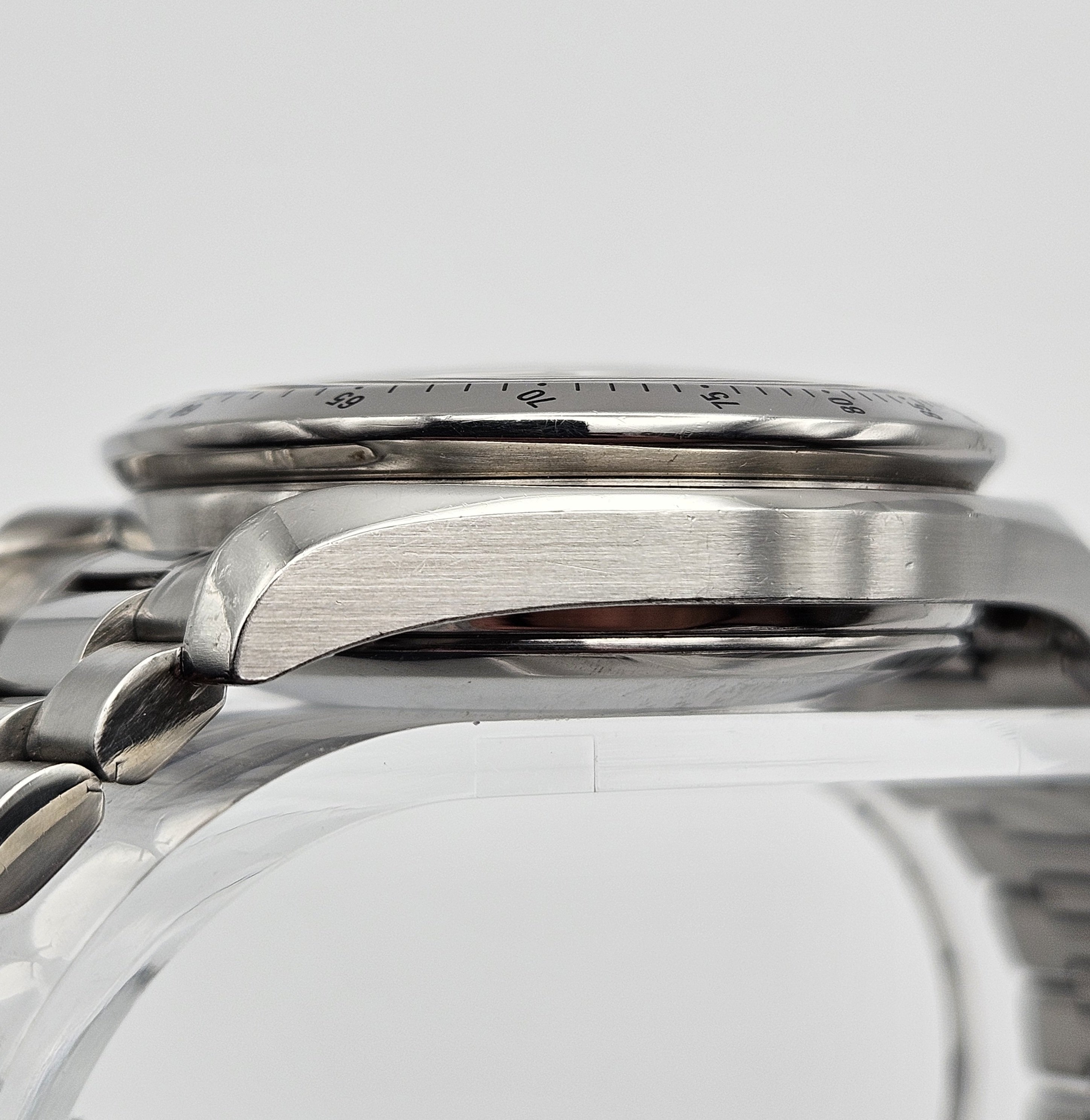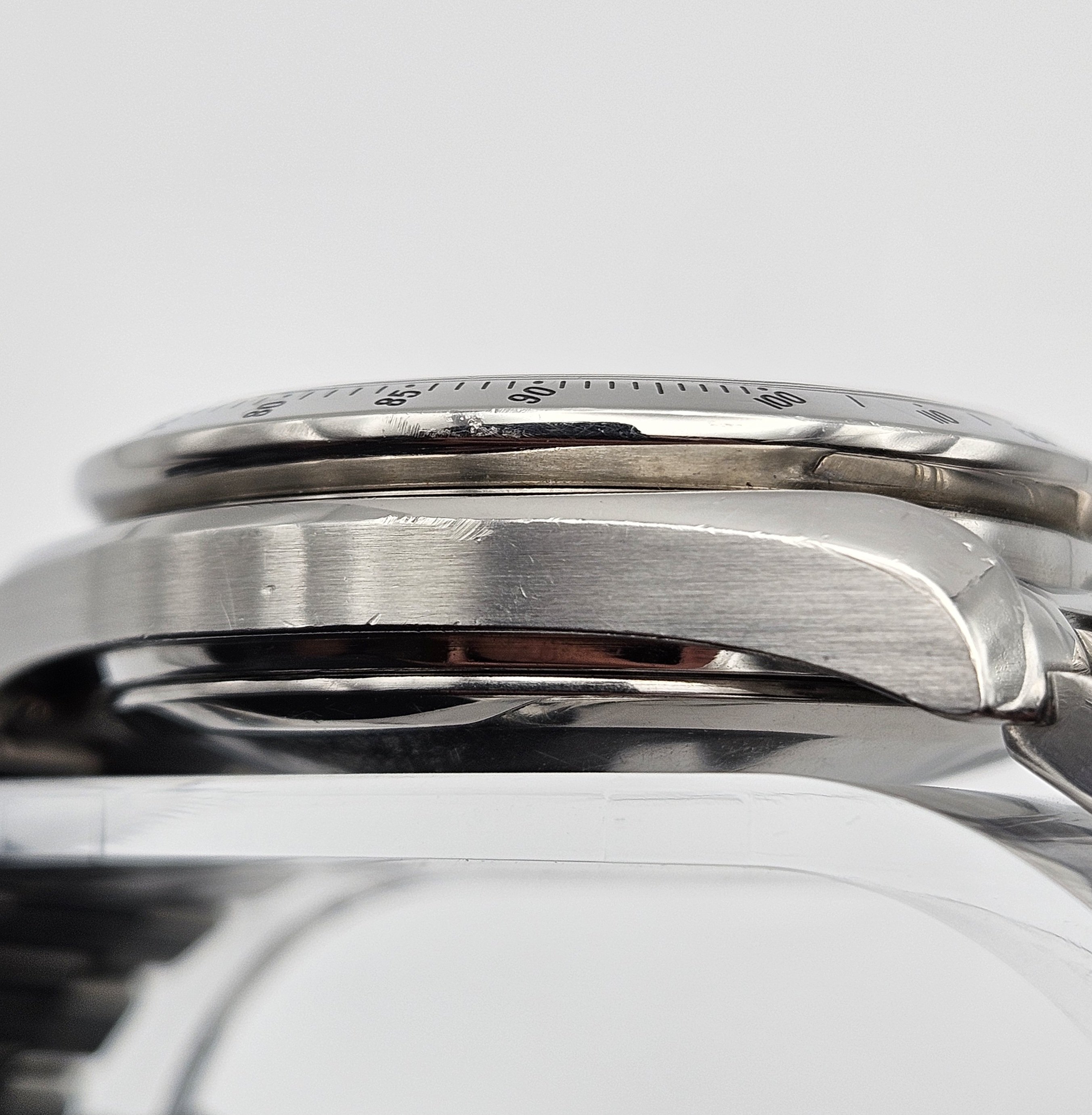 Mechanical Condition: The movement appears to be very healthy, running +2 / sec per day @ 281 degrees amplitude in the dial up position. The crown winds smoothly. Date changes over right at 12:00. Chrono functions (start/stop/reset) are all in good working order.
