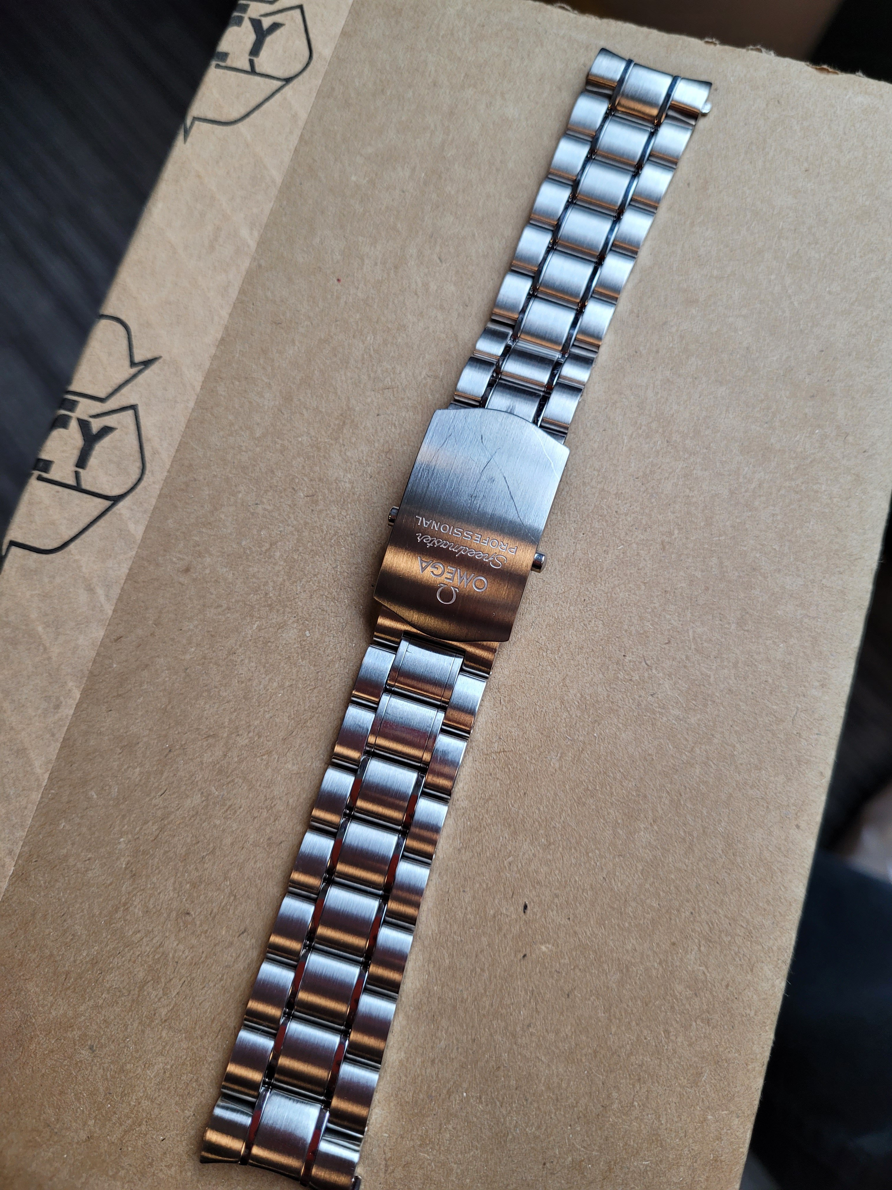 The original steel bracelet is missing. The standard 1998/849 can be found easily. Instead, watch comes with an Omega folding clasp and a signed black Alligator strap. IMHO, it looks way better on that strap.