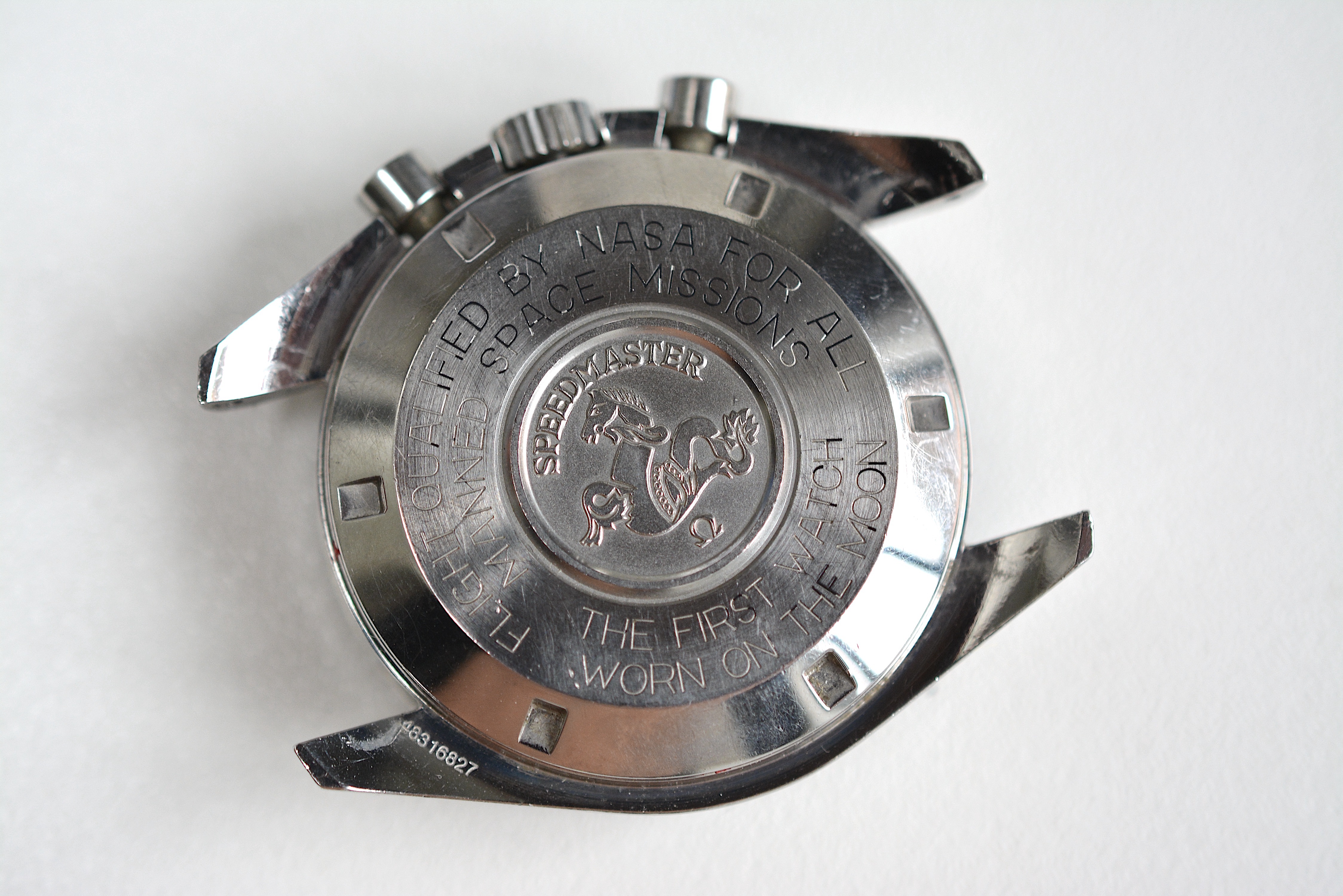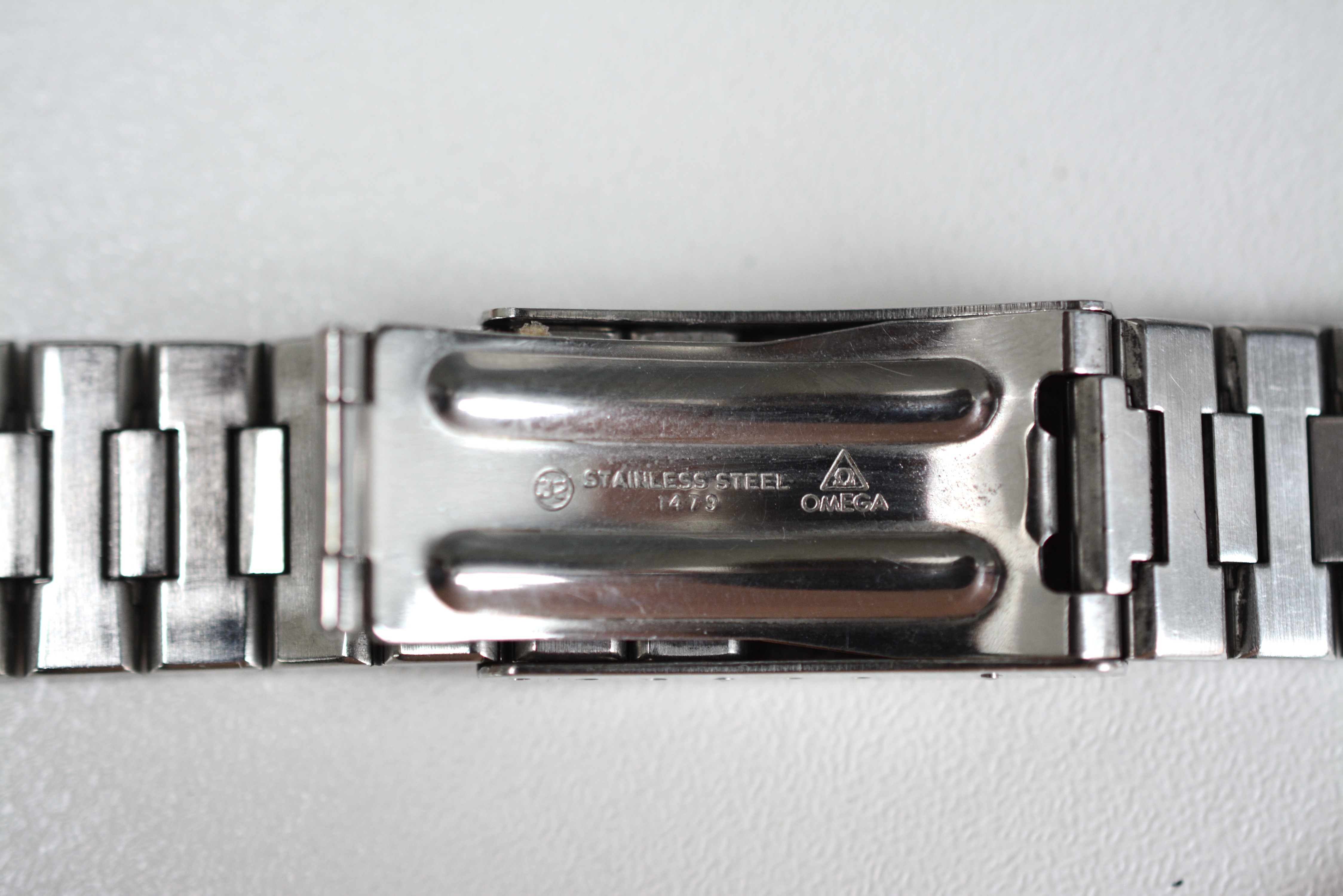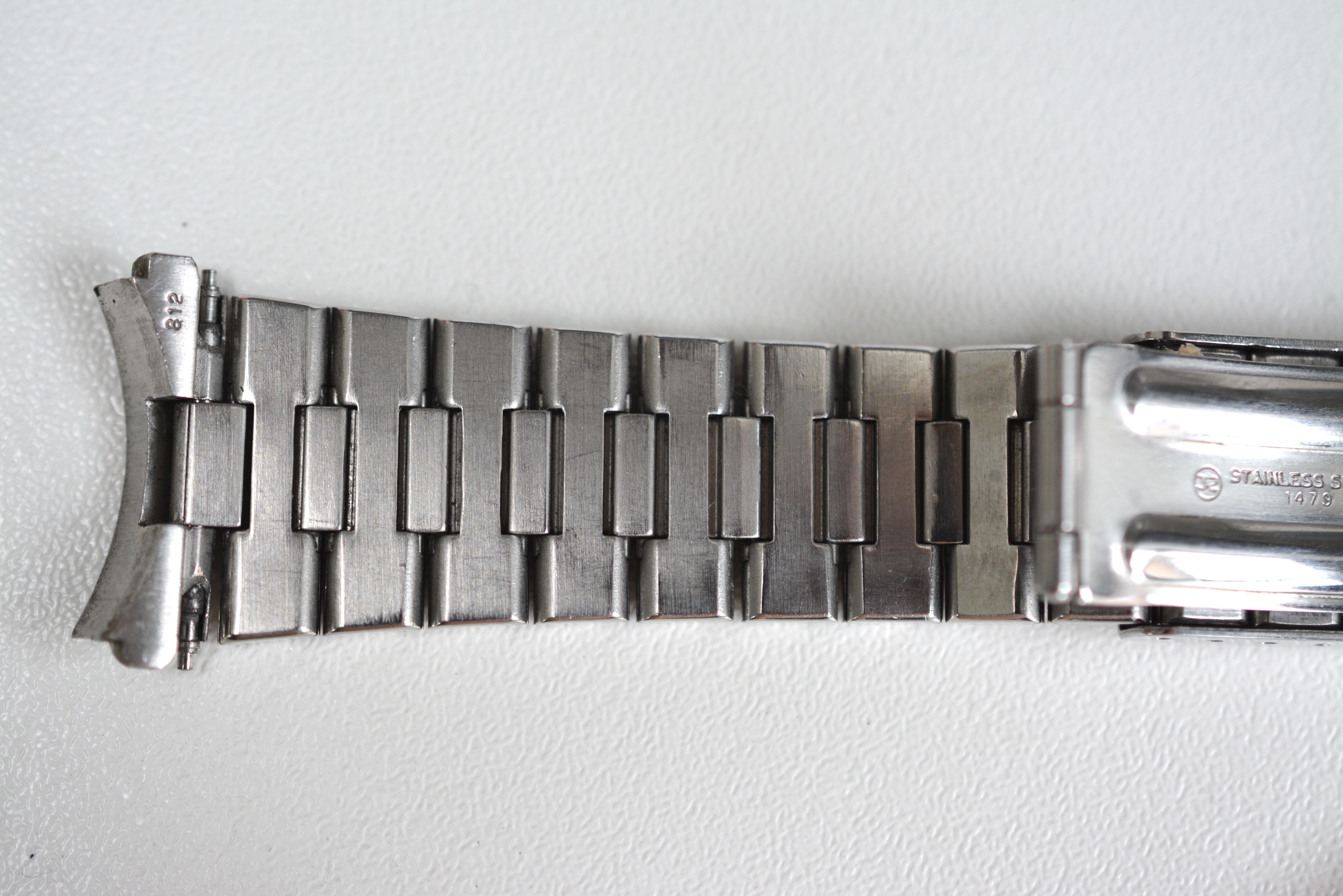 The watch itself and the 1479/812 bracelet are both totally original and in what I personally believe unpolished and never relumed condition. It's not in a "safe queen" condition with several superficial scratches ( no major dents ) in the case and the plexiglas but it's in the condition you'd expect from a watch that has been worn and that was never overhauled. The case-back has no scratches from bad case openings. Some of the black paint in the engravings is missing. You'll see some residue from the red wax seal. Serial number perfectly visible on one of the lugs.