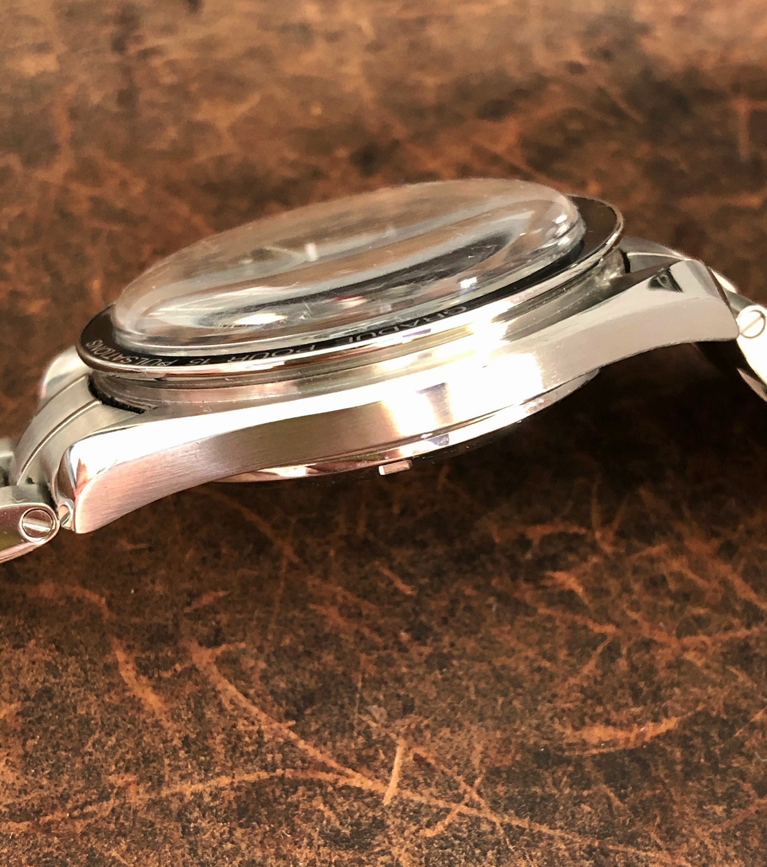 - Omega caliber 861 manual-wind Swiss-made chronograph movement