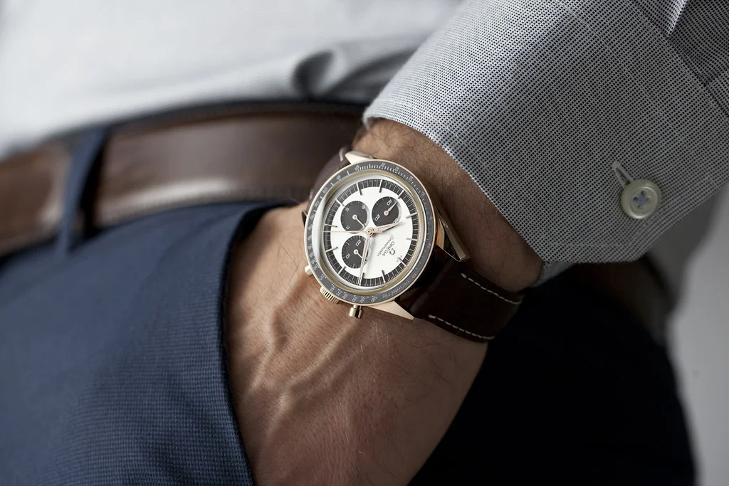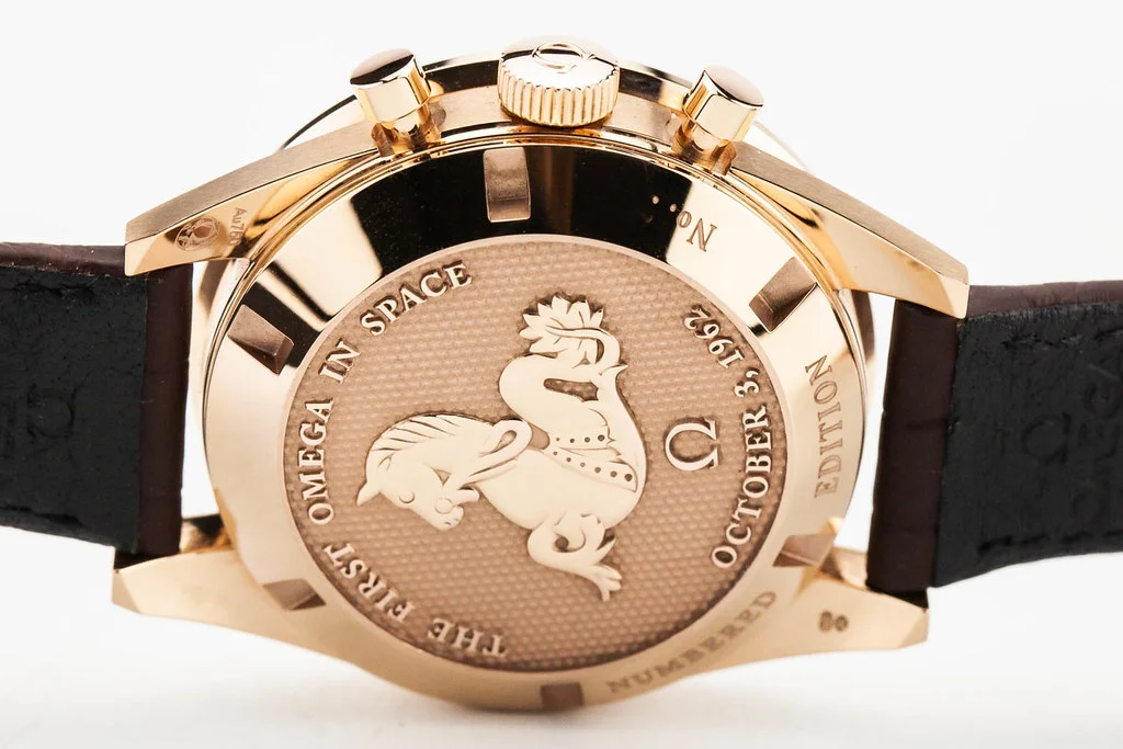 ·Up for sale is an excellent condition Omega Speedmaster Moonwatch First Omega In Space ( FOIS ) Numbered Edition in Sedna Gold 39.7mm Panda Dial on Leather Strap, reference # 311.63.40.30.02.001. It comes complete with all boxes, papers, booklets, hang tag and Omega Warranty Card dated March 2019.