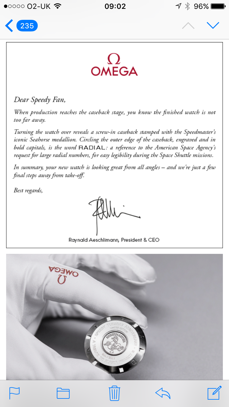 I e-mailed Omega on last week Thursday about changing my delivery from the United Kingdom to South Africa. Received a response today from Arthur Hery confirming that they will change the delivery to SA.
