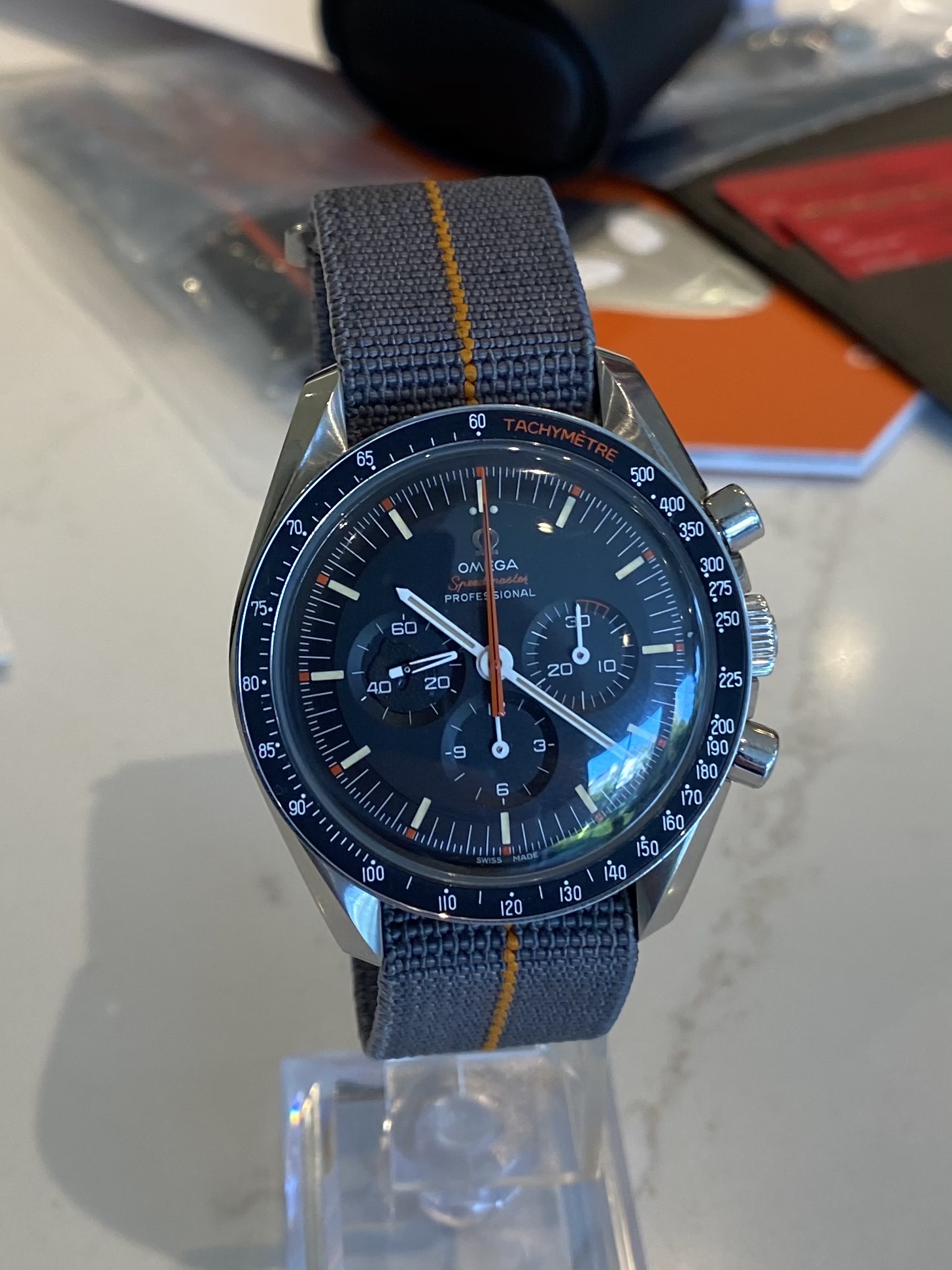 * 3 straps - Erika's Originals grey/orange MN strap & unused Nato + black leather straps that came with the watch