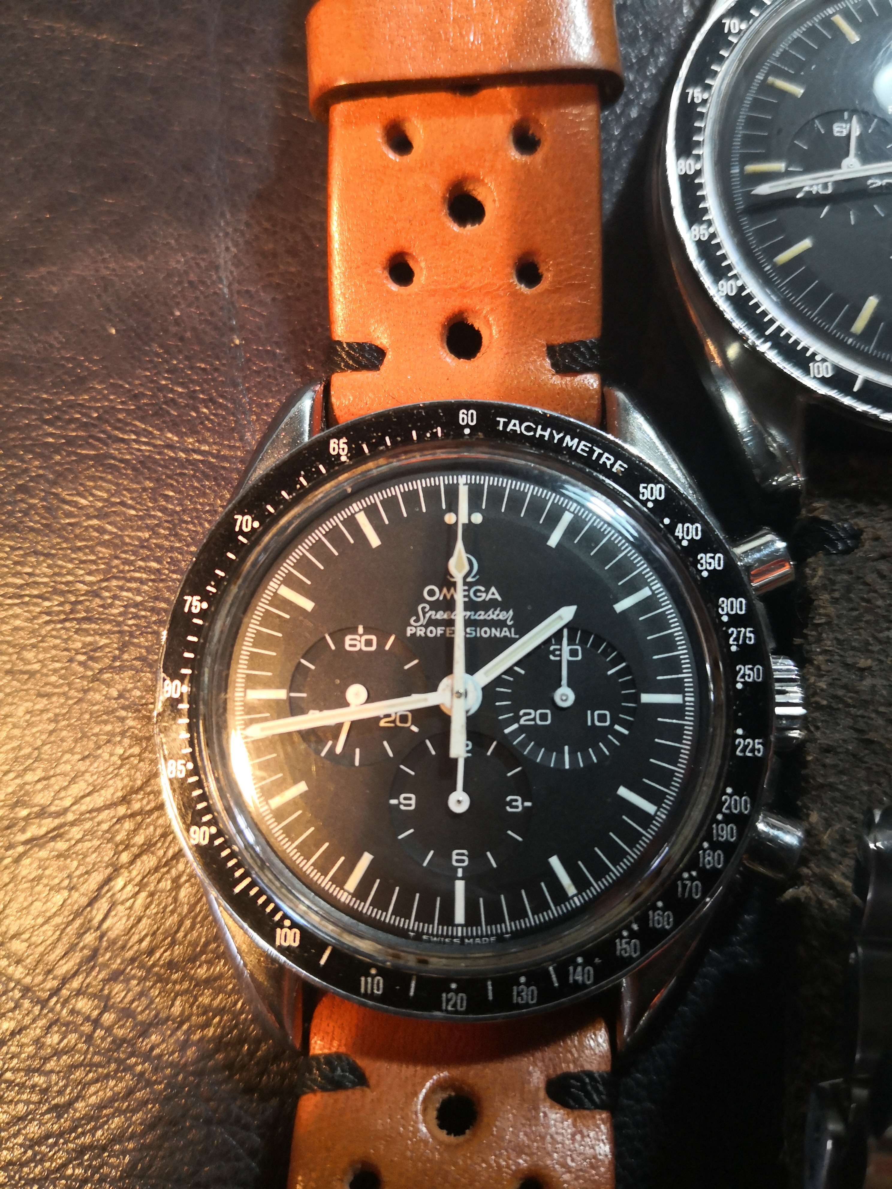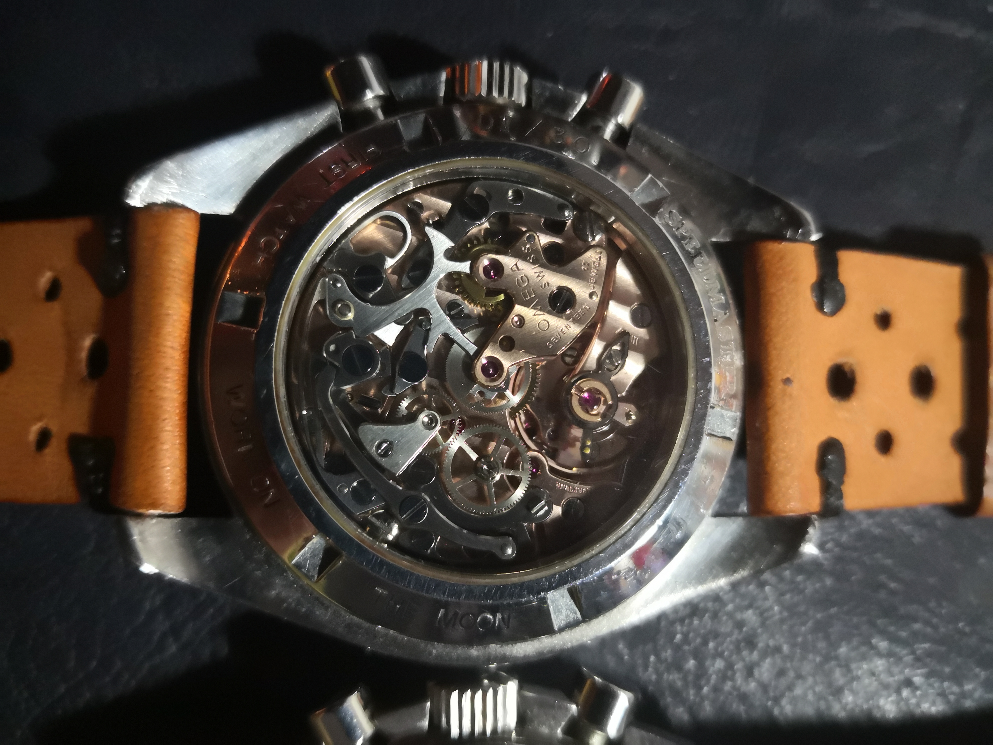 ·In 1985 Omega introduced a small series of its most iconic model to celebrate 20 years of certification of the Speedmaster by NASA, for manned space flights back in 1965, giving the reference ST3450808. The production counted just 1000 pieces, numbered but with no limits shown, made from ‘85 to ‘88, within the serial number range 48169000 to 48169999. The model was the first one with a display back bezel, showing the copper colored caliber 863 movement, with a “Côte de Genève” finishing, and the number,made of 4 digits, was engraved on the display back bezel and between the lugs at 12 o’clock. Another interesting thing about this model is the inscription on the case back, that at one point changed. The first batch of watches, delivered to Germany in the late ‘85 has the following: FIRST WATCH WORN ON THE MOON XXXX SPEEDMASTER. For those there was also a special box and a certificate. The following batches, delivered to other markets, starting from ‘86, acquired the additional inscription APOLLOXI