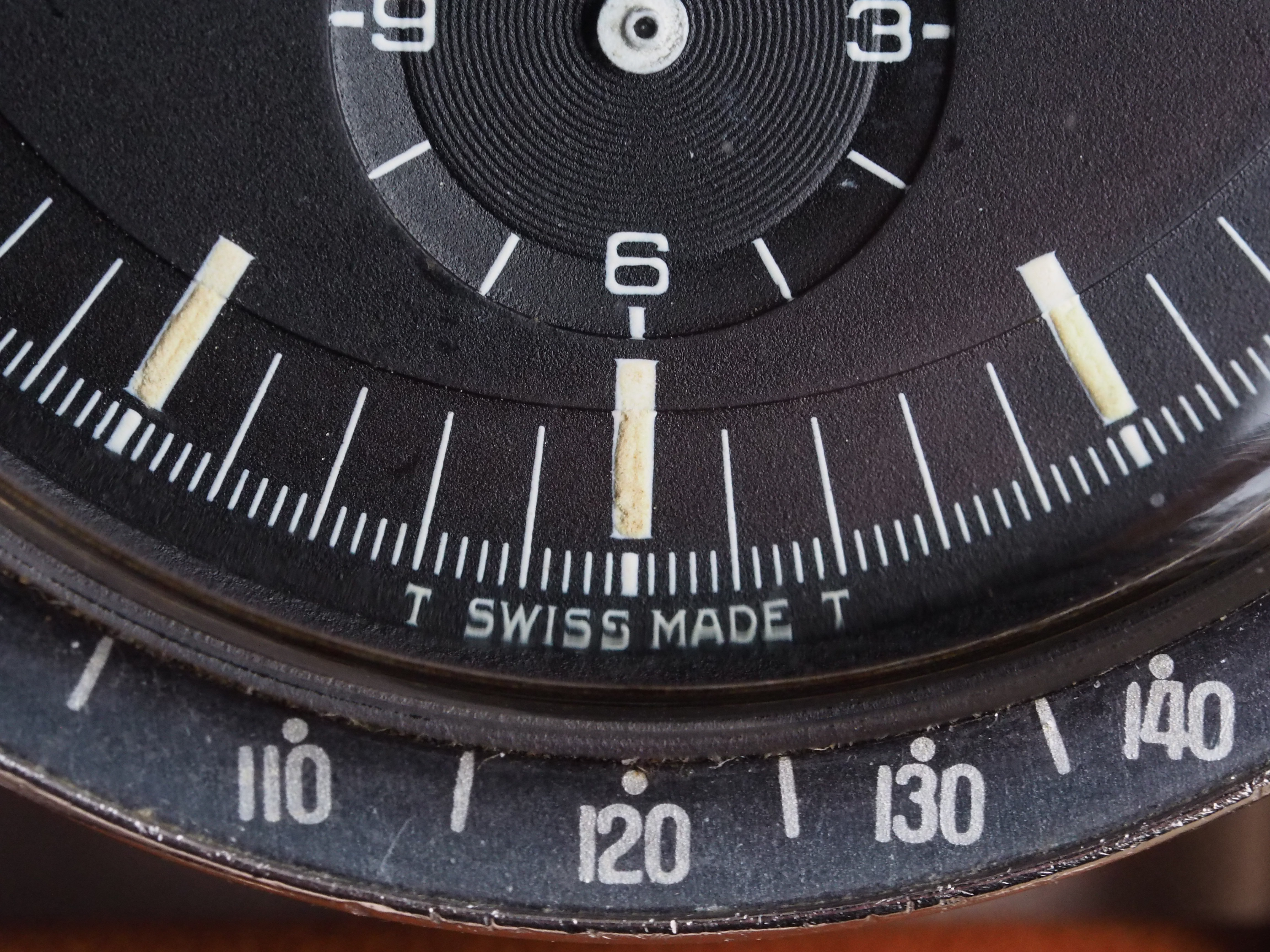 It is still wearing it's original crown, pushers, dial, bezel and caseback.