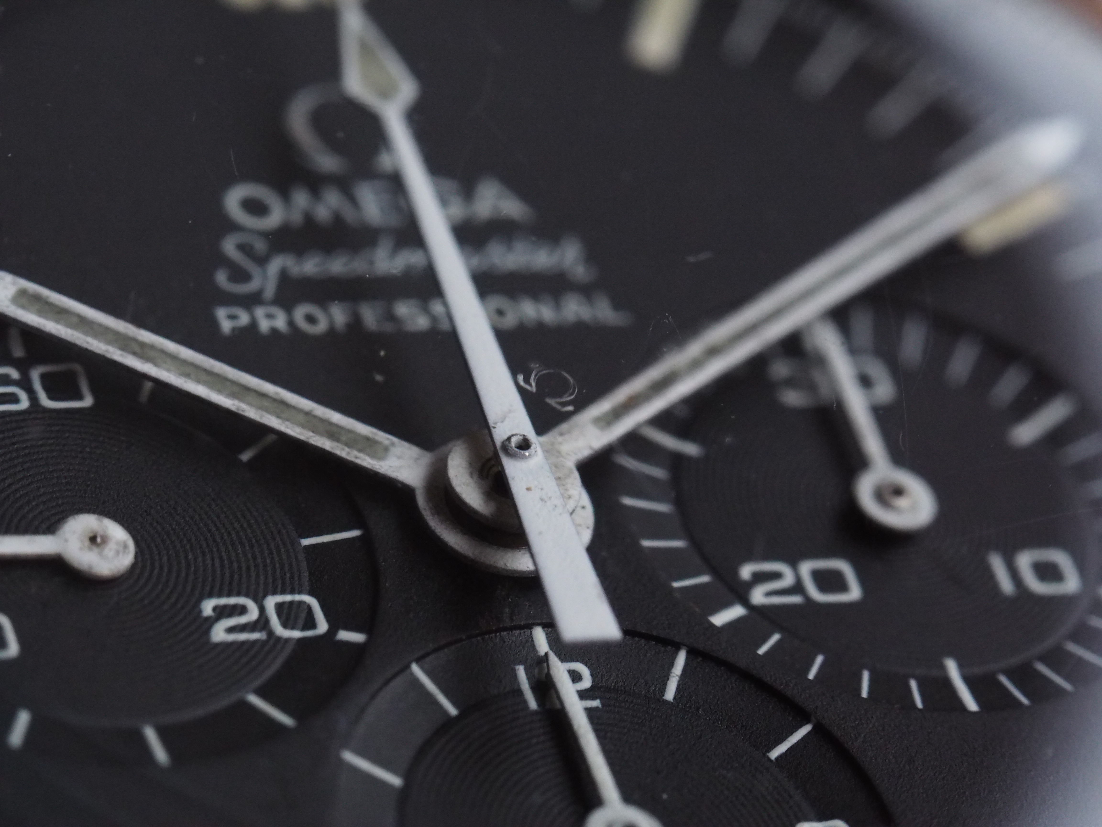 Beautiful step dial and almost unmarked. The lume appears to have been added to on the lower part of the step with Tritium. The subdial hands are original however the hour, minute and chrono seconds hands are service replacements that I have aged to match, see photos.