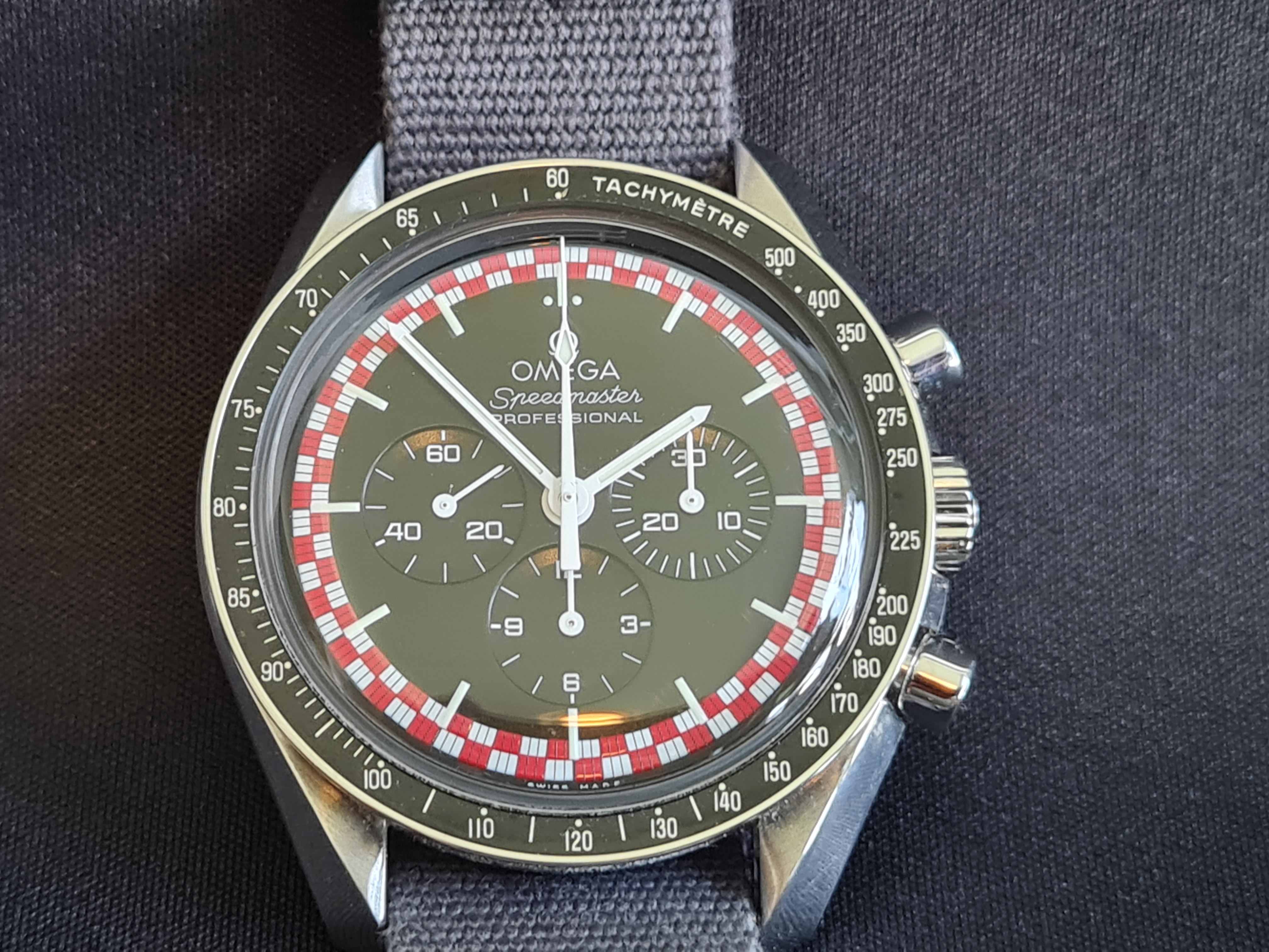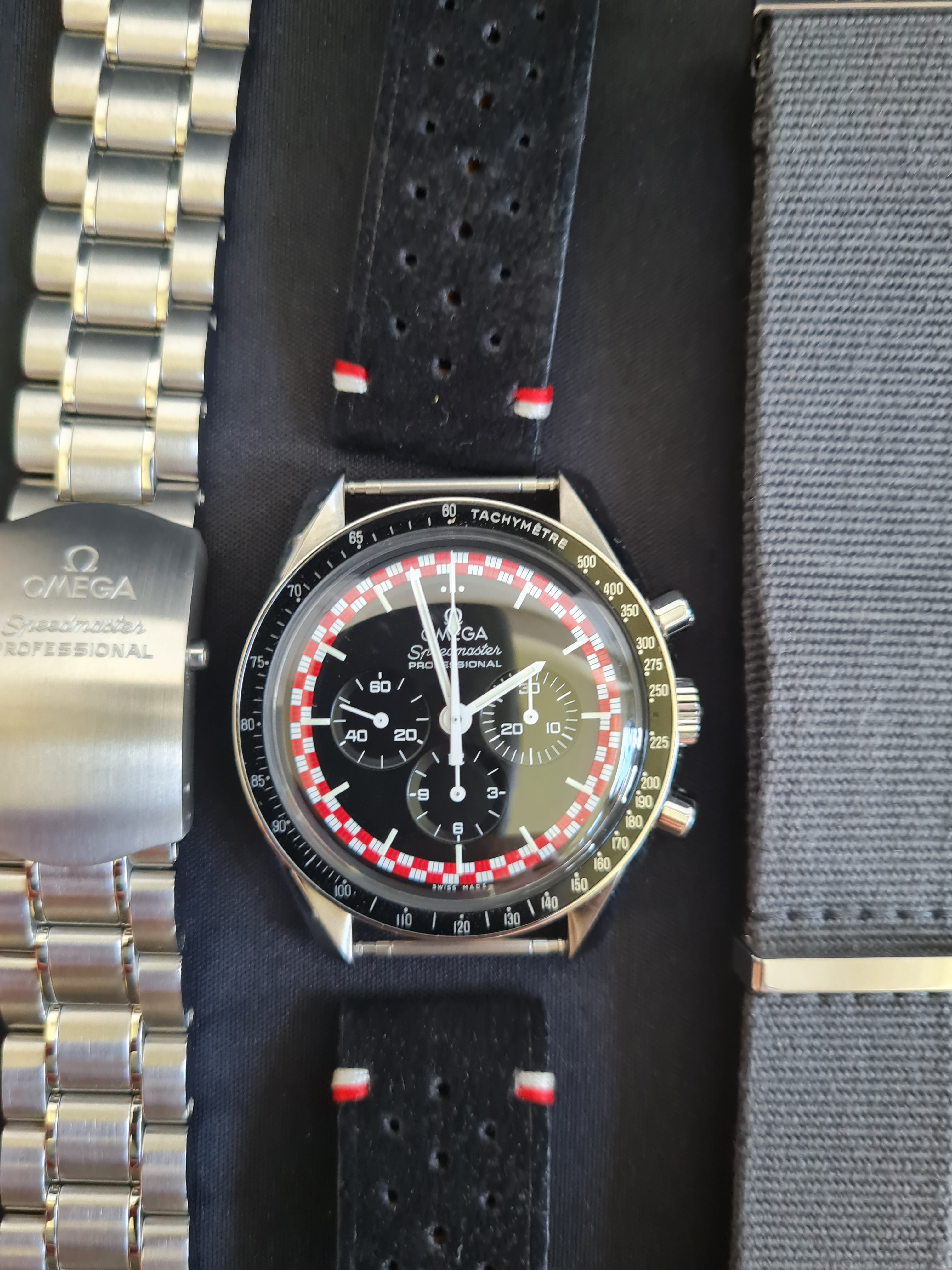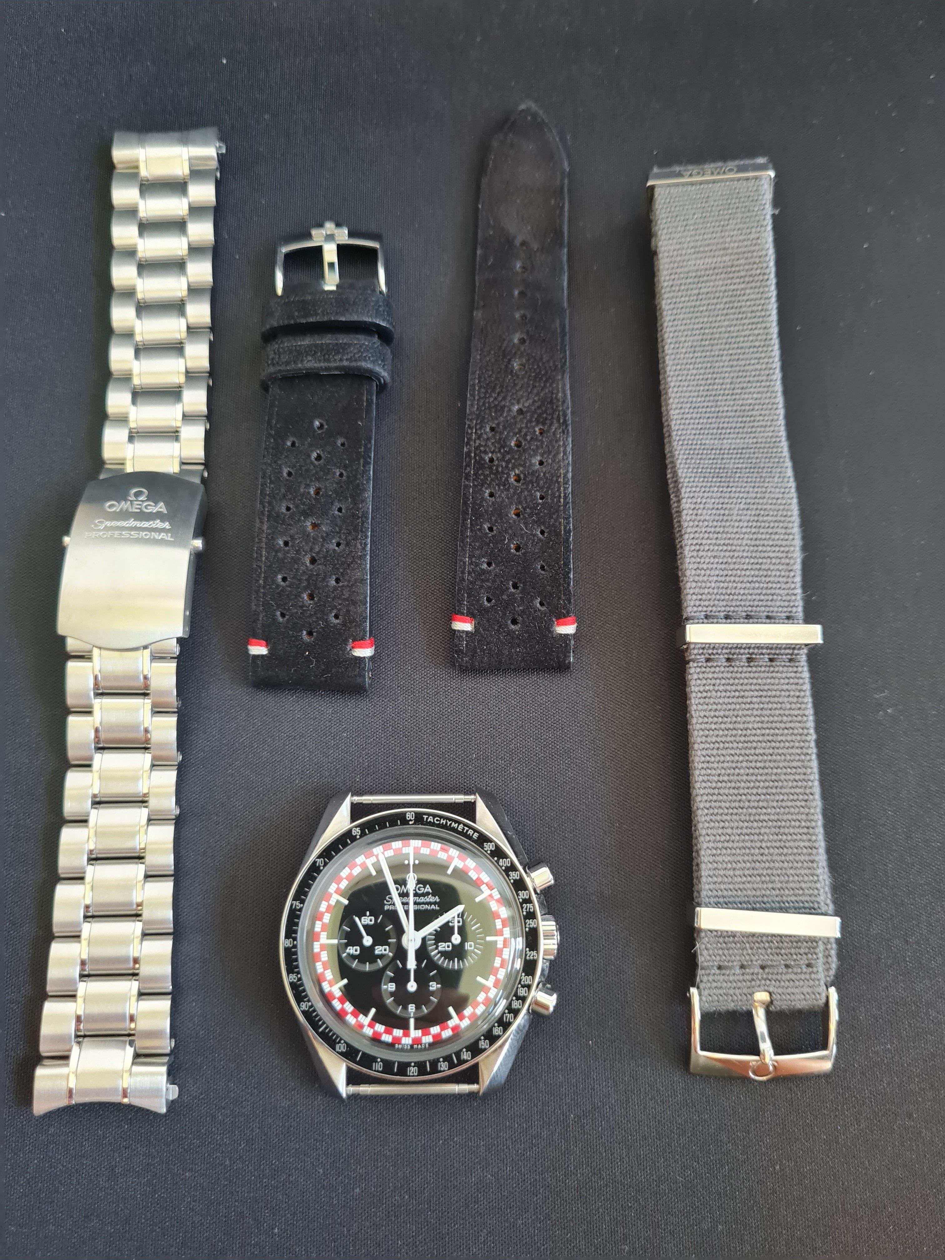 The watch is in very good condition, as I treated it catefully and used to wear for more special occasions. The bracelet (included) is in mint condition as I removed it and wore it only on an original grey Omega Nato strap (included) or on the custom made black suede strap (also included) made by one of the forum fellows 😀
