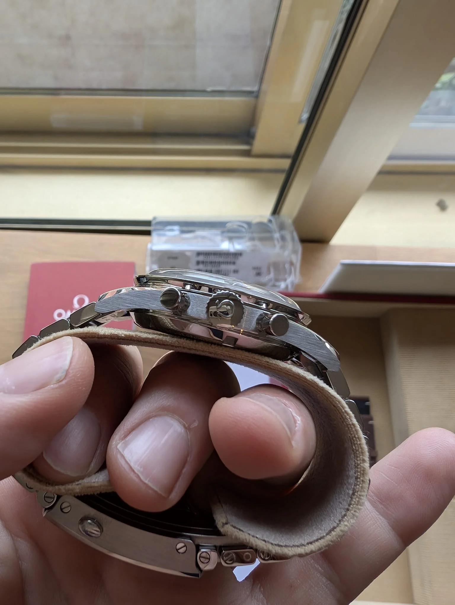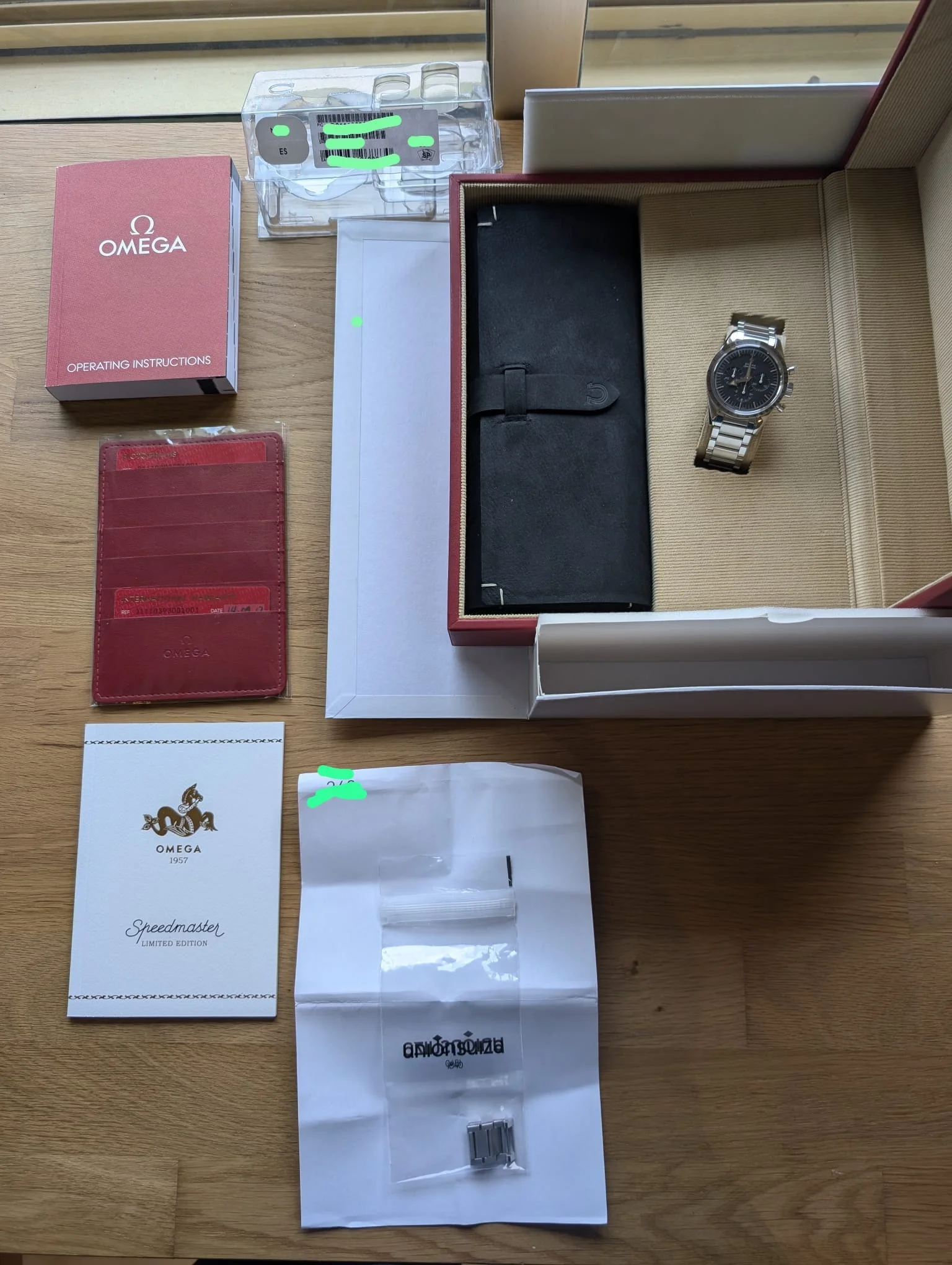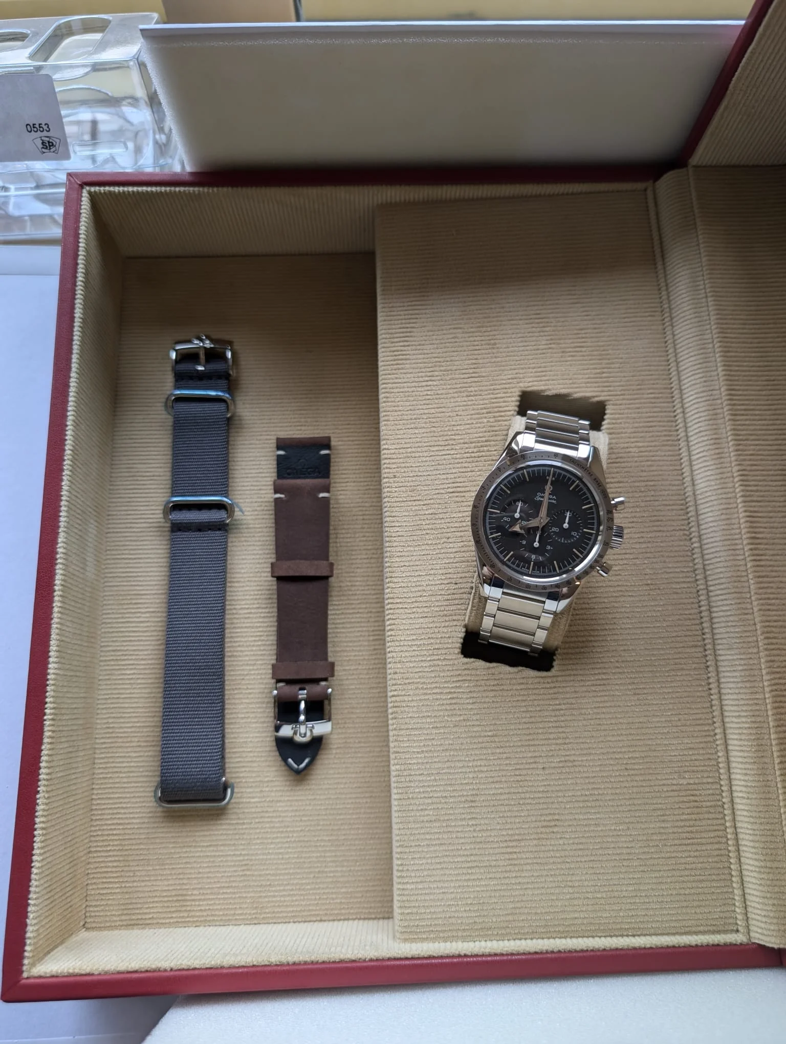 Stickers still present at caseback and it also has the protective foil on the NATO strap. Furthermore full set including warranty card and original purchase invoice. Added bonus; the watch was limited to 3557 pieces and comes with a very nice 3 digit number.