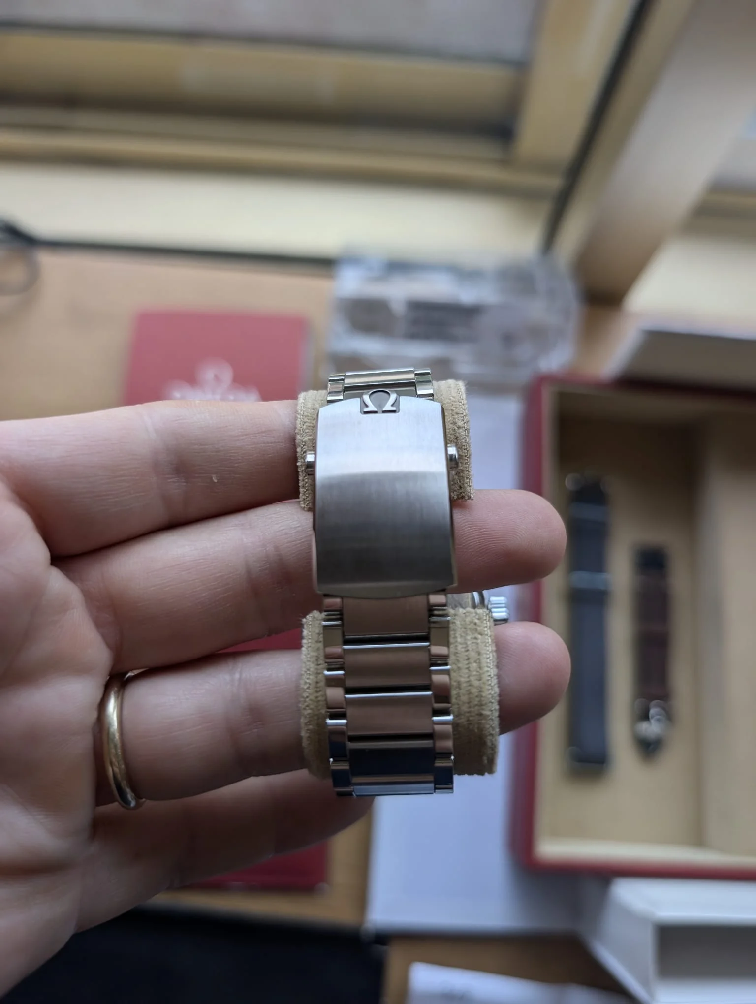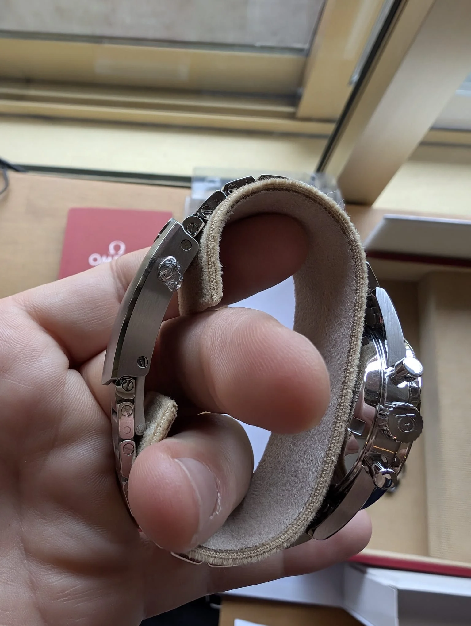 I had never seen this watch up until buying it. I've worn it only in house for a few short periods of time, but never fell in love with it. The watch was sized at an OB, obviously all pieces of bracelet included. I cannot detect any scratches or dings, for me it feels like a new watch.