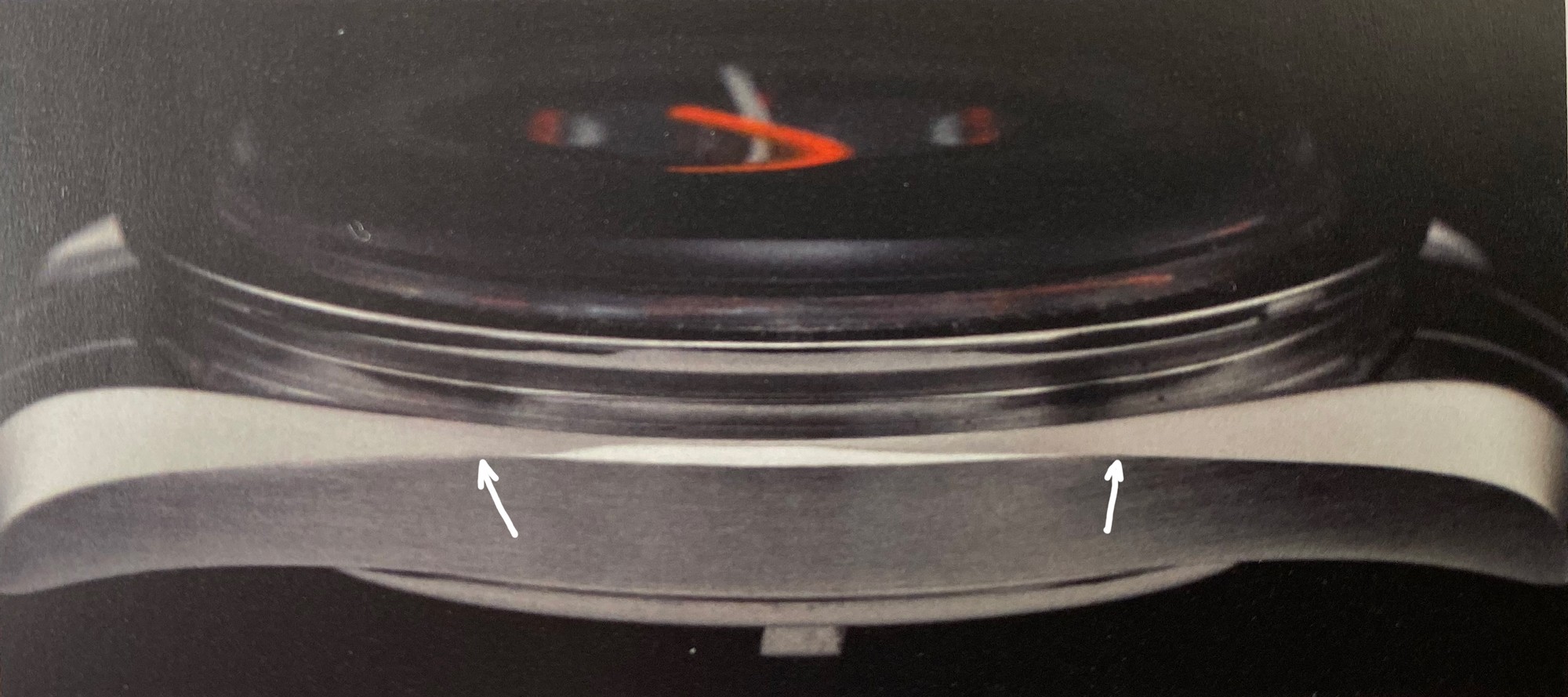The side profile of the modern Speedmaster Professional cased does not have that round sweeping curve as the vintage ones did.