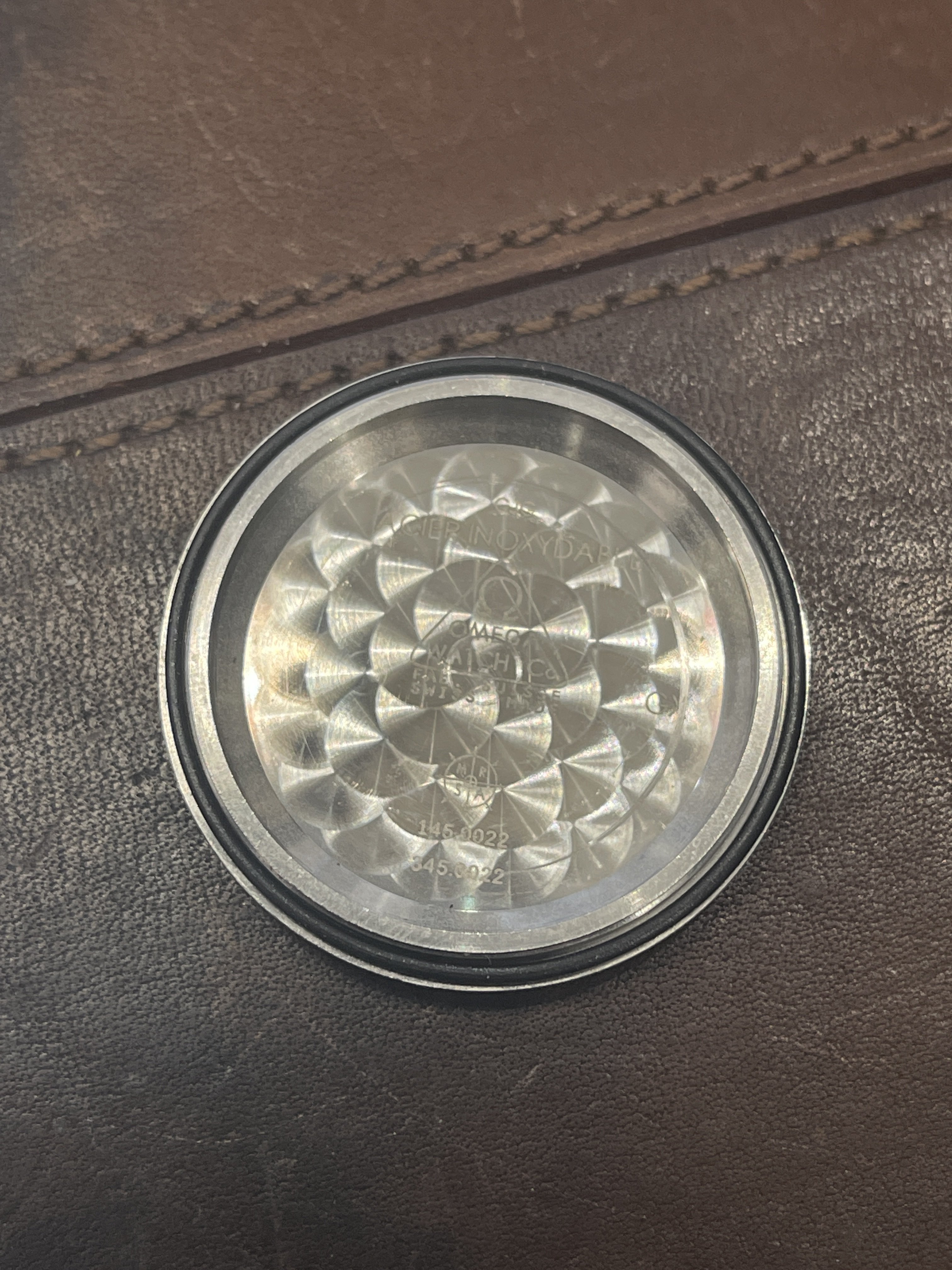 Case - Service case that has been worn, so it shows scratches and marks as pictured. The bezel is an Omega service part that has a small dent between "75" and "80."