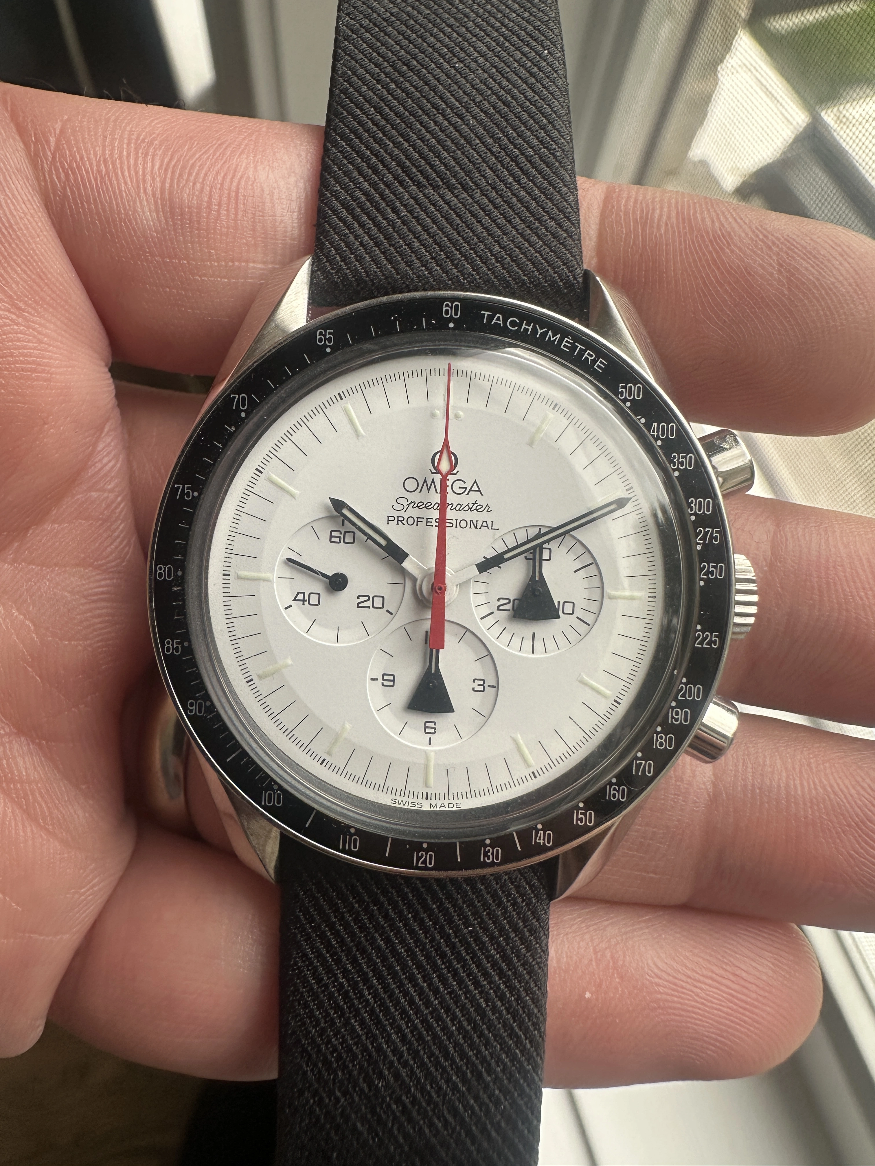 ·Up for grabs is a Speedmaster Project Alaska mod, which is one you don't see everyday. This was worn and the case isn't mint, so please read the description/pics. I purchased the dial and hands from a seller in Switzerland and my watchmaker put it together.