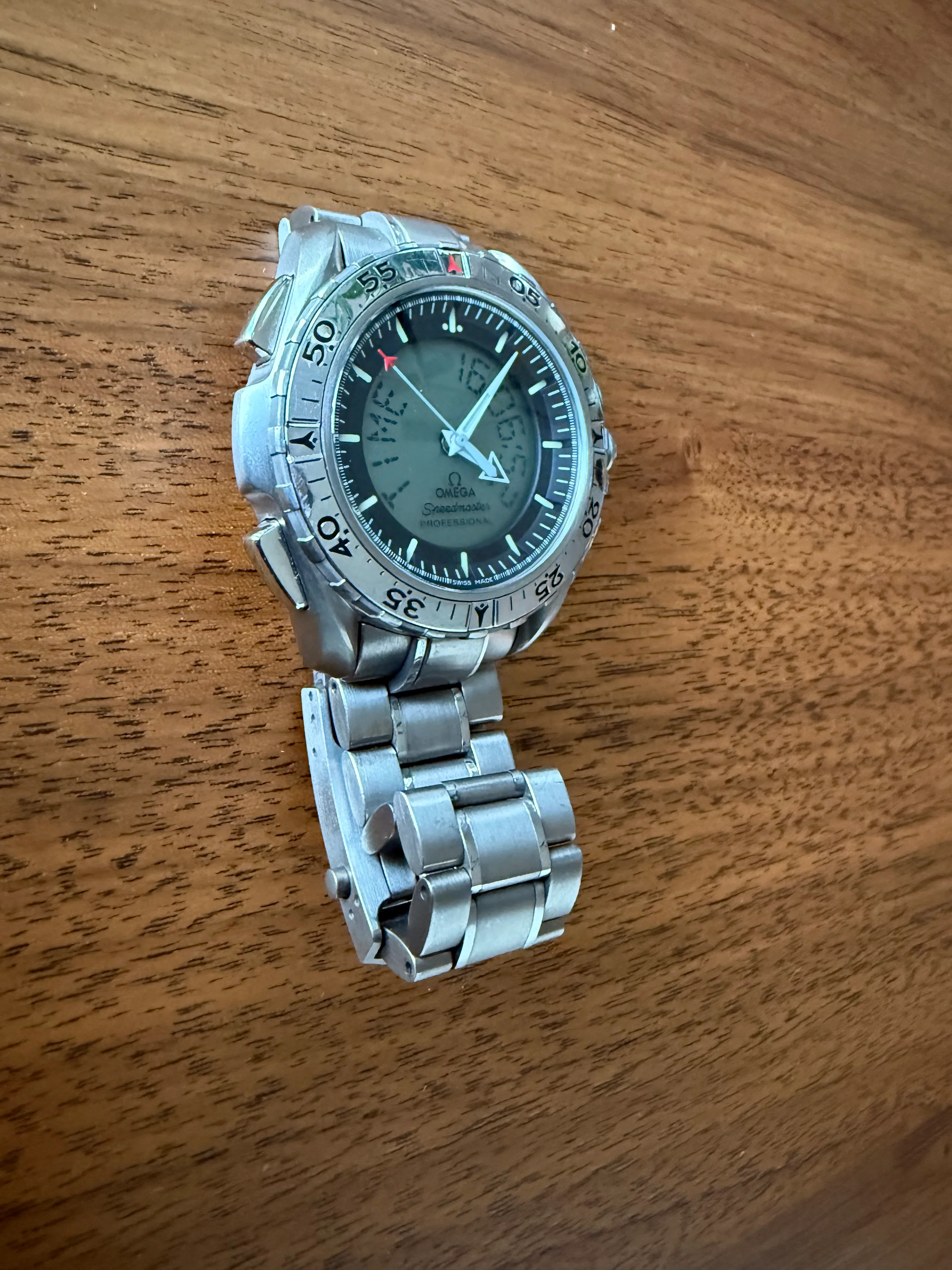 I'll add that if anyone is hesitating because of the size, this watch wears significantly smaller than its official dimensions. Visually, I'd say it's comparable to a thick Speedy Reduced. I generally prefer 36-37mm watches, but have no problems wearing my X-33 gen. 1, albeit on a single pass strap instead of a bracelet.