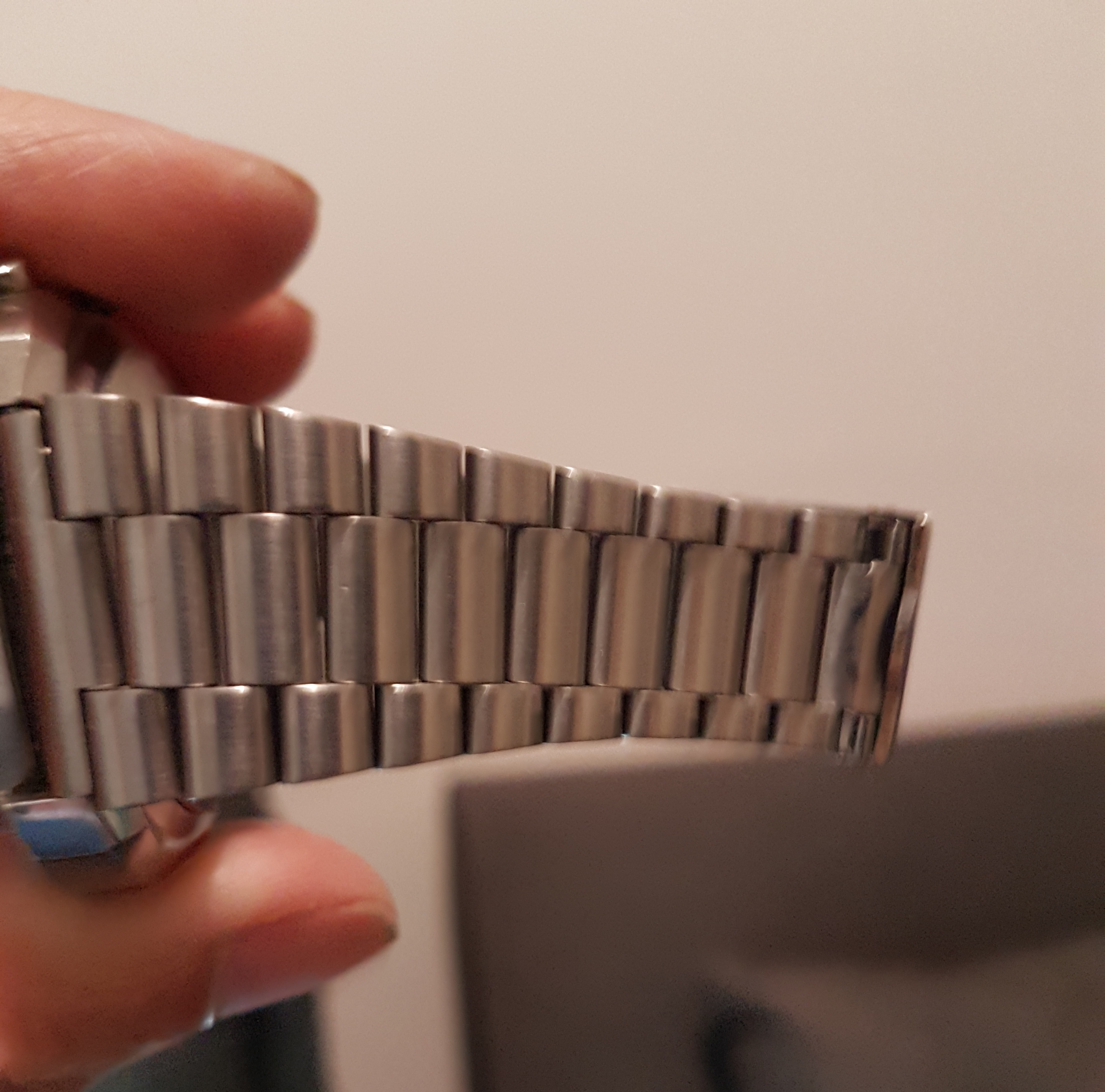 Dating from 1975 and originally supplied in Switzerland, this came to me without bracelet or strap. I sourced a new genuine, correct bracelet (now £300 alone) which is included and it's not been a daily wearer by any means so it's as tight as it'll ever be. It fits my 6.75" wrist perfectly, on about halfway through the microadjust and comes with 3 spare links. It should be good for at least 8-8.25"