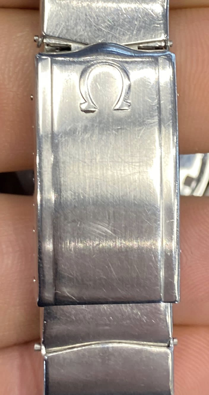 The picture above is the clasp on the watch, it doesn’t have the same shape to it as the lobster links, it doesn’t look as long, when opened up it also doesn’t have the reference 1212/203 and it doesn’t have the box around the Omega logo.