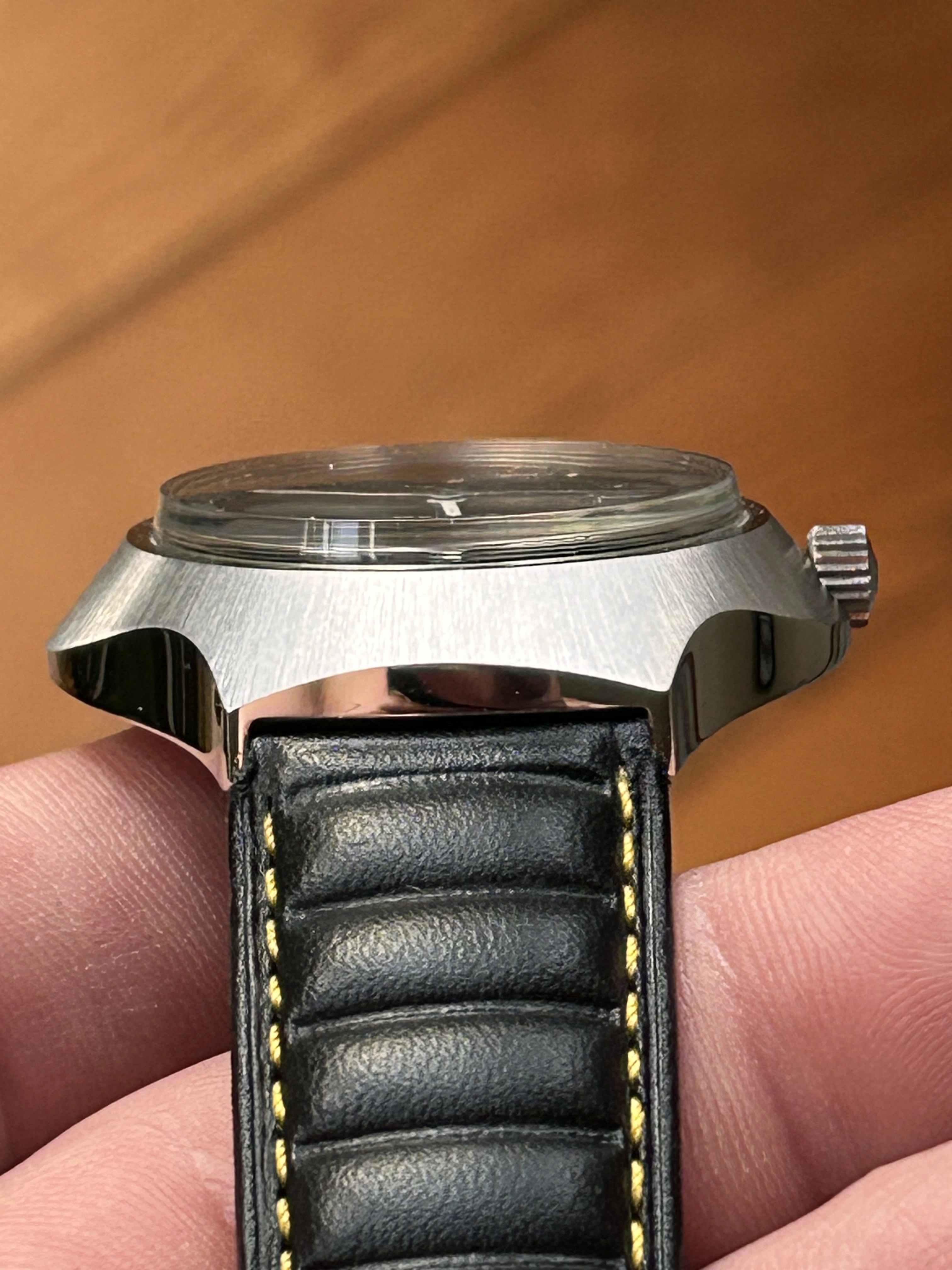 The profile around the lugs is quite “chunky”, so plain leather straps just don’t look that great to me. Rally straps being the best of the bunch, especially padded, looked to be the only option.
