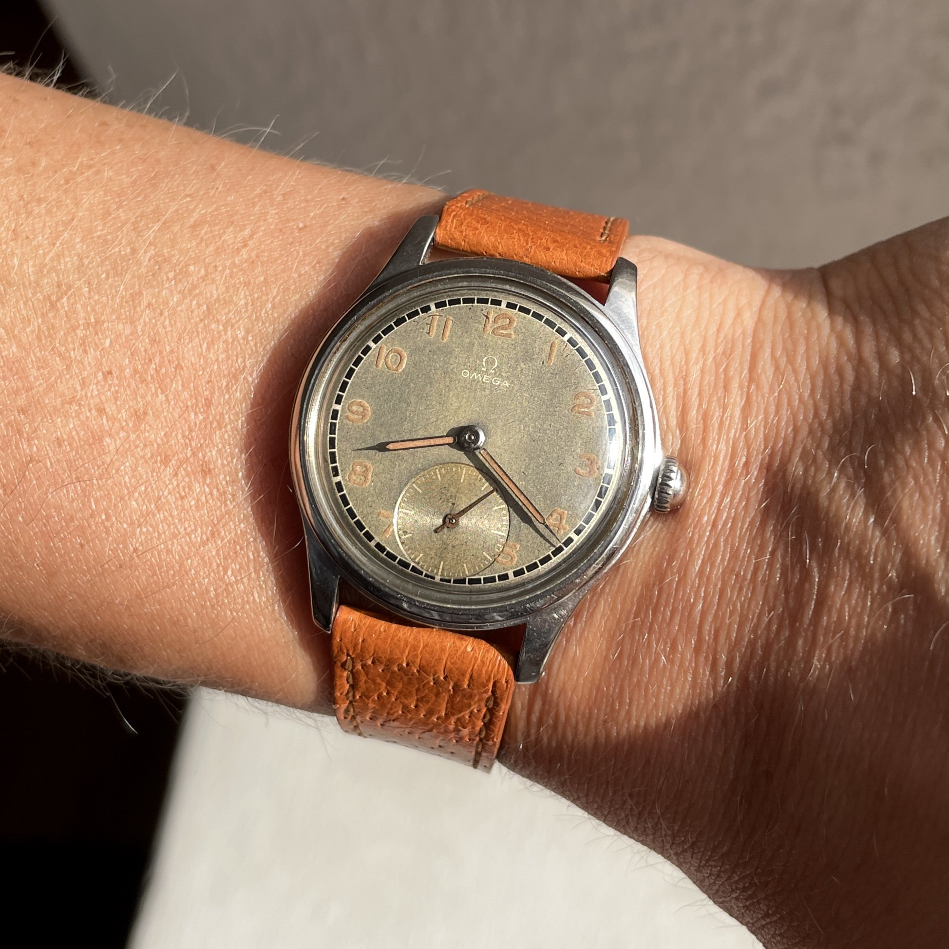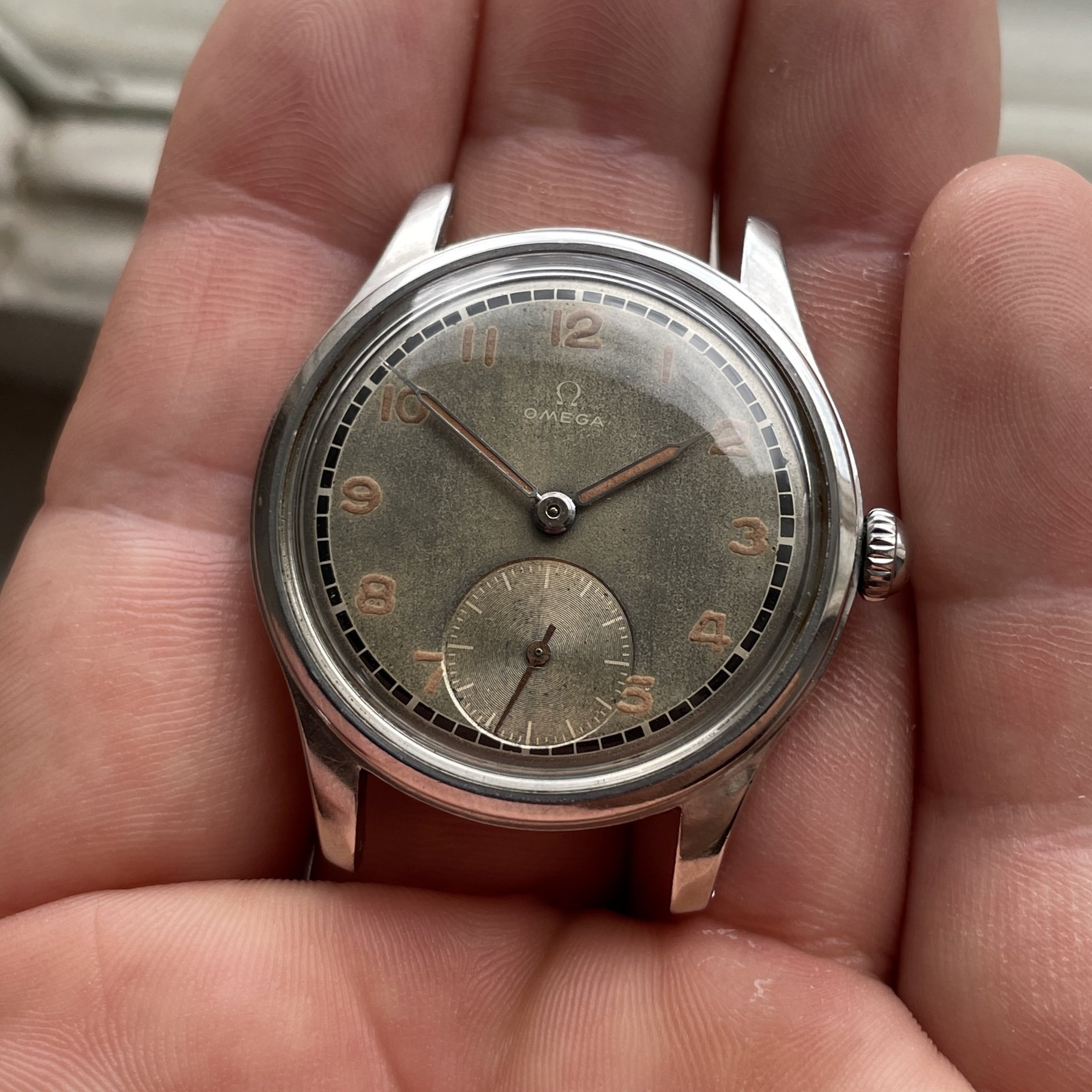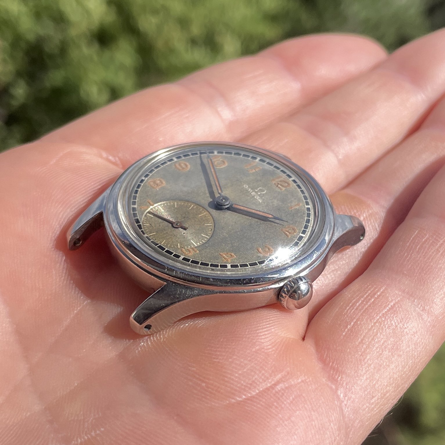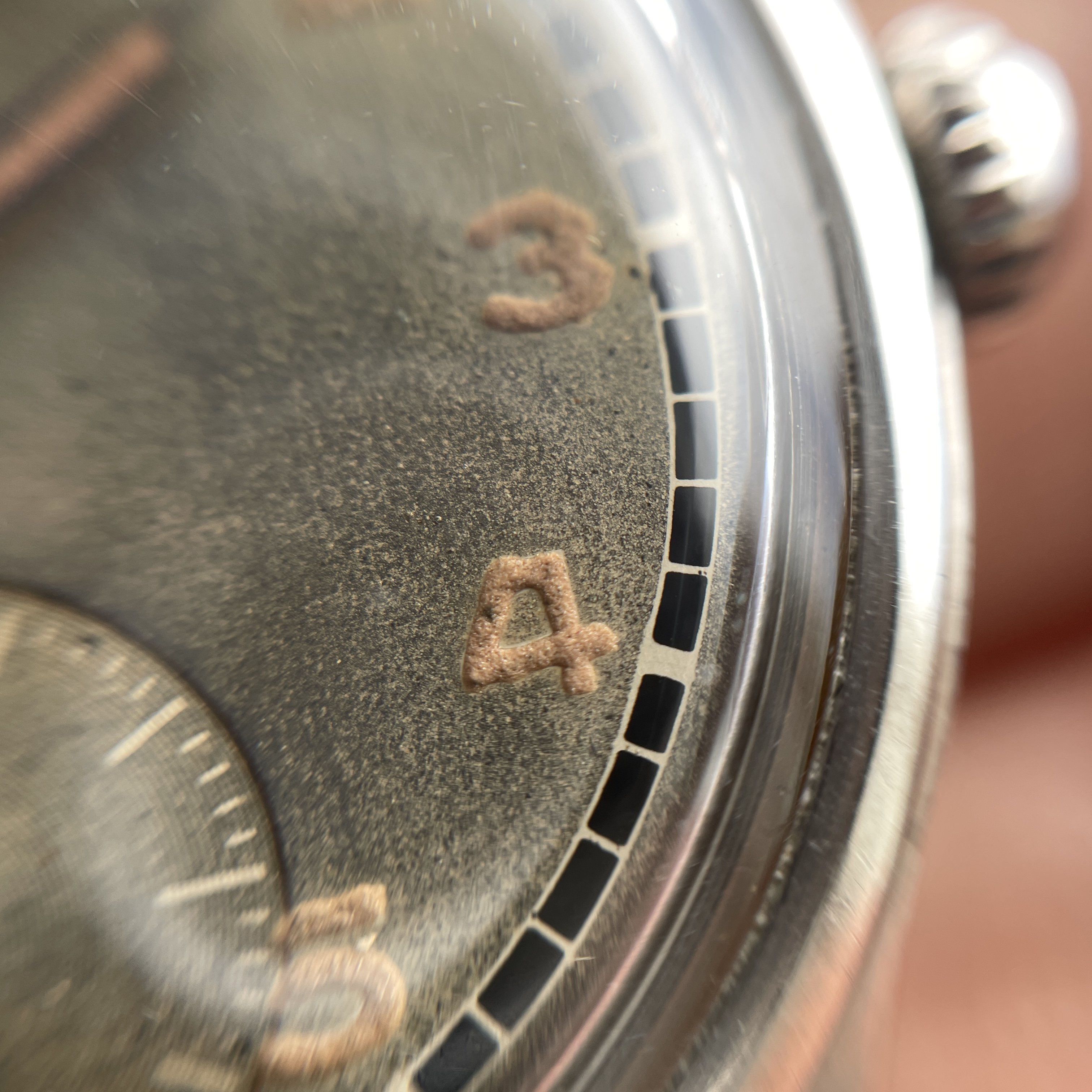 As most grey dialed Suverän the surface have turn a bit to the tropical but is evenly through the dial, also the black railroad is very crisp and have almost not aged at all. One interesting proof on how different dial colors and manufacturing processess reacts different to age.