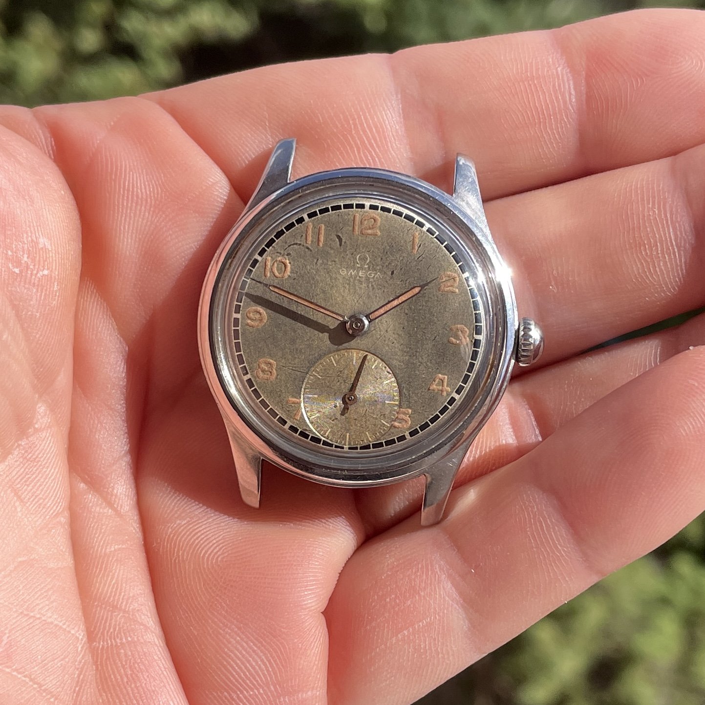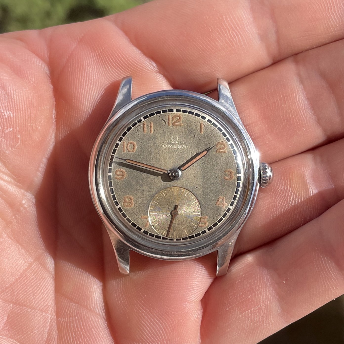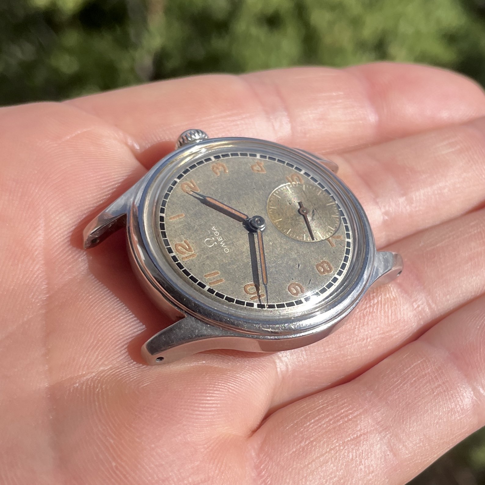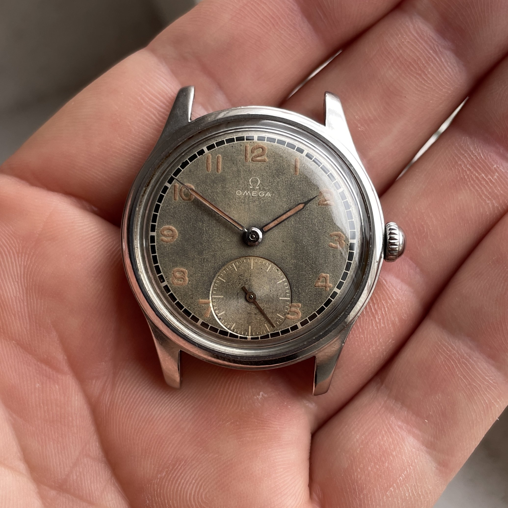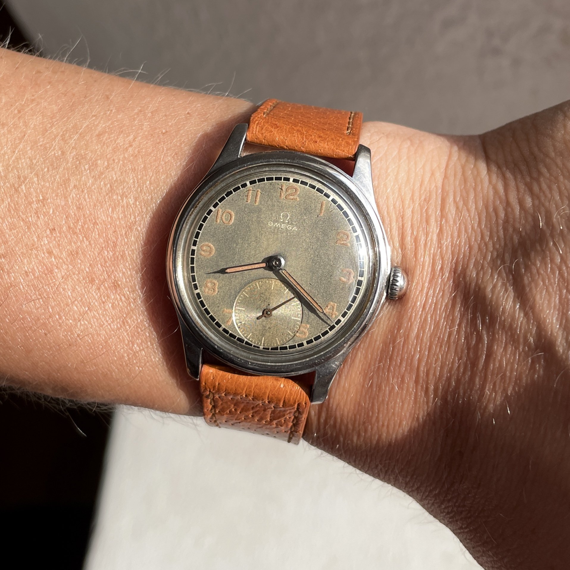 As most grey dialed Suverän the surface have turn a bit to the tropical but is evenly through the dial, also the black railroad is very crisp and have almost not aged at all. One interesting proof on how different dial colors and manufacturing processess reacts different to age.