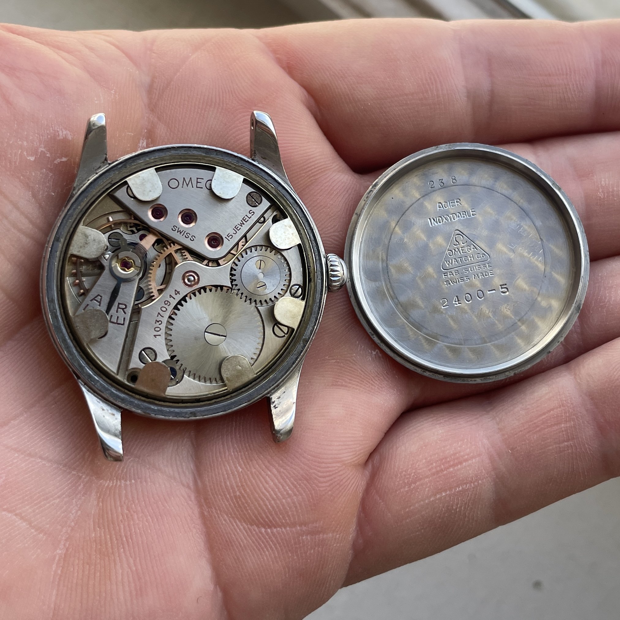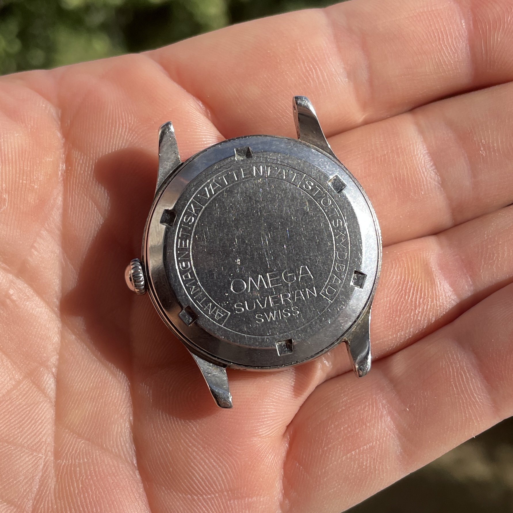 ·For sale is an Omega Suverän ref 2400 sold only to the Swedish market during ww2, its a well built robust 35.5mm large steel case which makes it quite big for its time. The caseback is signed with "antimagnetisk-vattentät-stötskyddad" meaning "antimagnetic-waterproof-shockprotected" in Swedish.
