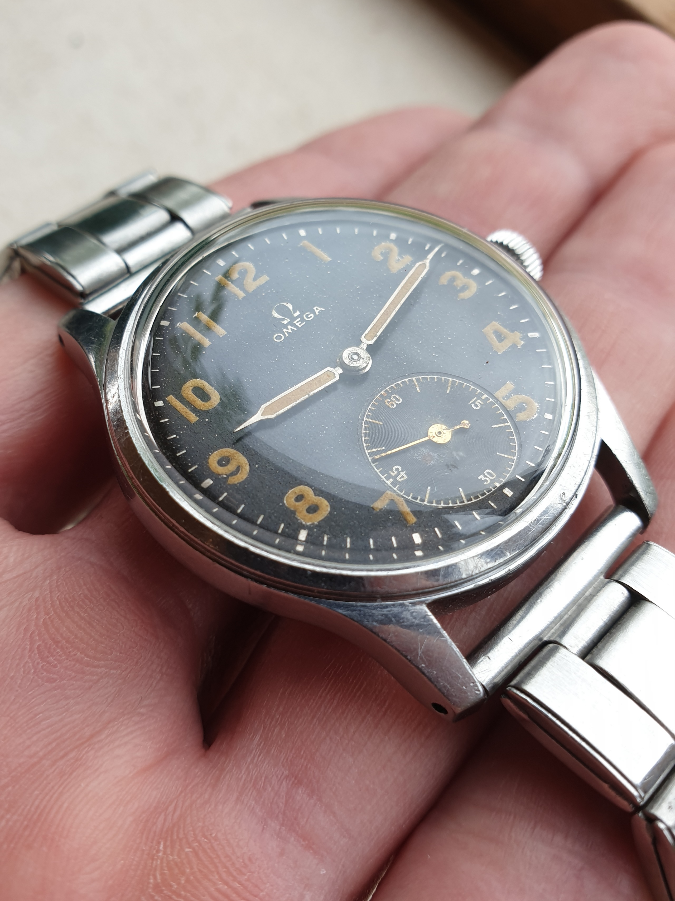 I am asking €740/790 for this good-looking WW2 watch, on either strap or bracelet respectively, tracked shipping included. Payment via bank transfer/transferwise heavily preferred. The watch and I are located in Denmark, EU. I will be happy to take returns within a week of delivery, should it dissapoint.
